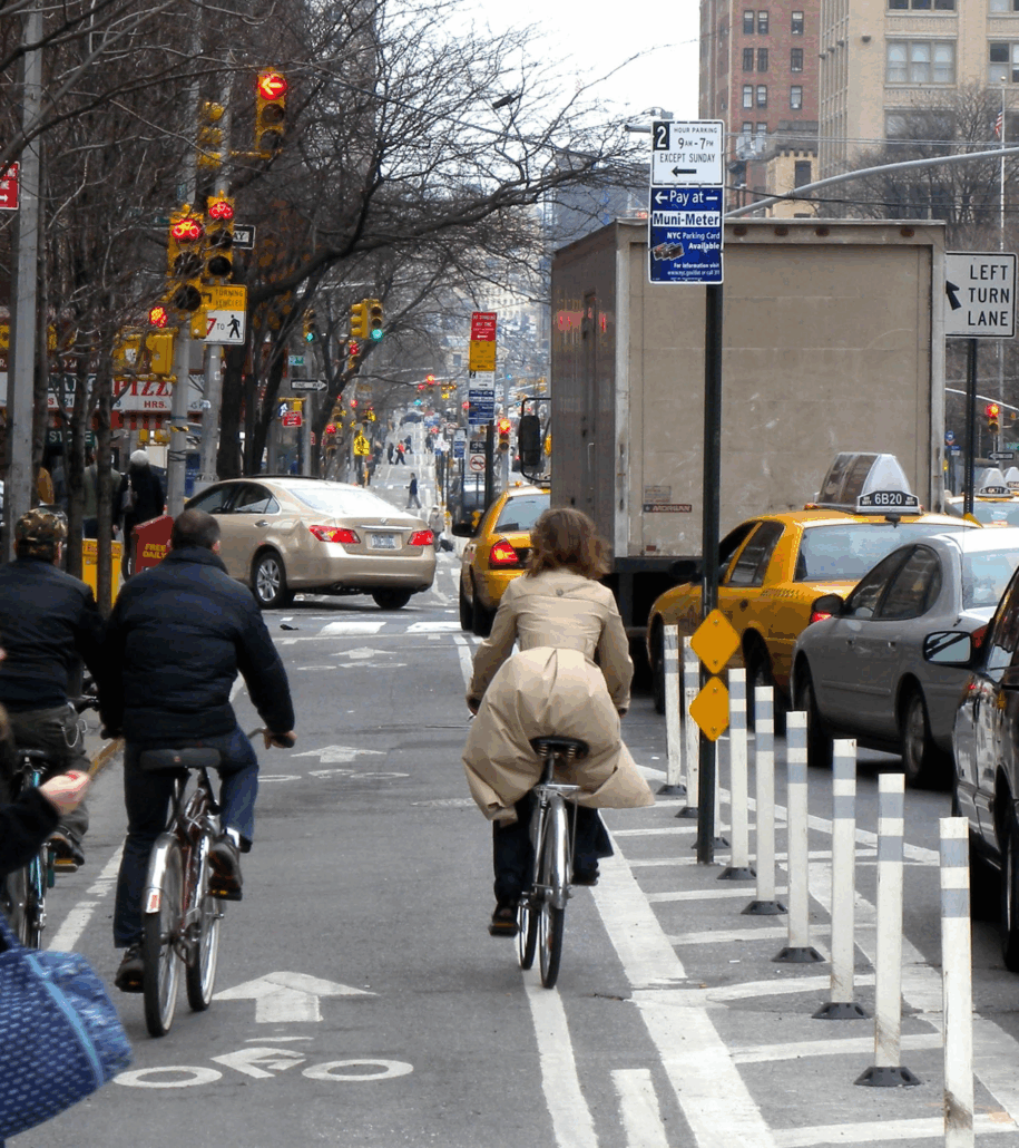 – a 280 centreline km of bicycle lanes or cycle tracks on fast, busy streets