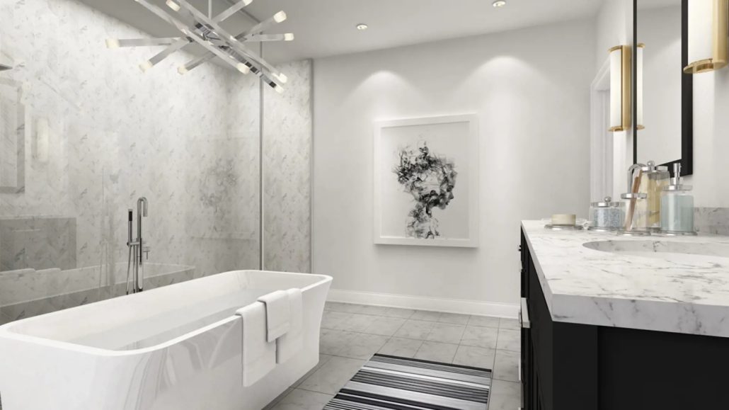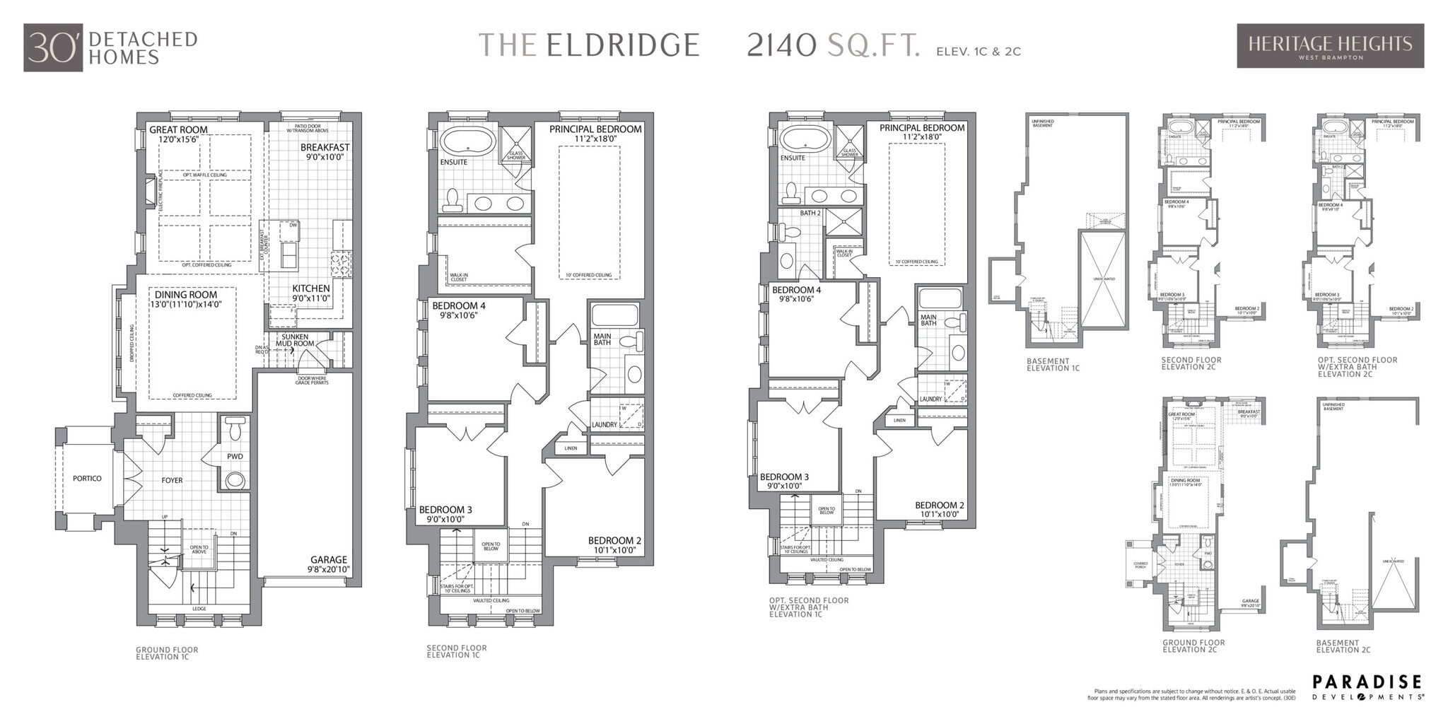 29. Custom quality cabinets on bathroom vanities, as per plan selected from Vendor’s standard samples. Extra height principal ensuite bathroom vanity and extra height kitchen cabinets, as per plan (all models). 30 .Primary Level granite countertop with standard edge from Vendor’s standard samples in kitchen, as per plan (All Models).