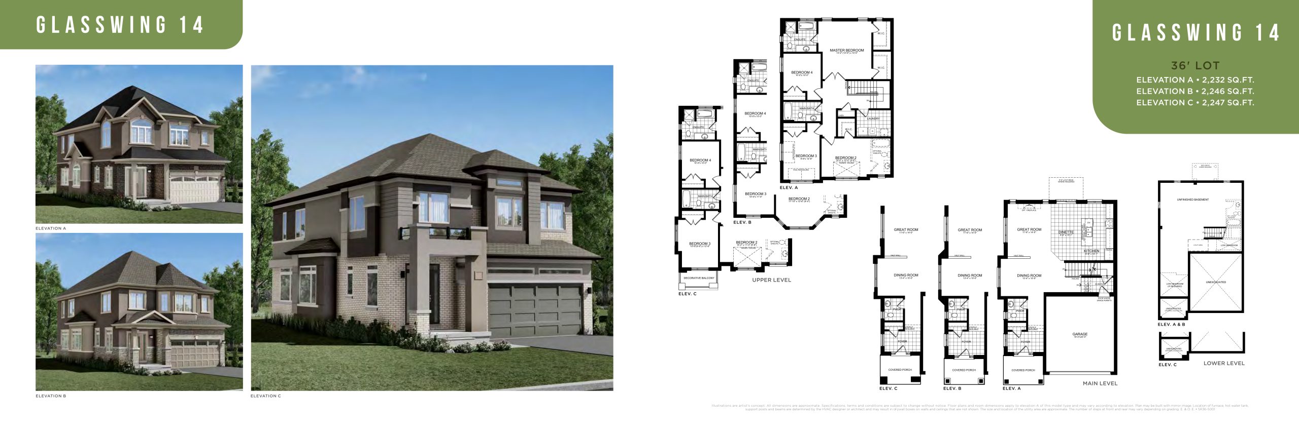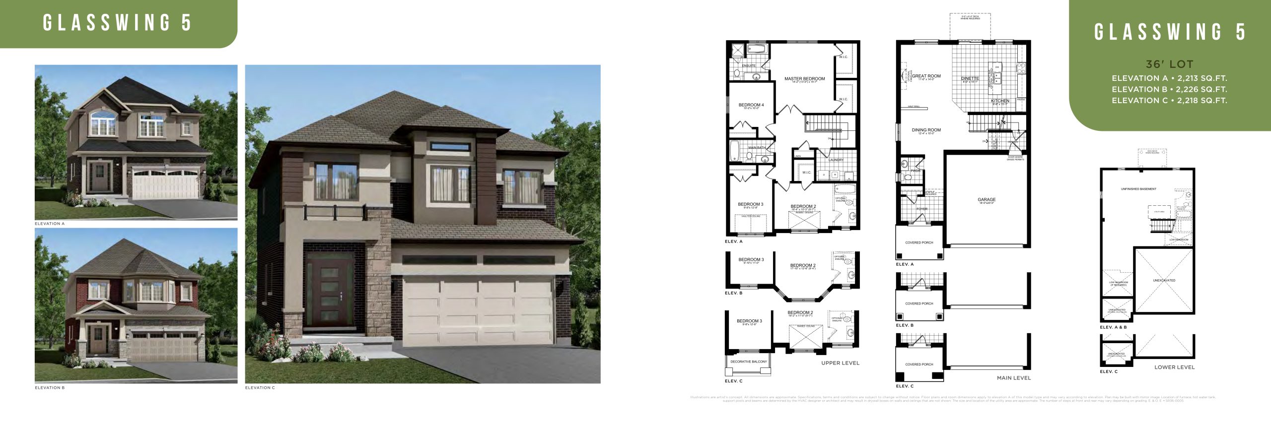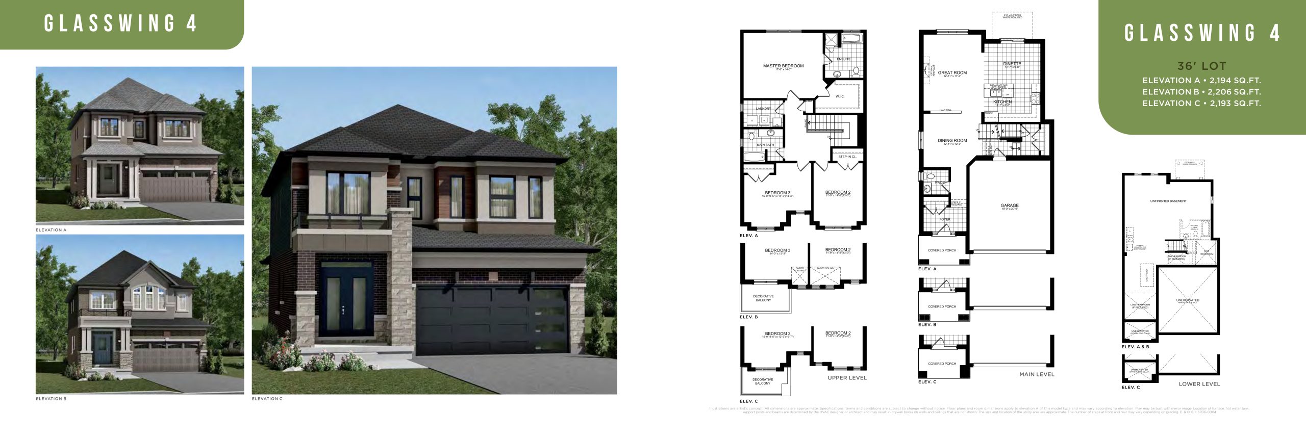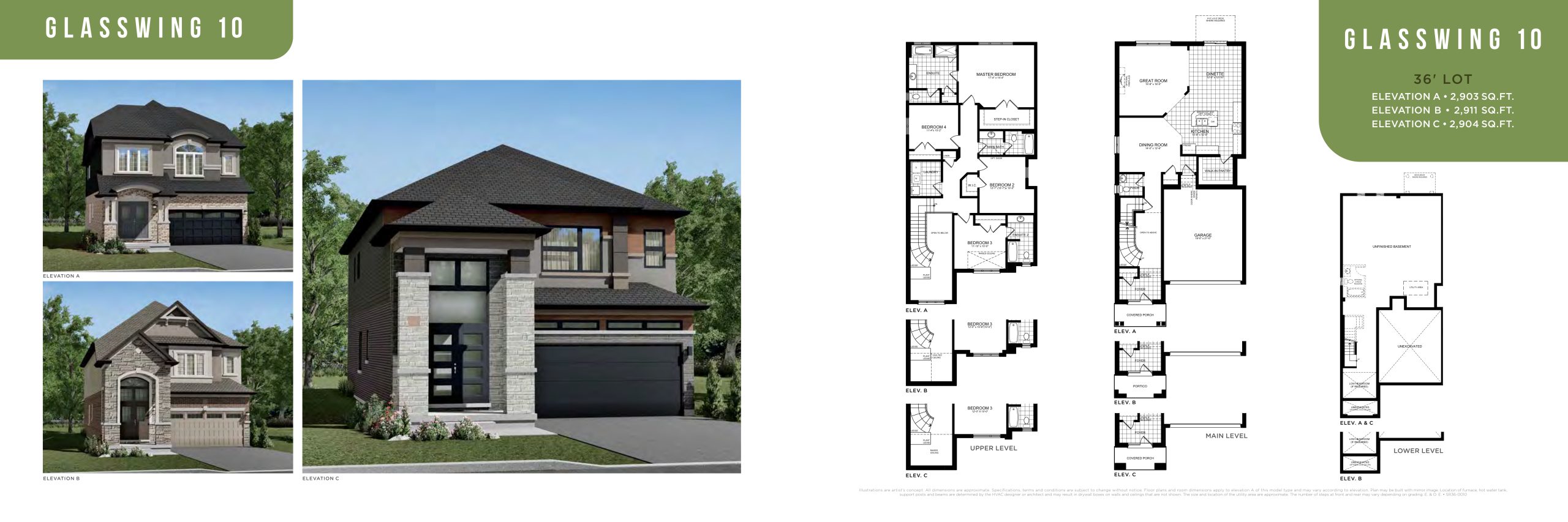 • Low maintenance vinyl clad thermo-sealed fixed style casement windows throughout, with grilles as per plan (front elevation only). A minimum of one operable window with screen per room, or door (as per plan). Basement windows to be vinyl sliders.