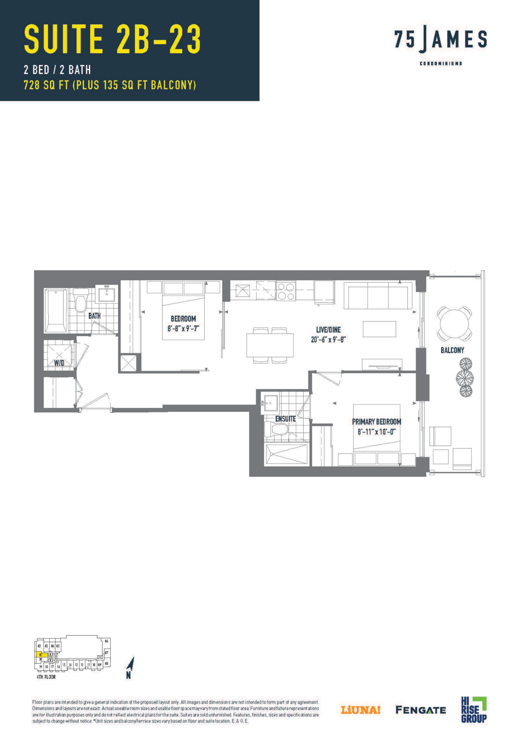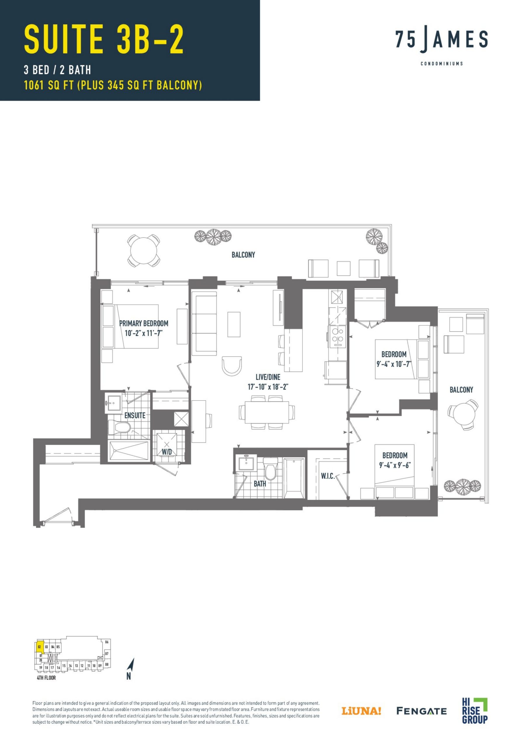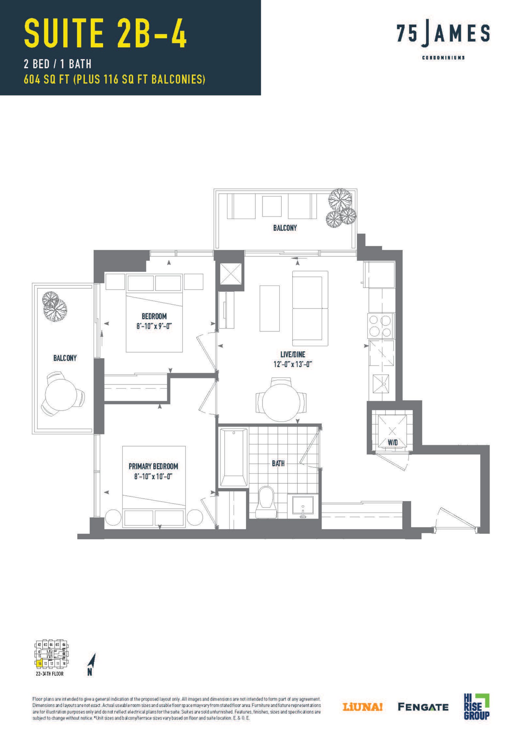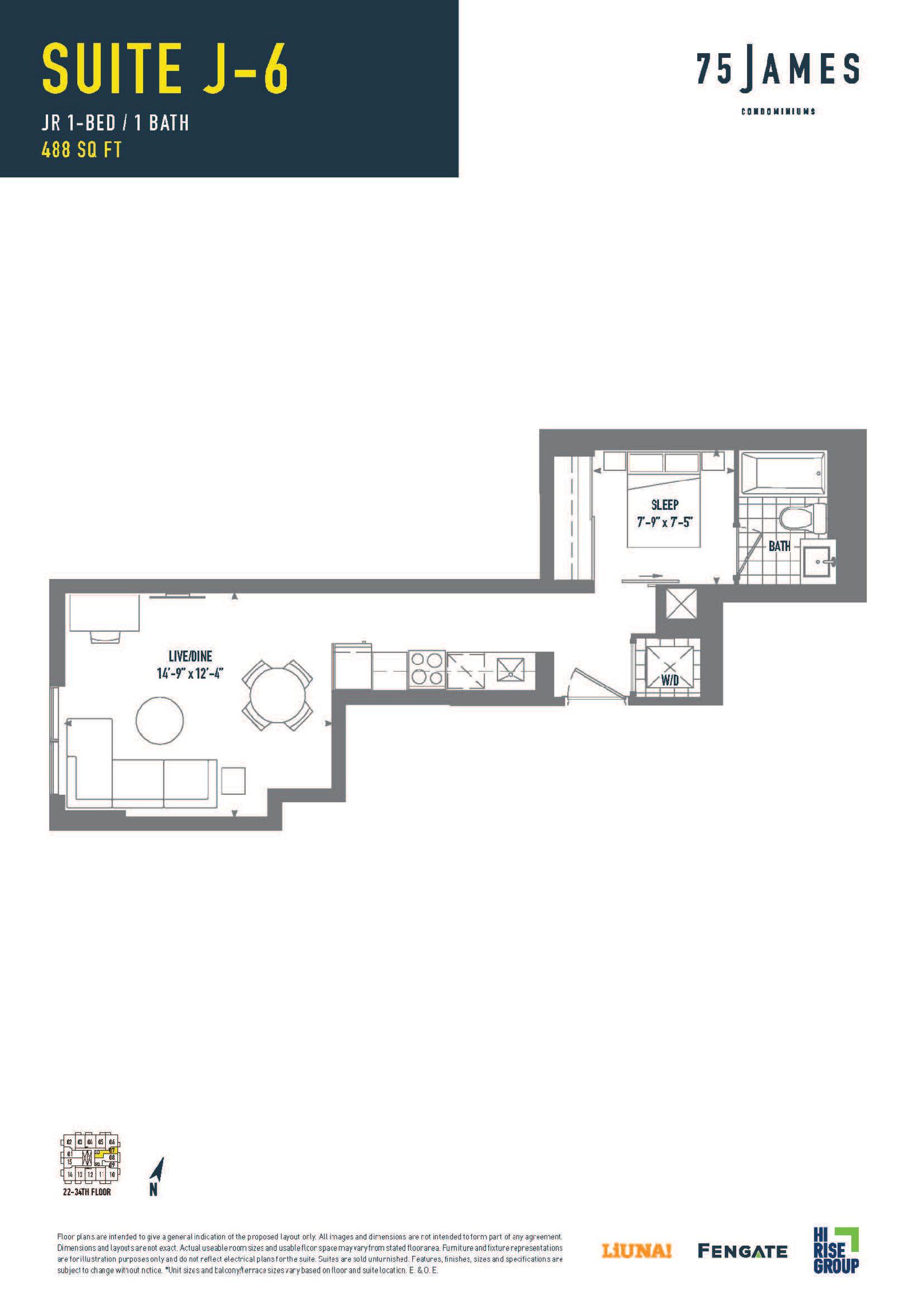 75 James Condos is a new condominium development by Fengate & Liuna & The Hi-Rise Group currently under construction located at 75 James Street South, Hamilton in the Hamiton Downtown neighbourhood with a 73/100 walk score and a 76/100 transit score. 75 James Condos is designed by Graziani + Corazza Architects Inc. and will feature interior design by Patton Design Studio. Development is scheduled to be completed in 2026. The project is 35 storeys tall and has a total of 635 suites ranging from 345 sq.ft to 1440 sq.ft. 75 James Condos is the #24 tallest condominium in Hamilton and the #11 tallest condominium in Hamiton Downtown. Suites are priced from $530,990 to $792,990.