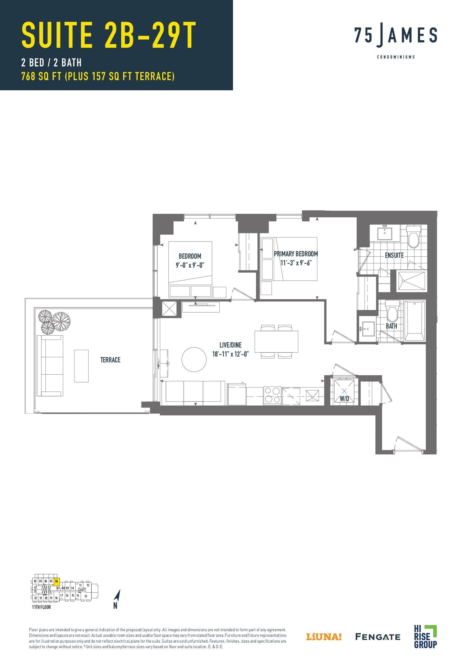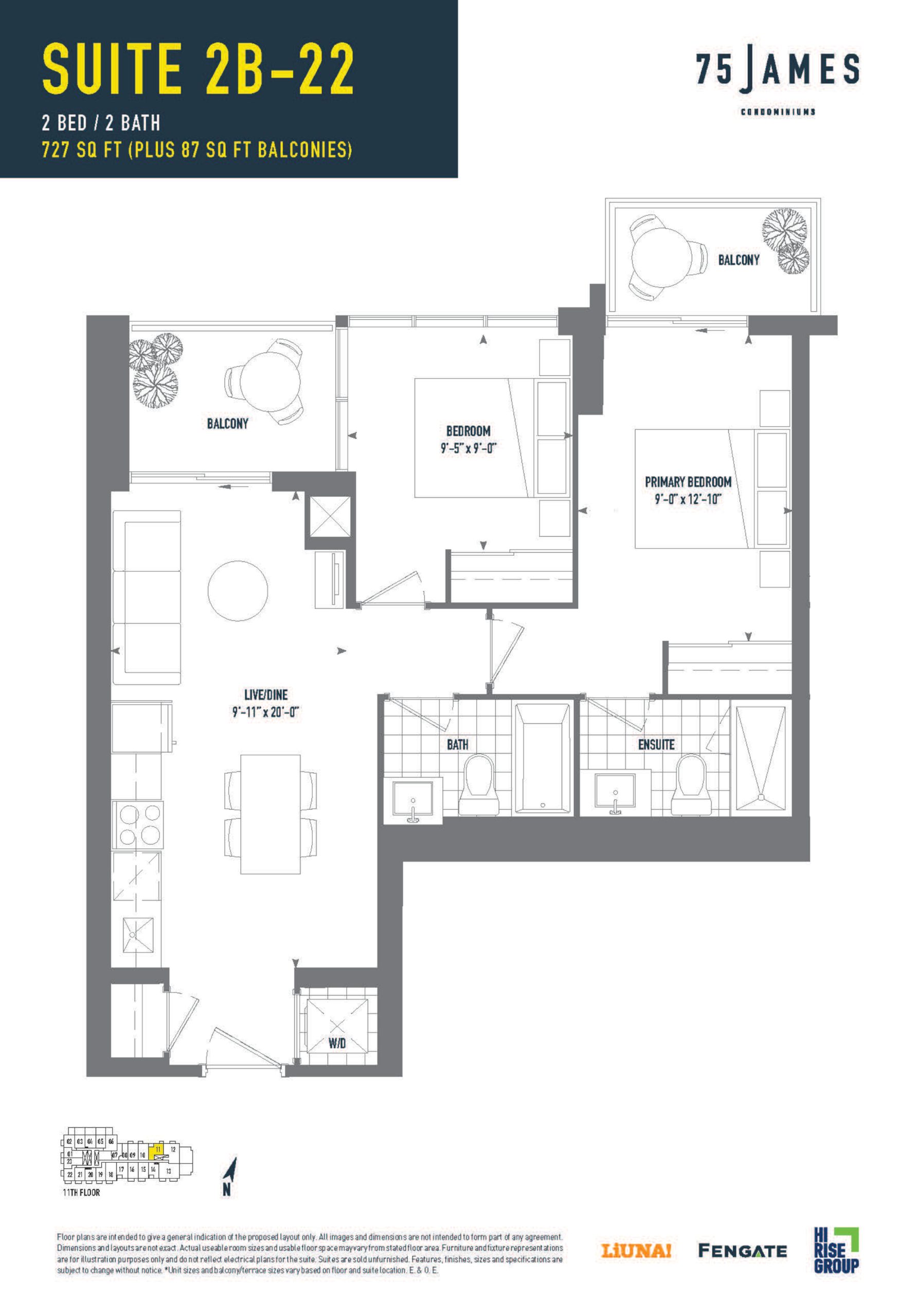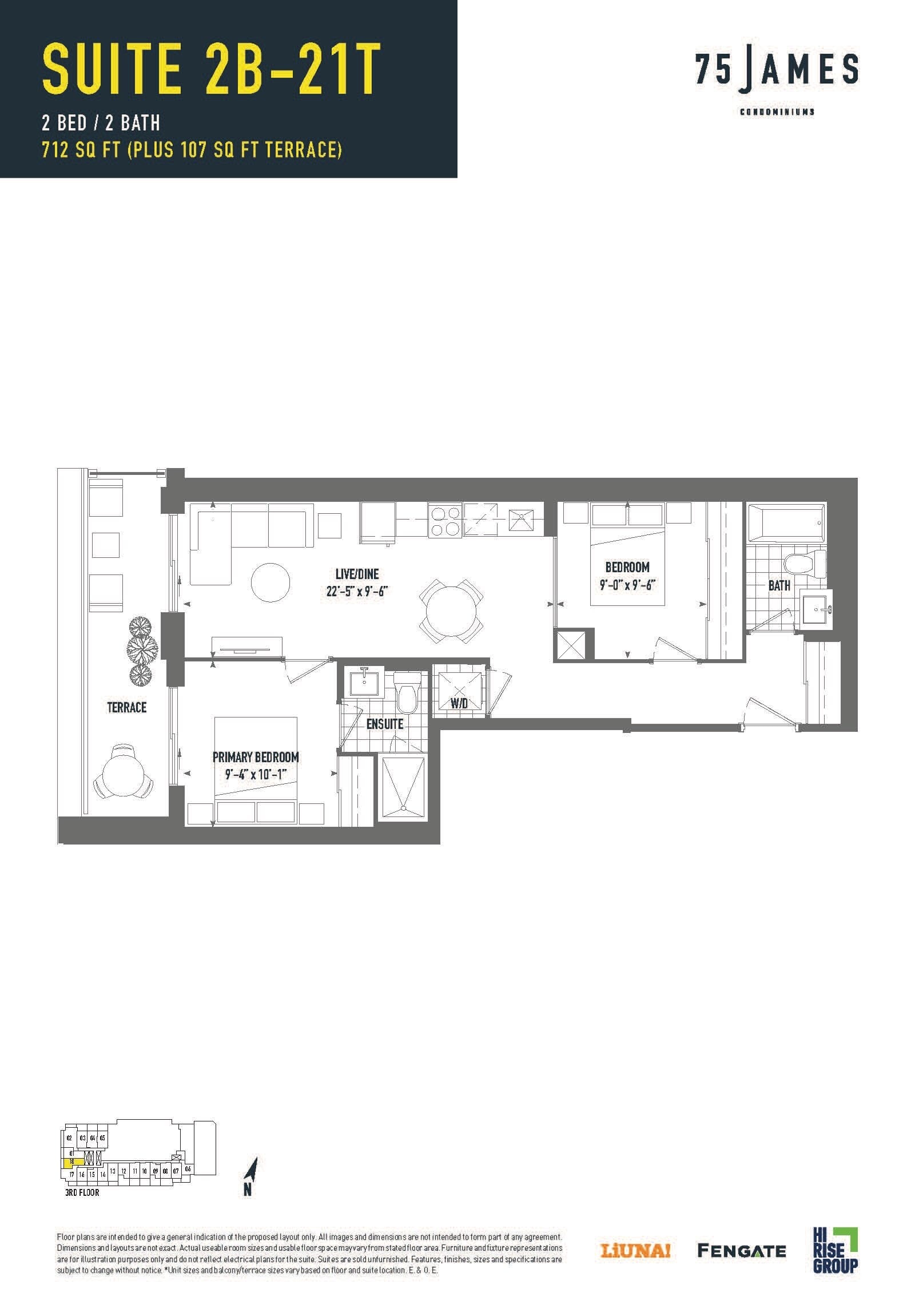 75 James Condos is a new condominium development by Fengate & Liuna & The Hi-Rise Group currently under construction located at 75 James Street South, Hamilton in the Hamiton Downtown neighbourhood with a 73/100 walk score and a 76/100 transit score. 75 James Condos is designed by Graziani + Corazza Architects Inc. and will feature interior design by Patton Design Studio. Development is scheduled to be completed in 2026. The project is 35 storeys tall and has a total of 635 suites ranging from 345 sq.ft to 1440 sq.ft. 75 James Condos is the #24 tallest condominium in Hamilton and the #11 tallest condominium in Hamiton Downtown. Suites are priced from $530,990 to $792,990.