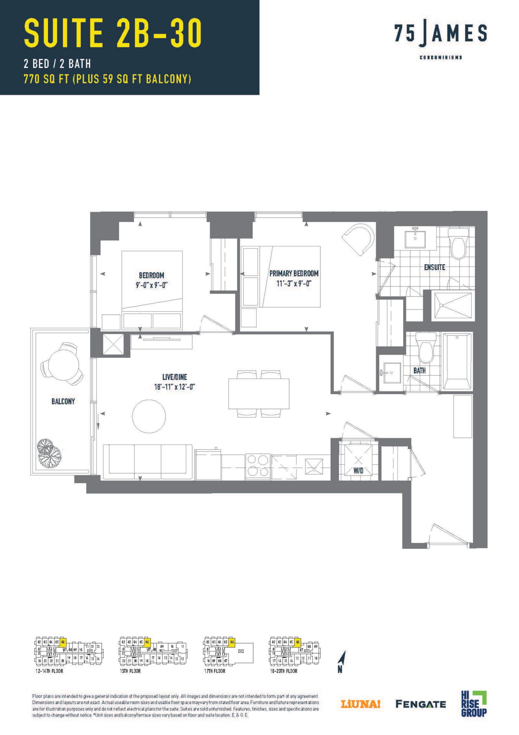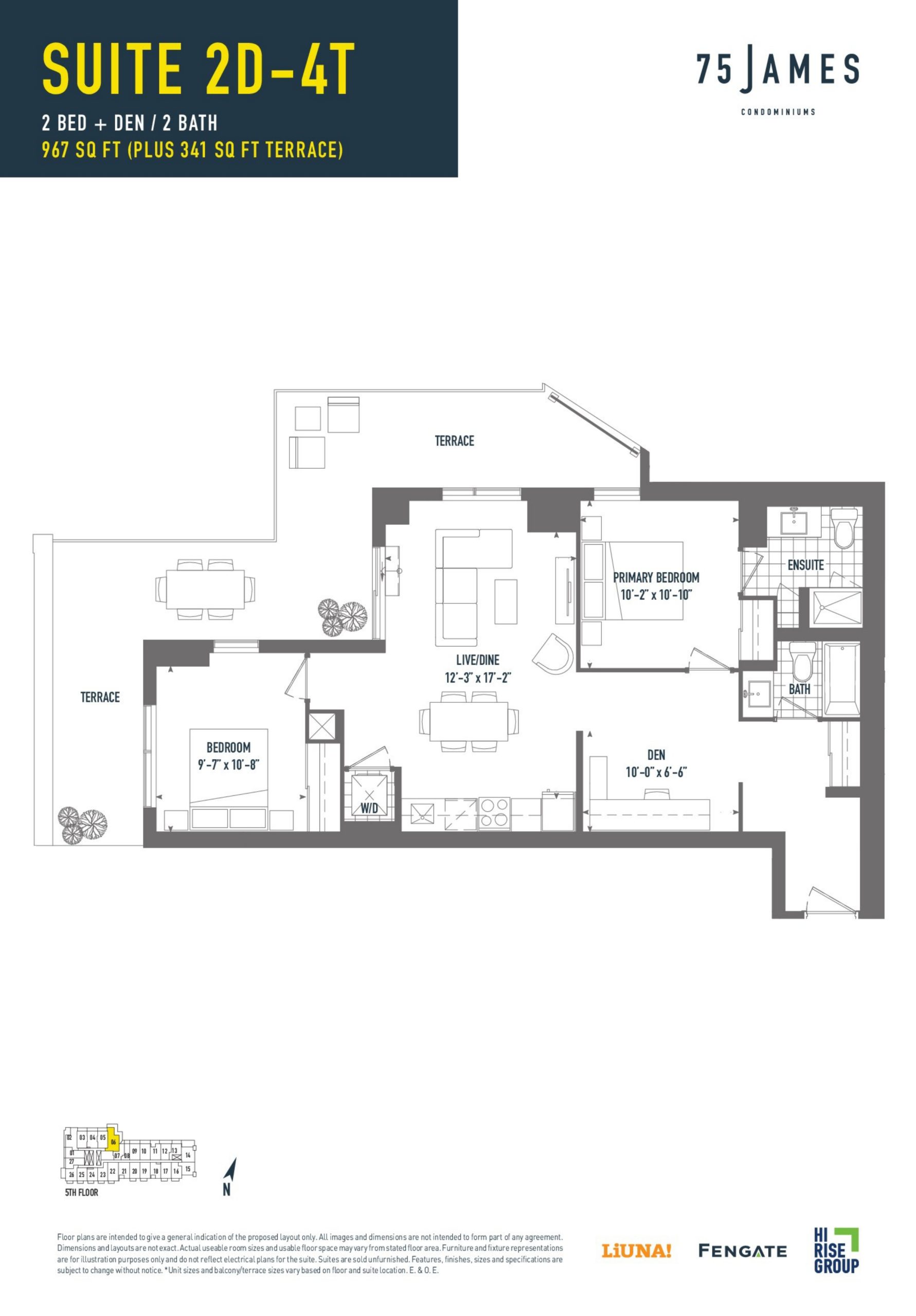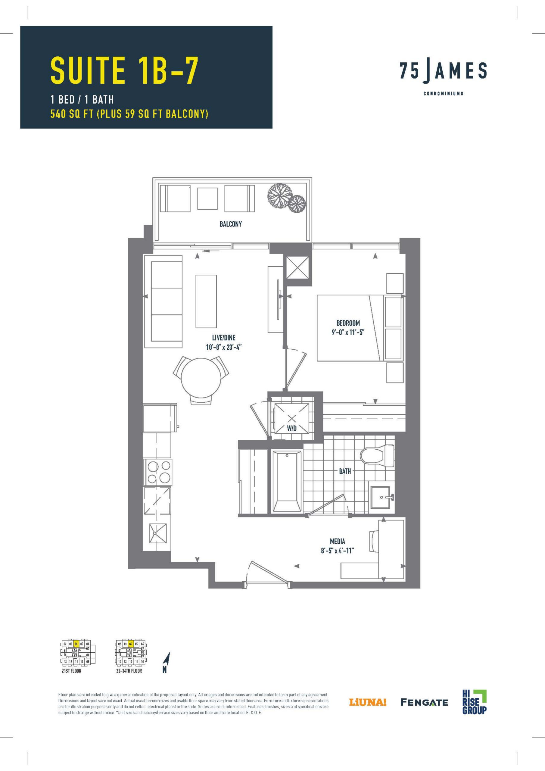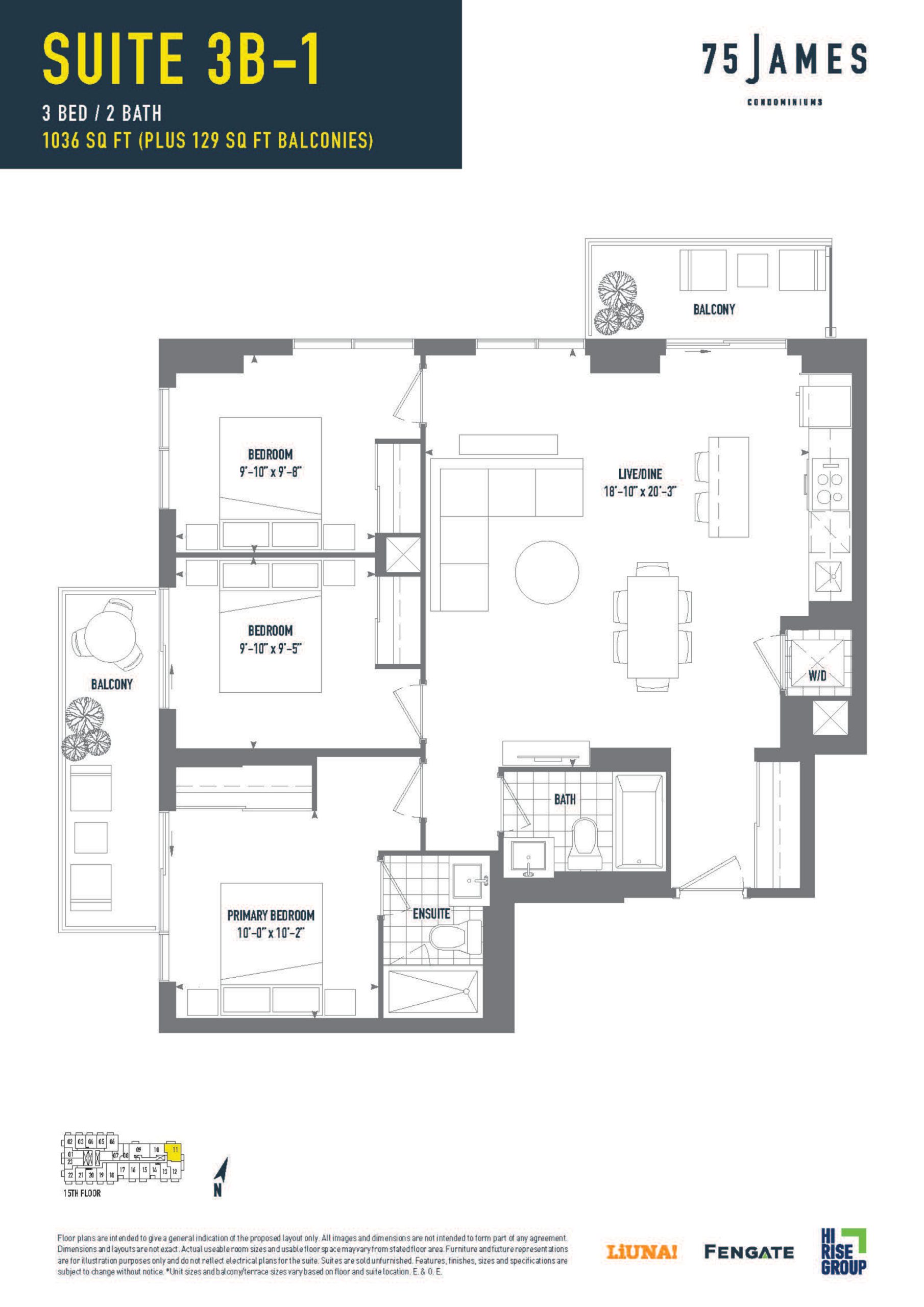 75 James Condos is a new condominium development by Fengate & Liuna & The Hi-Rise Group currently under construction located at 75 James Street South, Hamilton in the Hamiton Downtown neighbourhood with a 73/100 walk score and a 76/100 transit score. 75 James Condos is designed by Graziani + Corazza Architects Inc. and will feature interior design by Patton Design Studio. Development is scheduled to be completed in 2026. The project is 35 storeys tall and has a total of 635 suites ranging from 345 sq.ft to 1440 sq.ft. 75 James Condos is the #24 tallest condominium in Hamilton and the #11 tallest condominium in Hamiton Downtown. Suites are priced from $530,990 to $792,990.