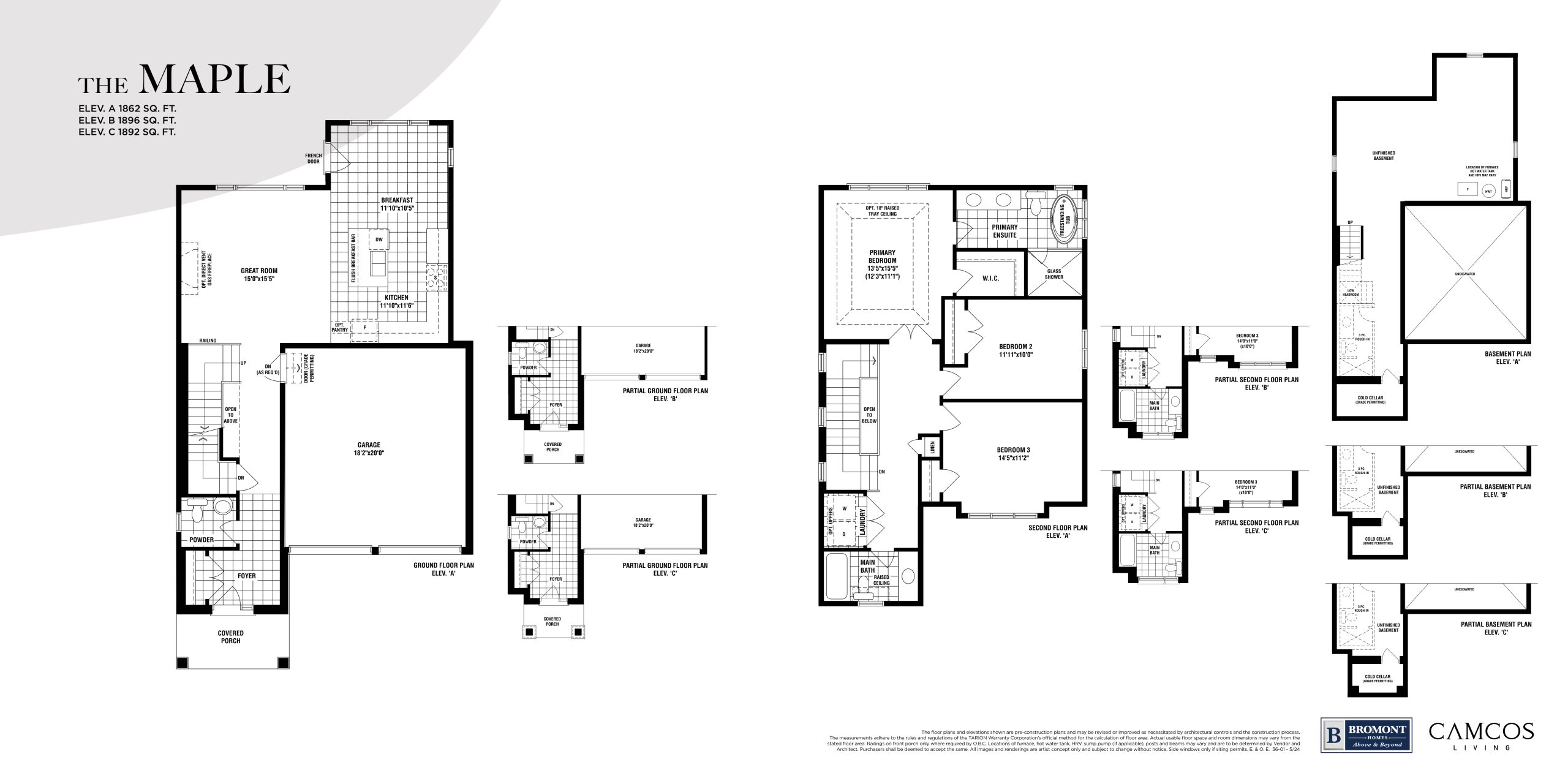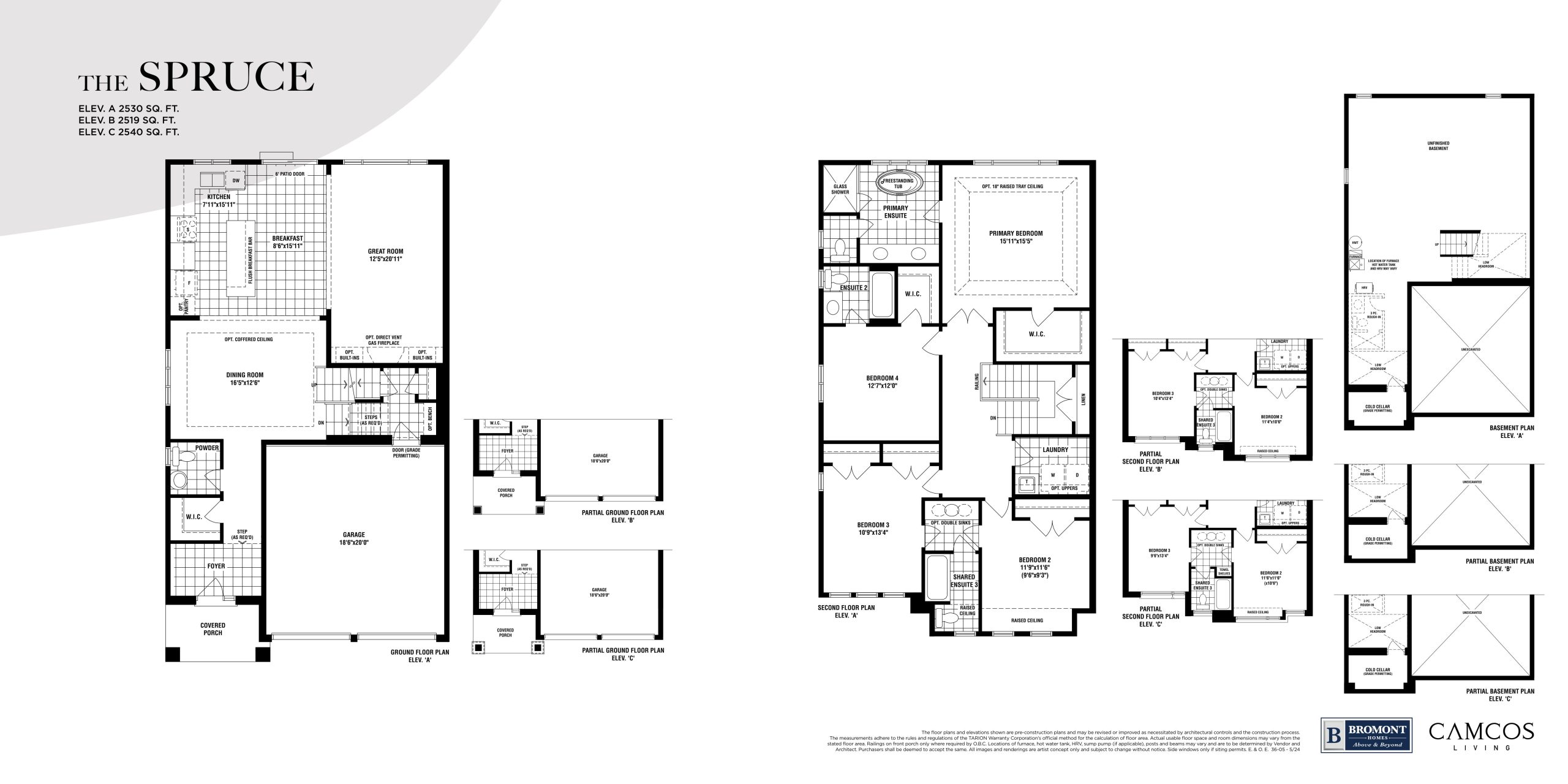 2. Purchaser's choices of ceramic tile flooring in entry, kitchen, powder room, ensuite, bathrooms and laundry room in finished areas.