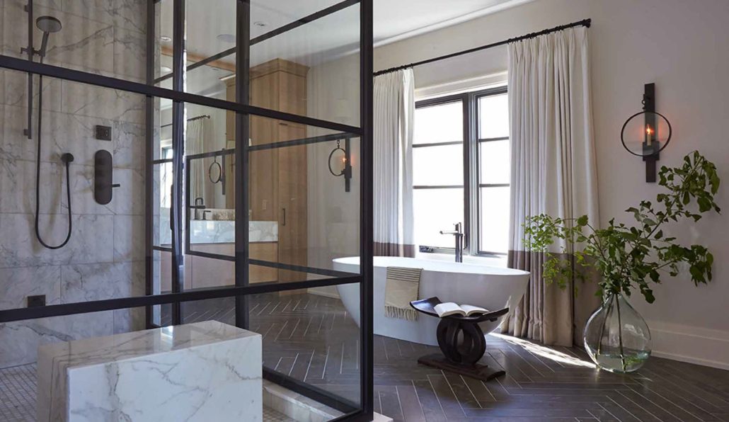 - Separate shower(s), where applicable, with marble jamb(s), porcelain or ceramic tiles and frameless glass shower enclosure on half walls, as per plan. All showers to have waterproof pot light.