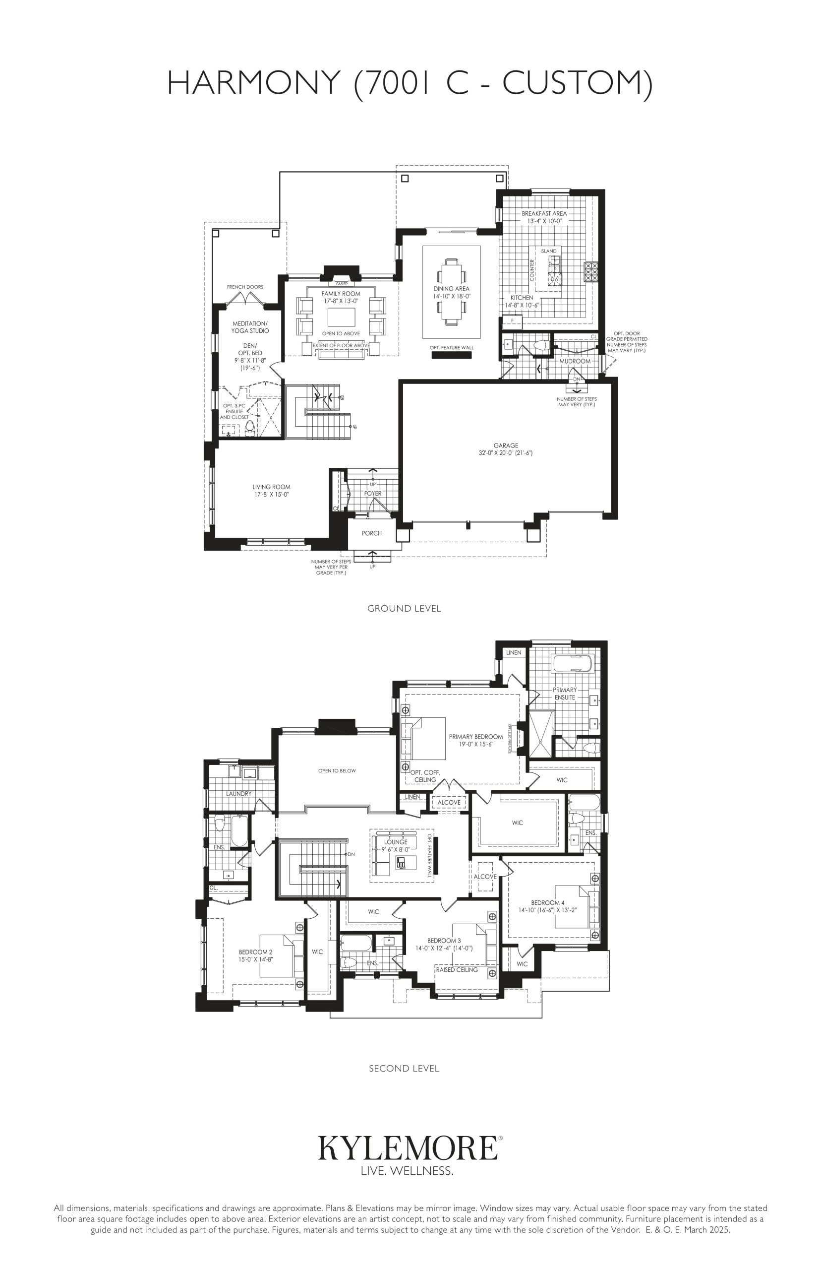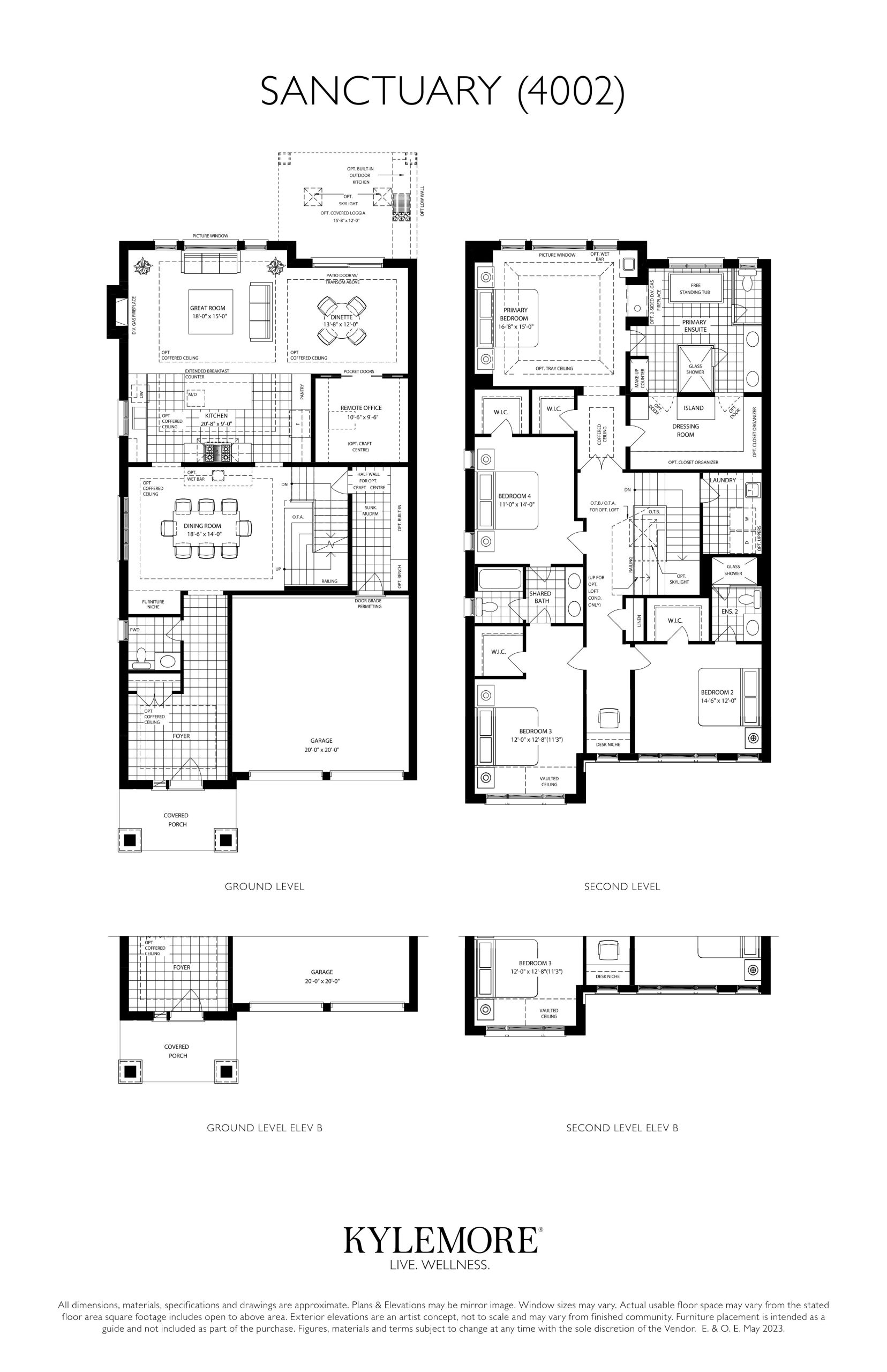 - 8-foot main floor and 7-foot second floor Series 800 doors throughout, from builder’s standard samples, as per plan.