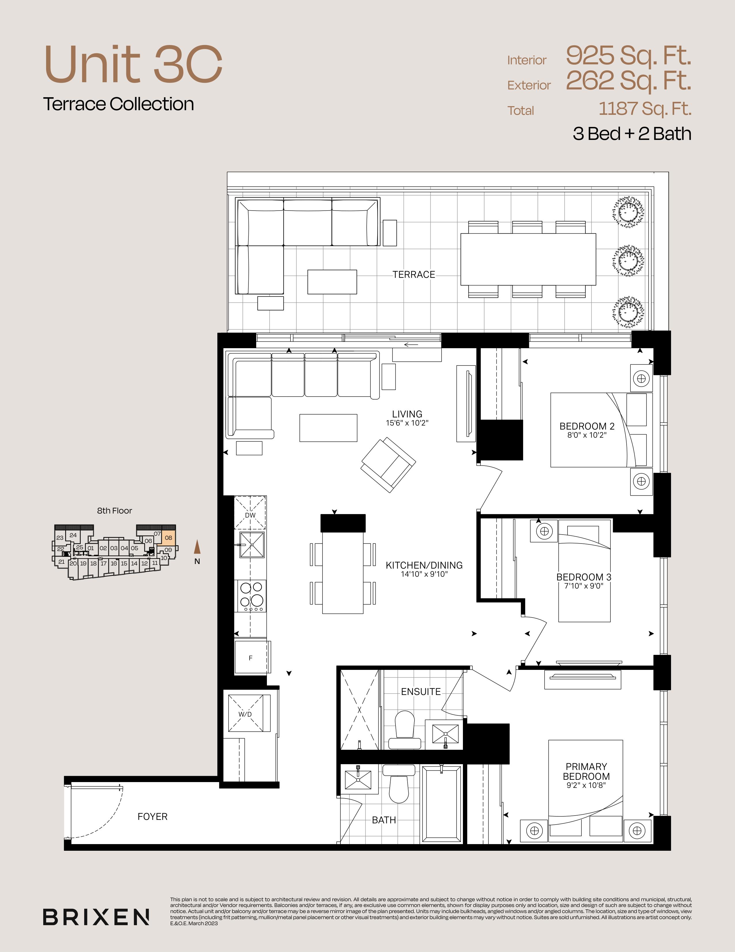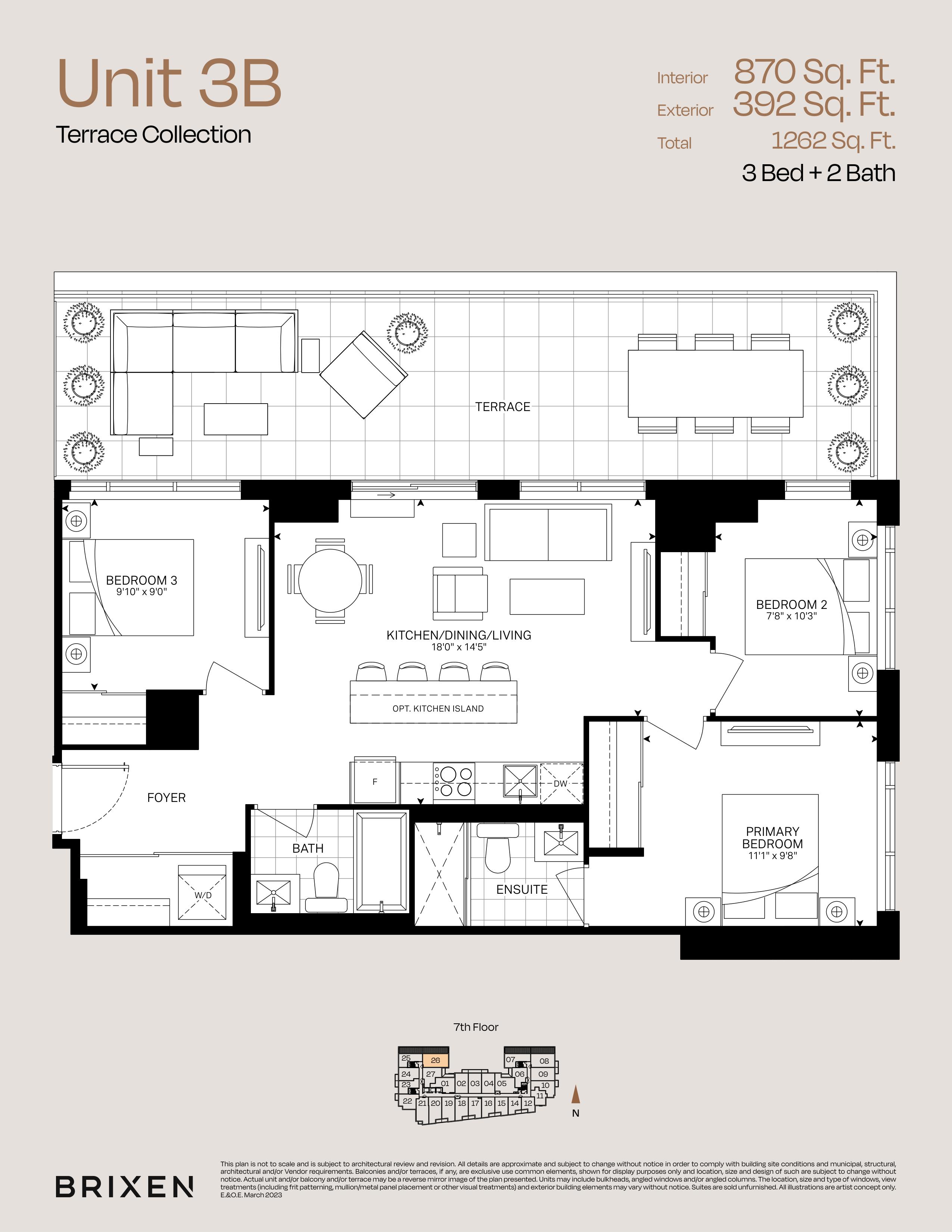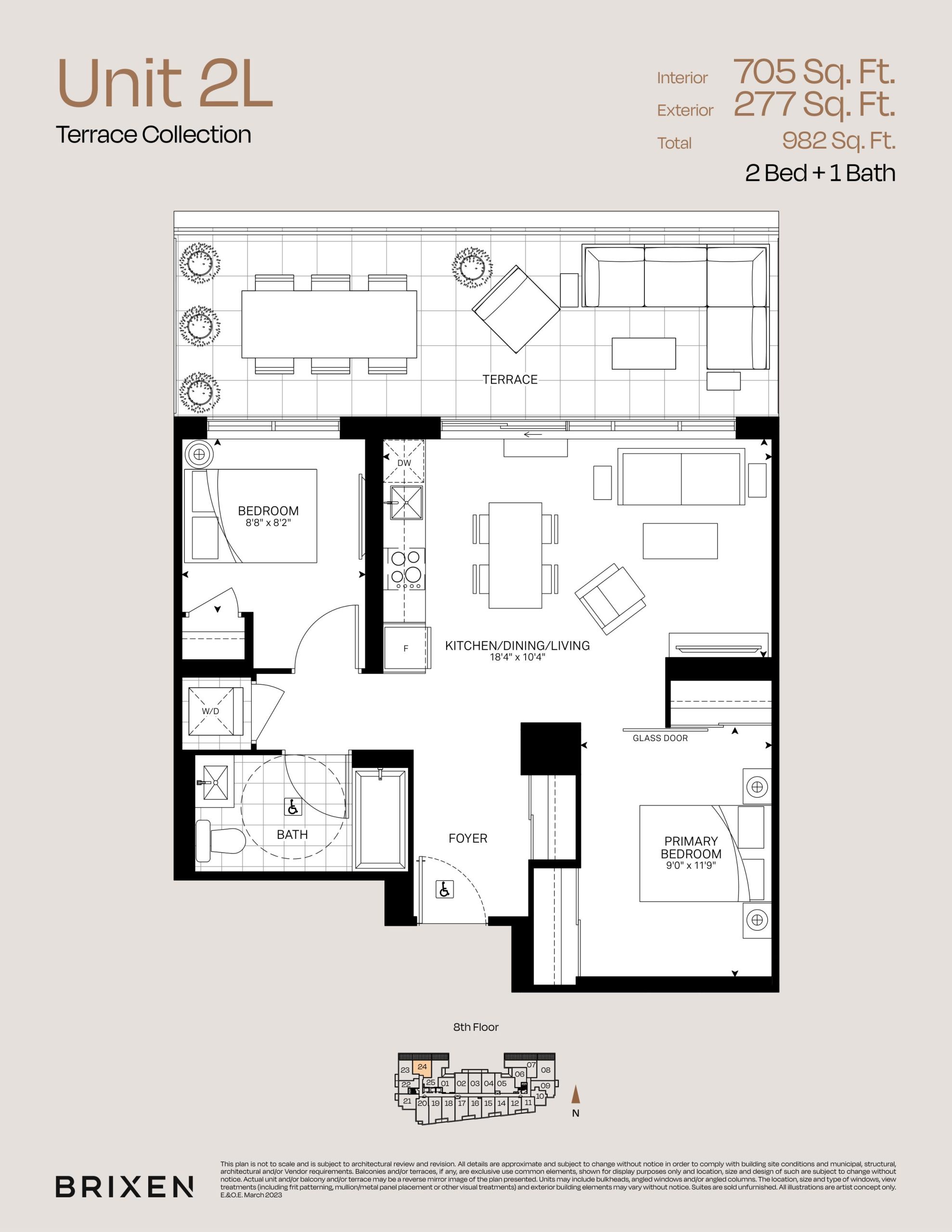 • Private balcony, patio, terrace and/or juliette balcony, as per applicable plan