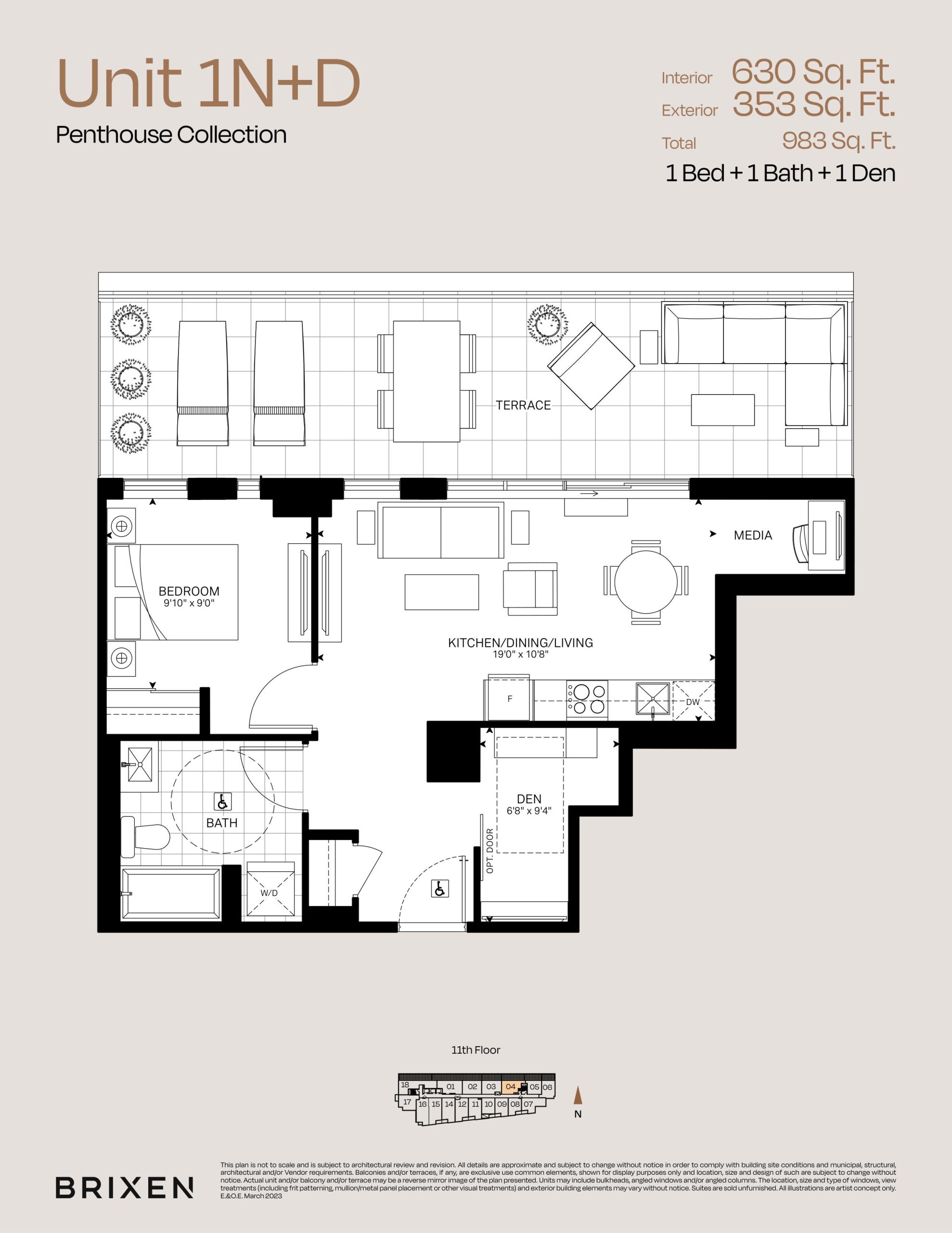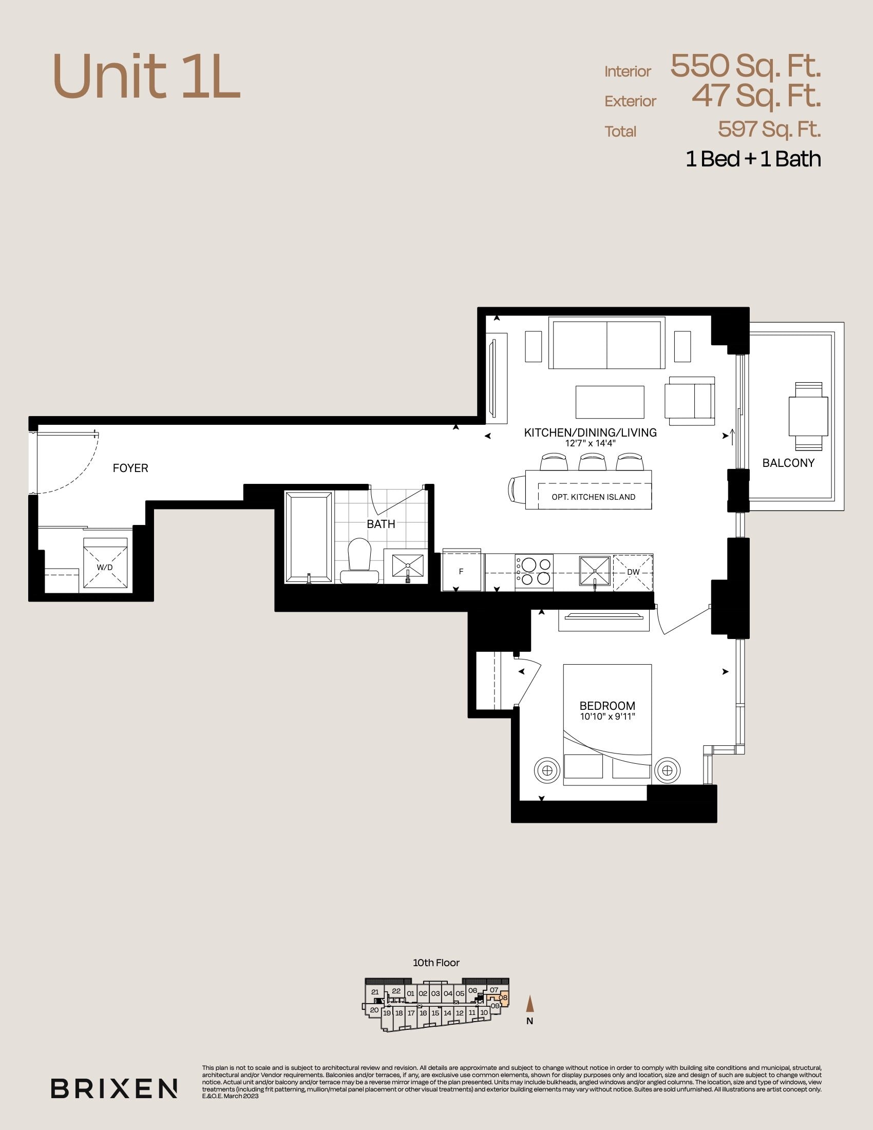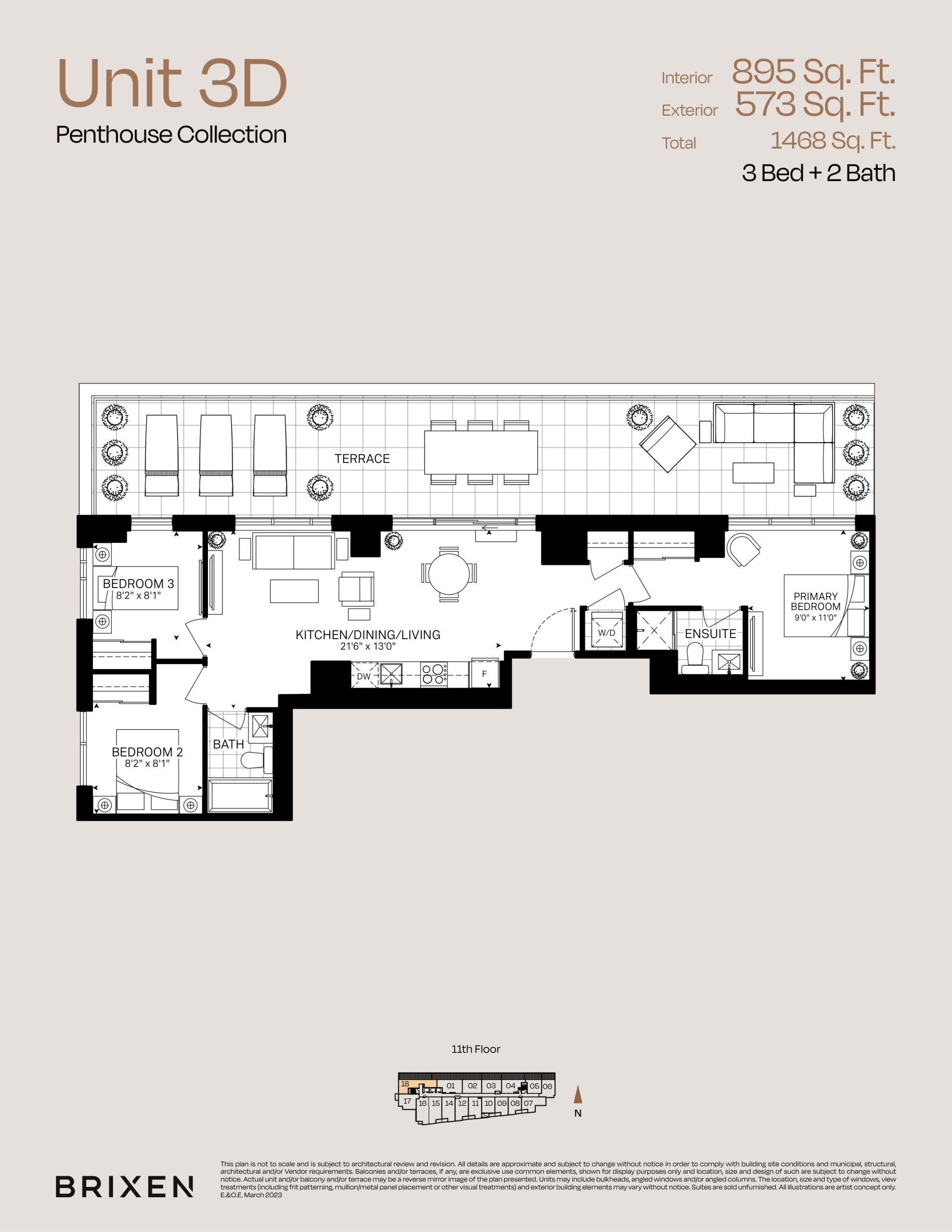 Exhale Residences is a new condominium development by Brixen Developments Inc. & Queensgate Homes currently under construction located at 1381 Lakeshore Road East, Mississauga in the Lakeview neighbourhood with a 16/100 walk score and a 63/100 transit score. Exhale Residences is designed by Architecture Unfolded and will feature interior design by EsQape Design Inc.. Development is scheduled to be completed in 2026. The project is 11 storeys tall and has a total of 284 suites ranging from 390 sq.ft to 985 sq.ft. Exhale Residences is the #60 tallest condominium in Mississauga and the #4 tallest condominium in Lakeview. Suites are priced from $579,900 to $1,044,900.