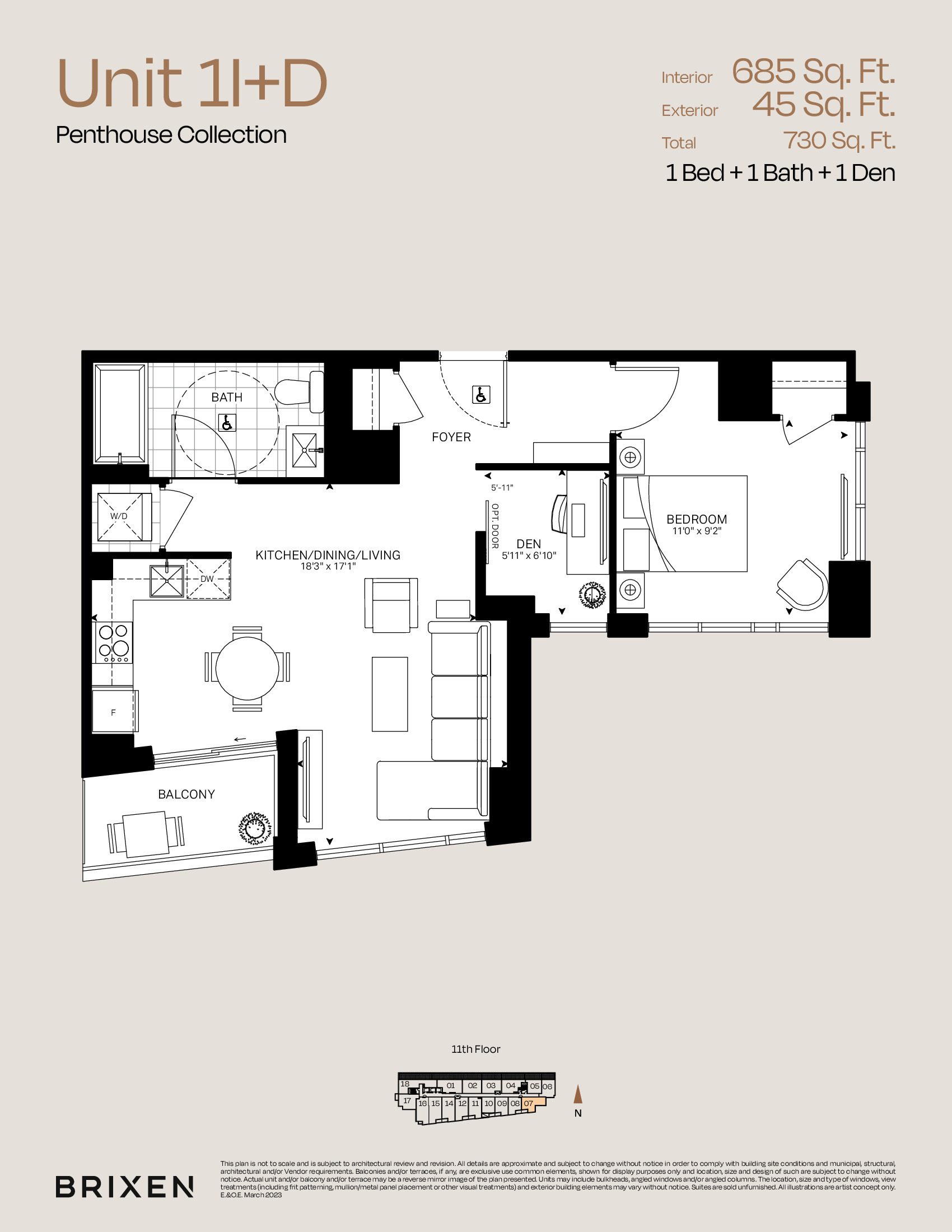This unit faces South on floor range 11