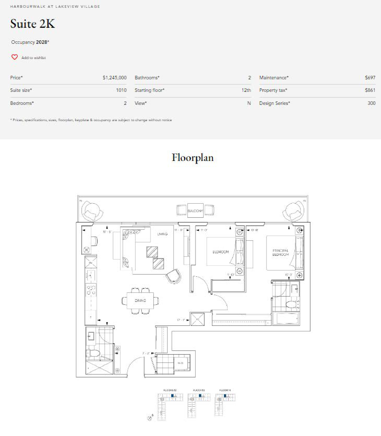 Suite 2B+D Price History | Harbourwalk at Lakeview Village Condos