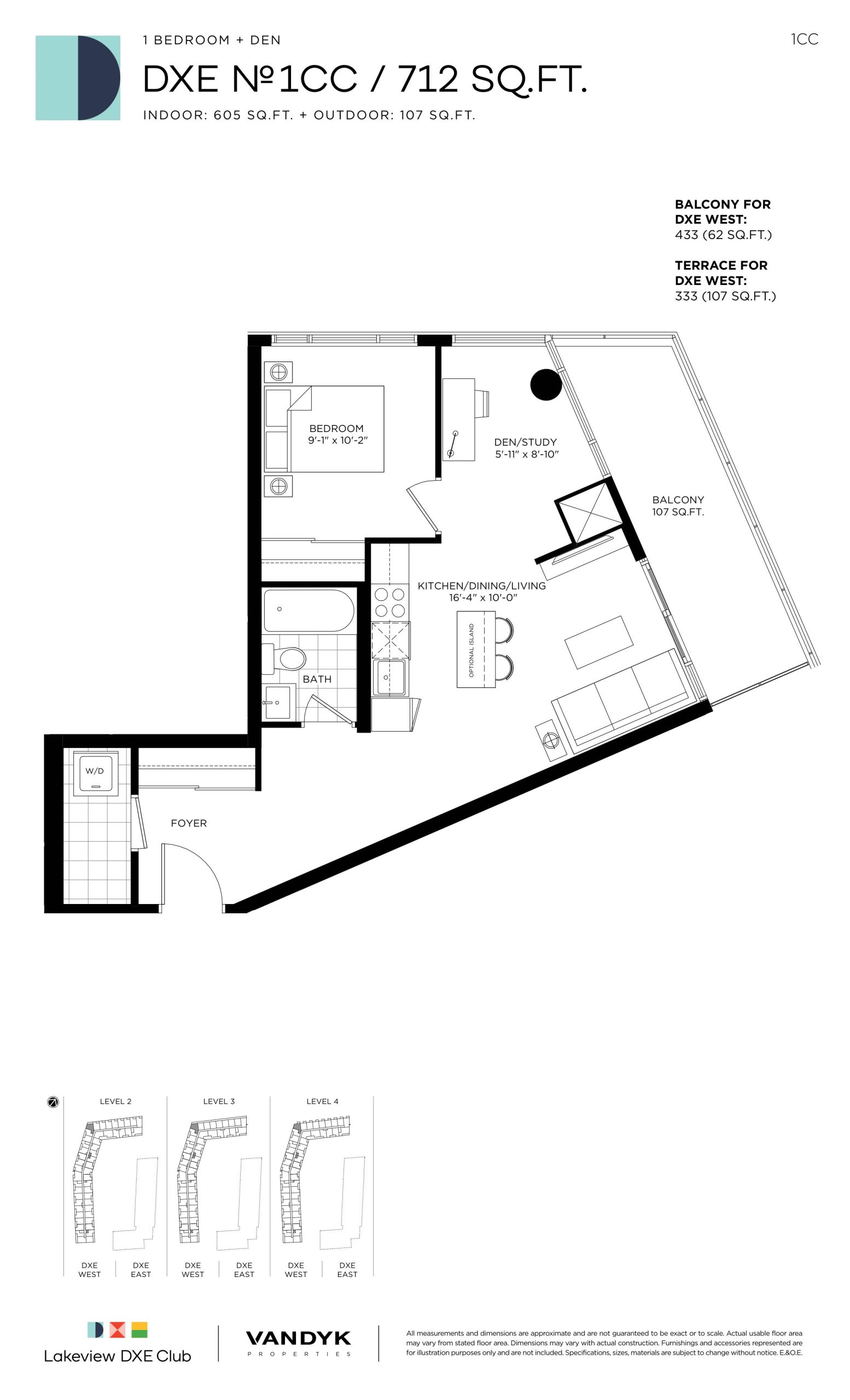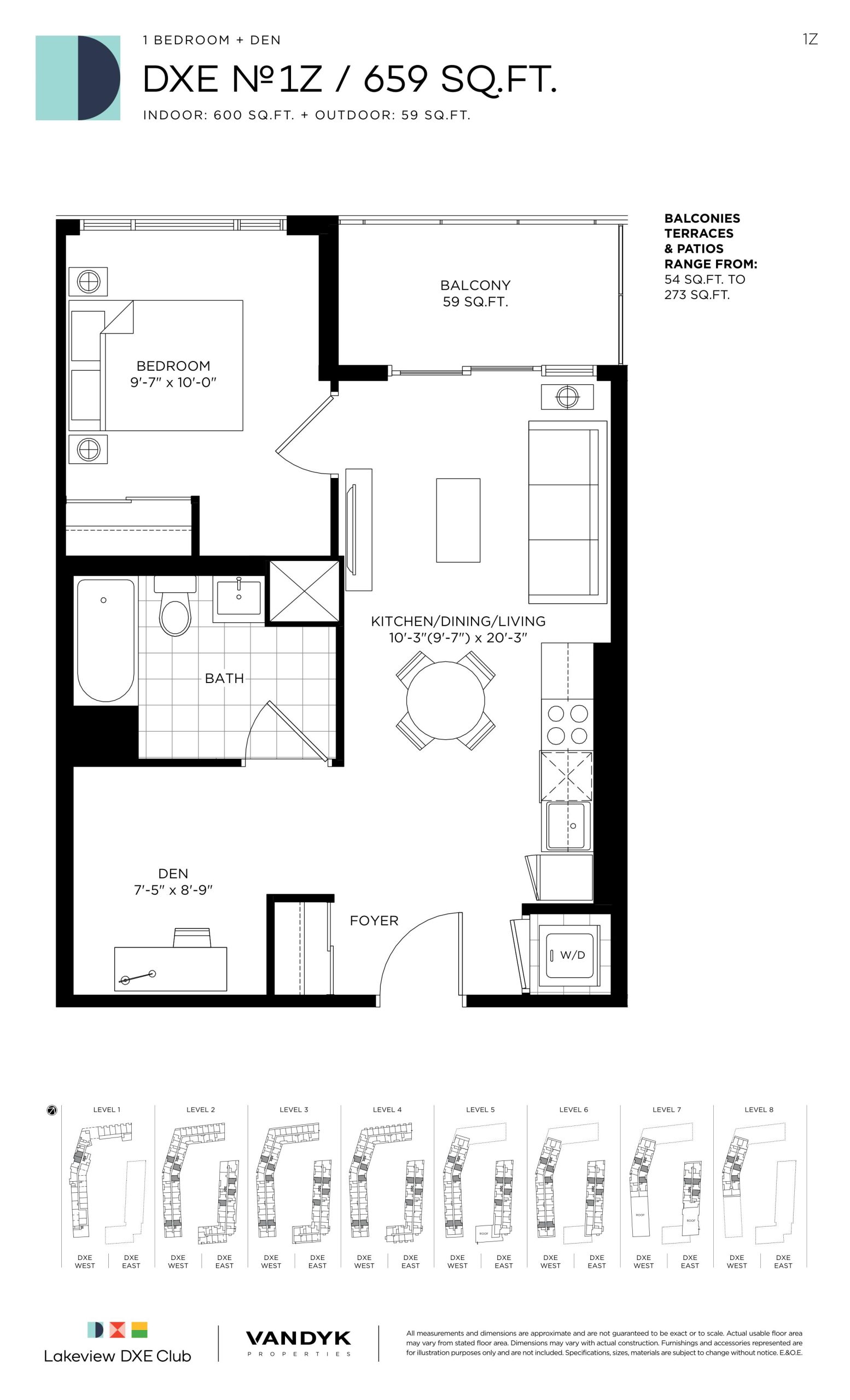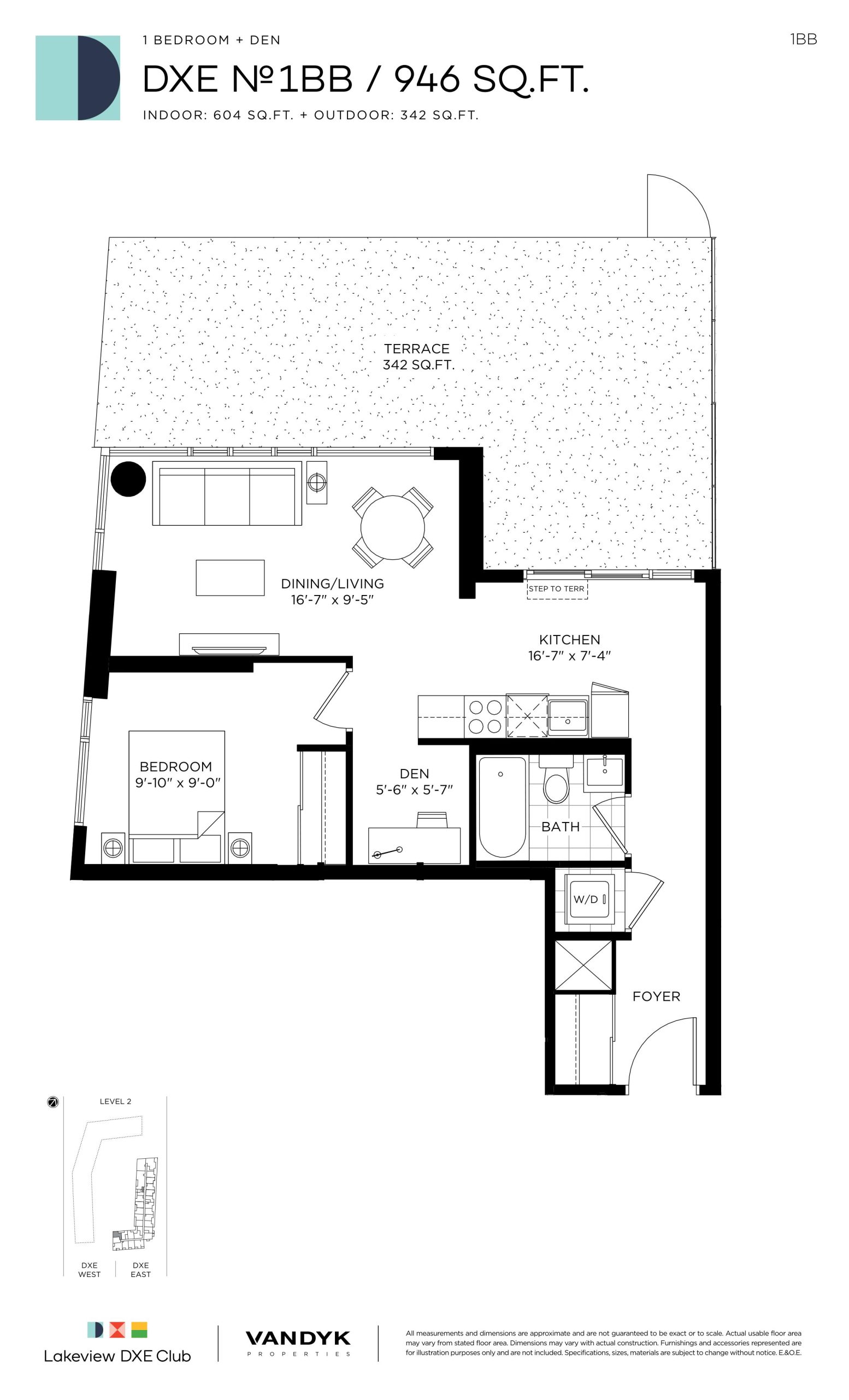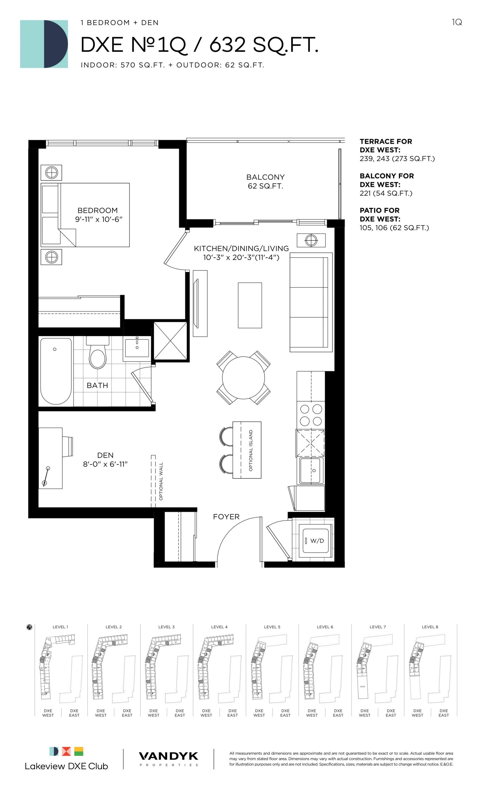 - 1 Bed + Den Change from Launch