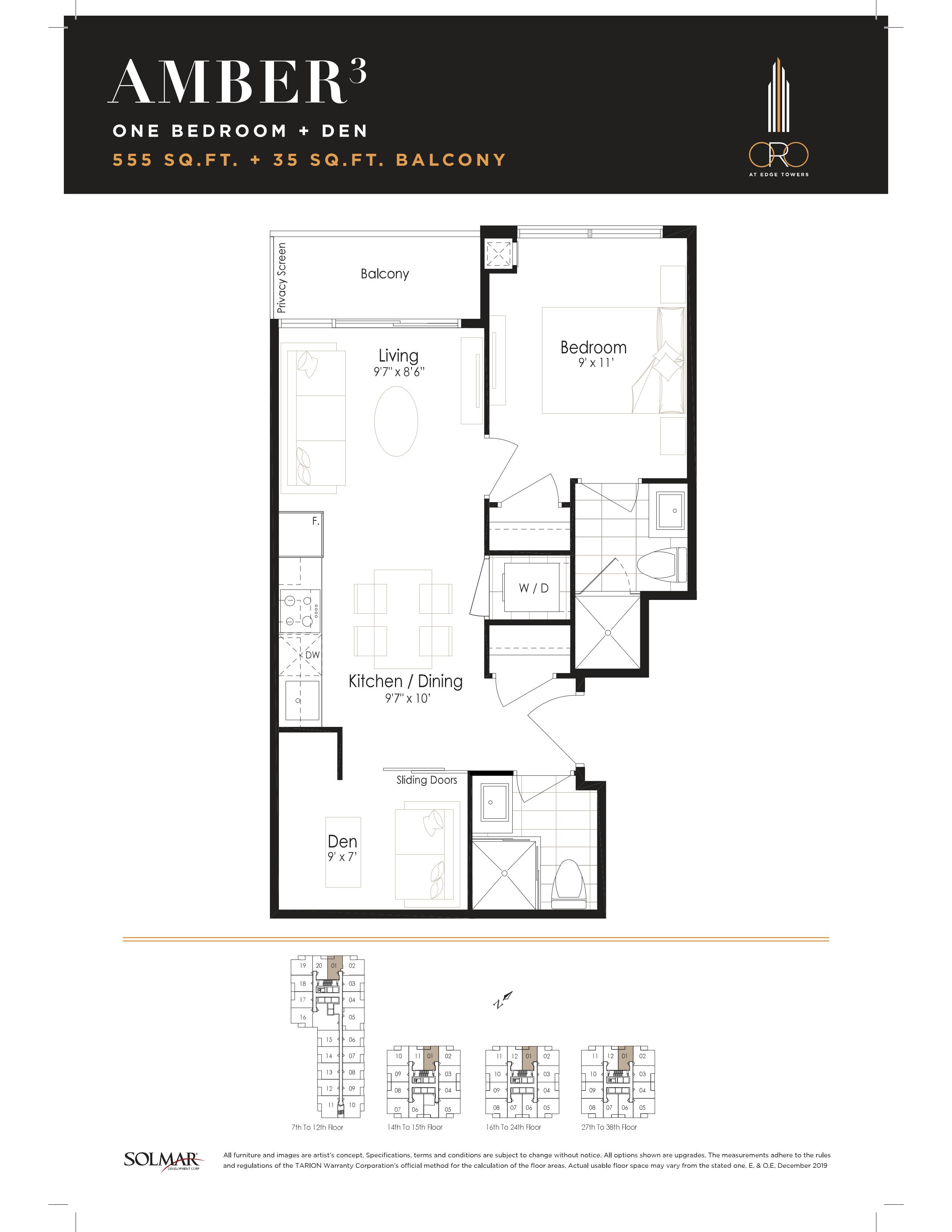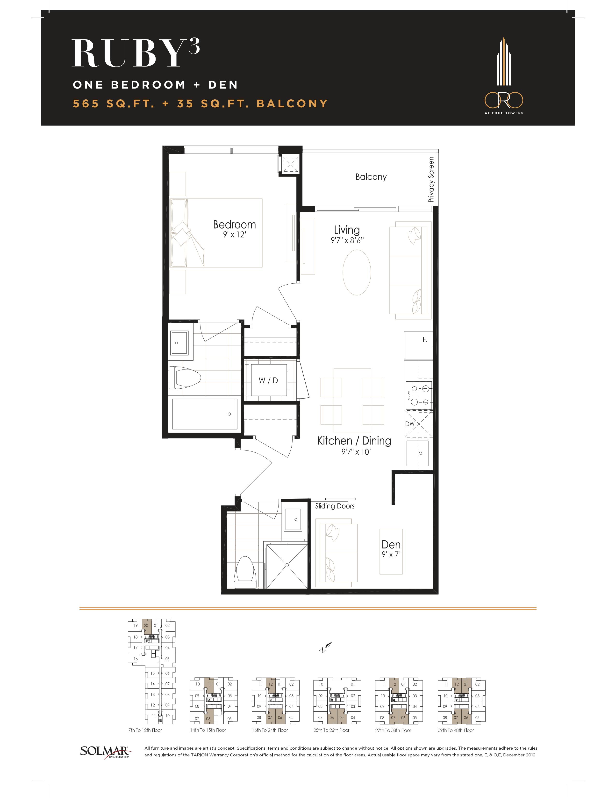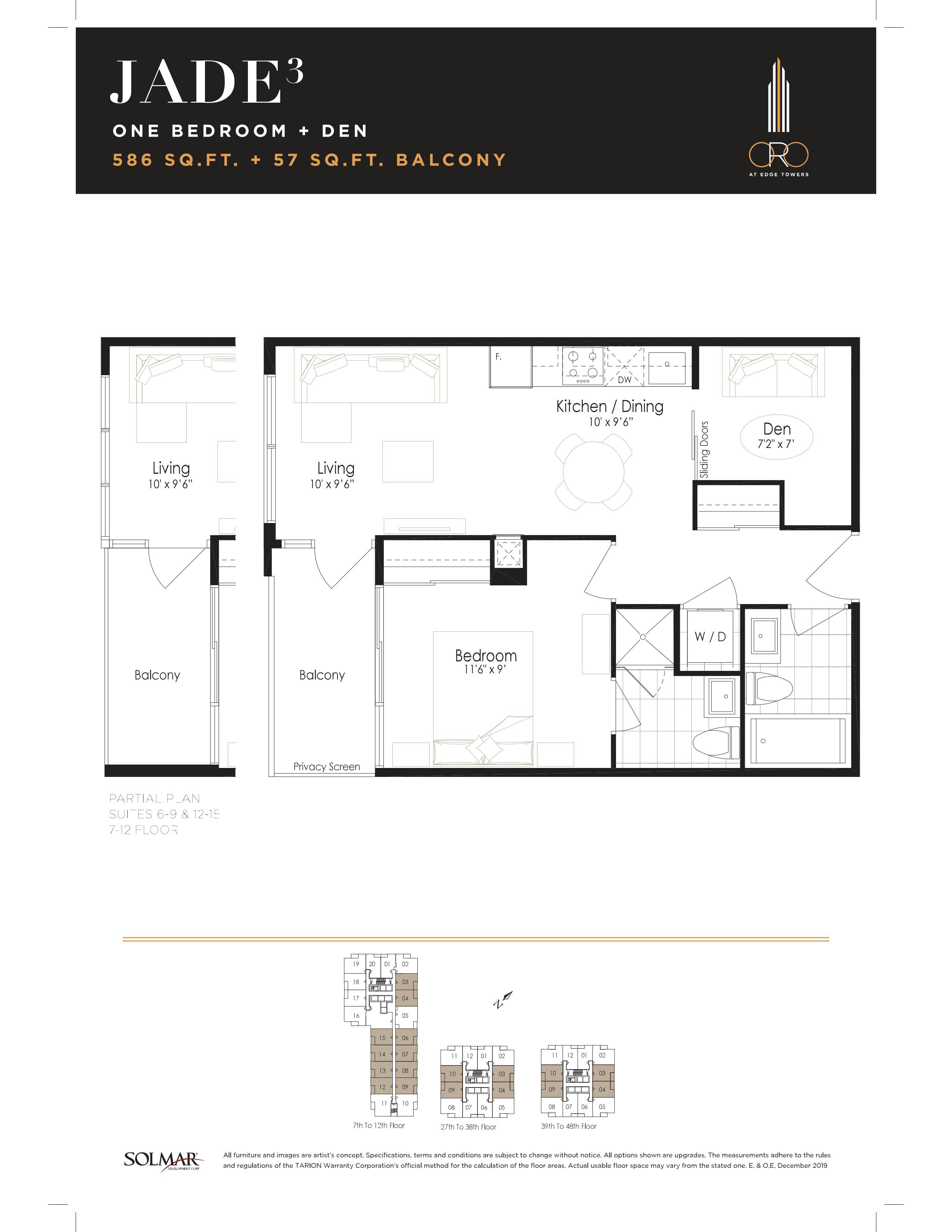 • Sliding doors to den in some units may be glass or finished with a portion in glass as per code