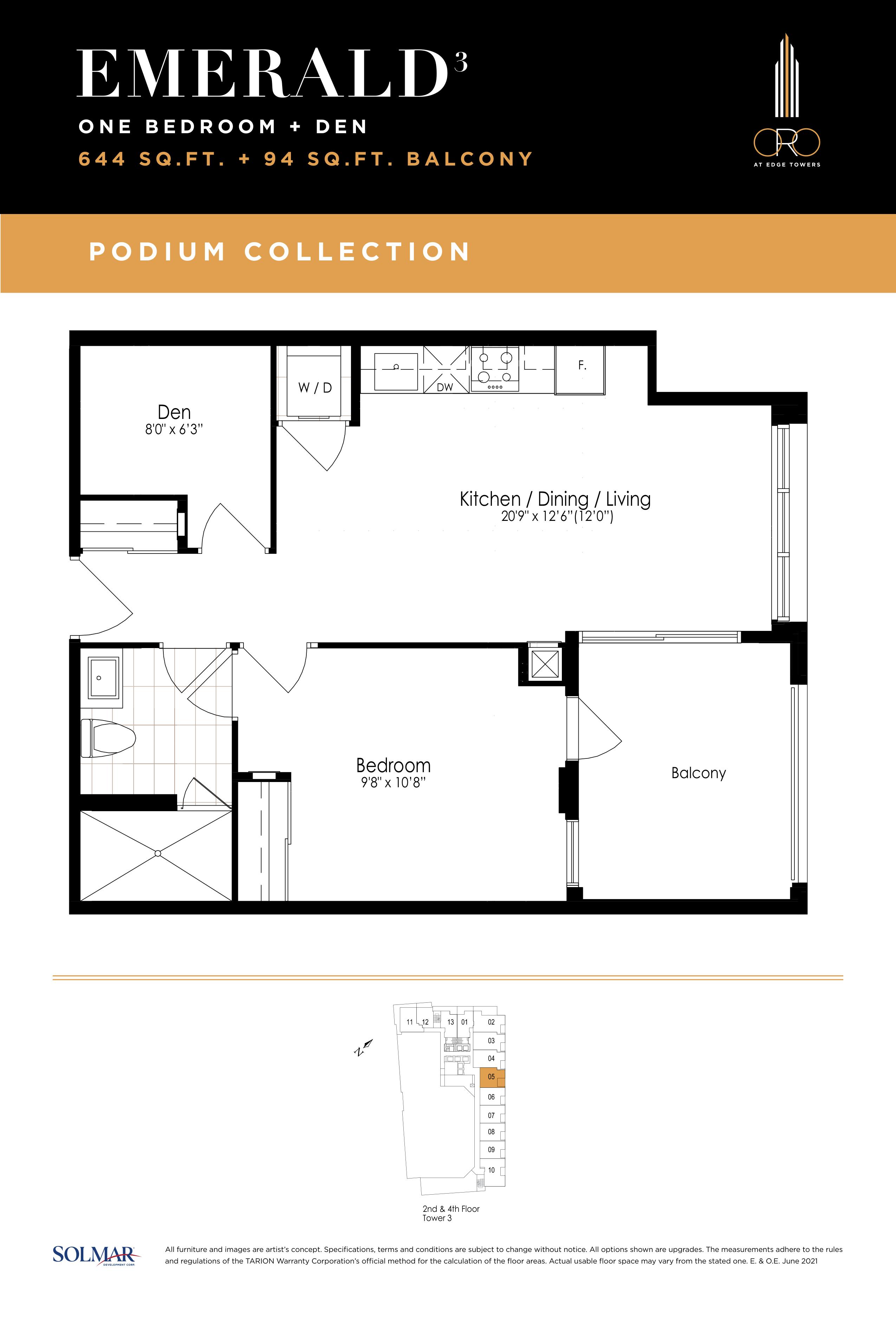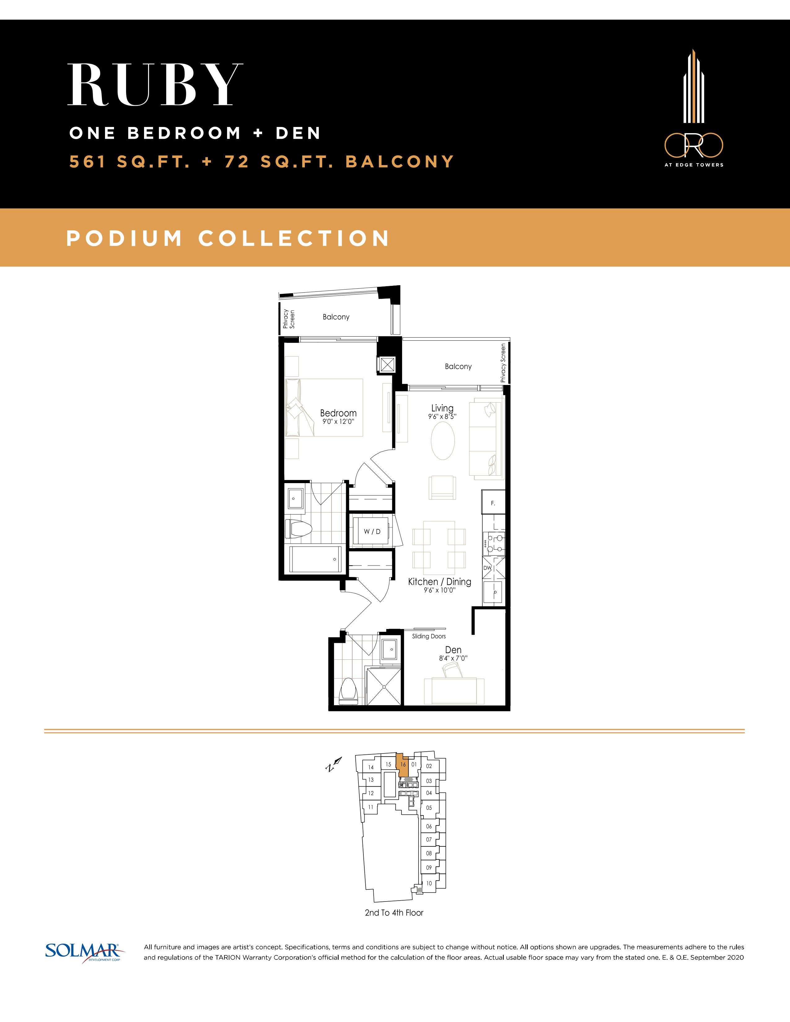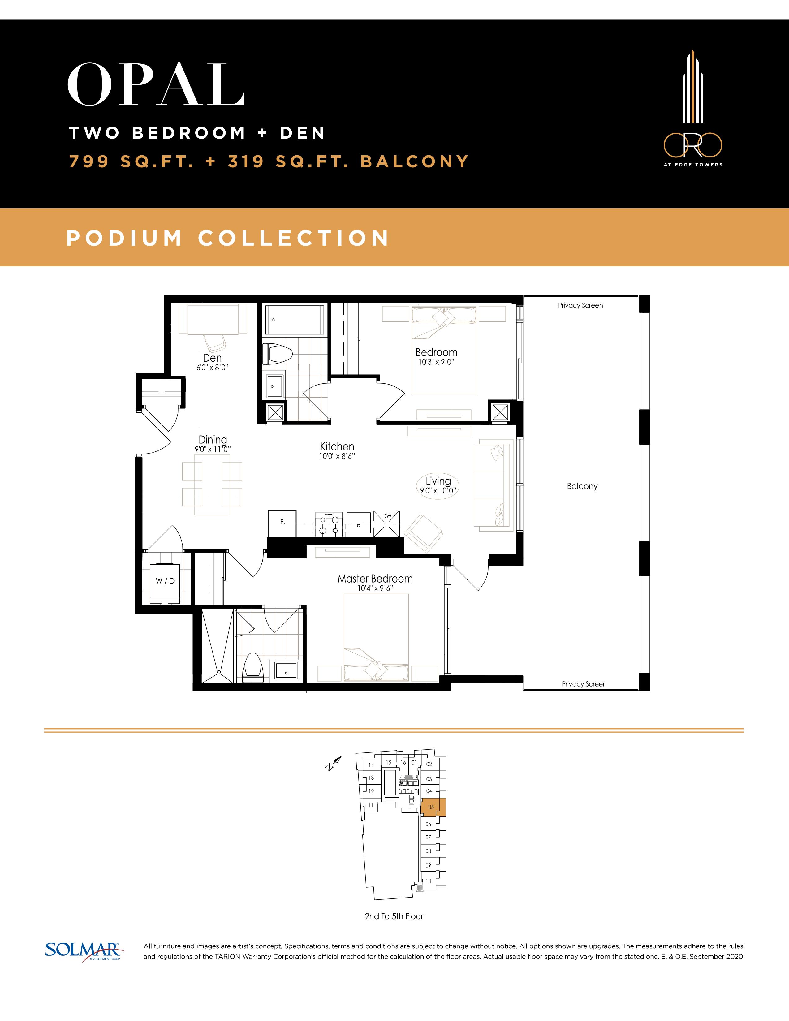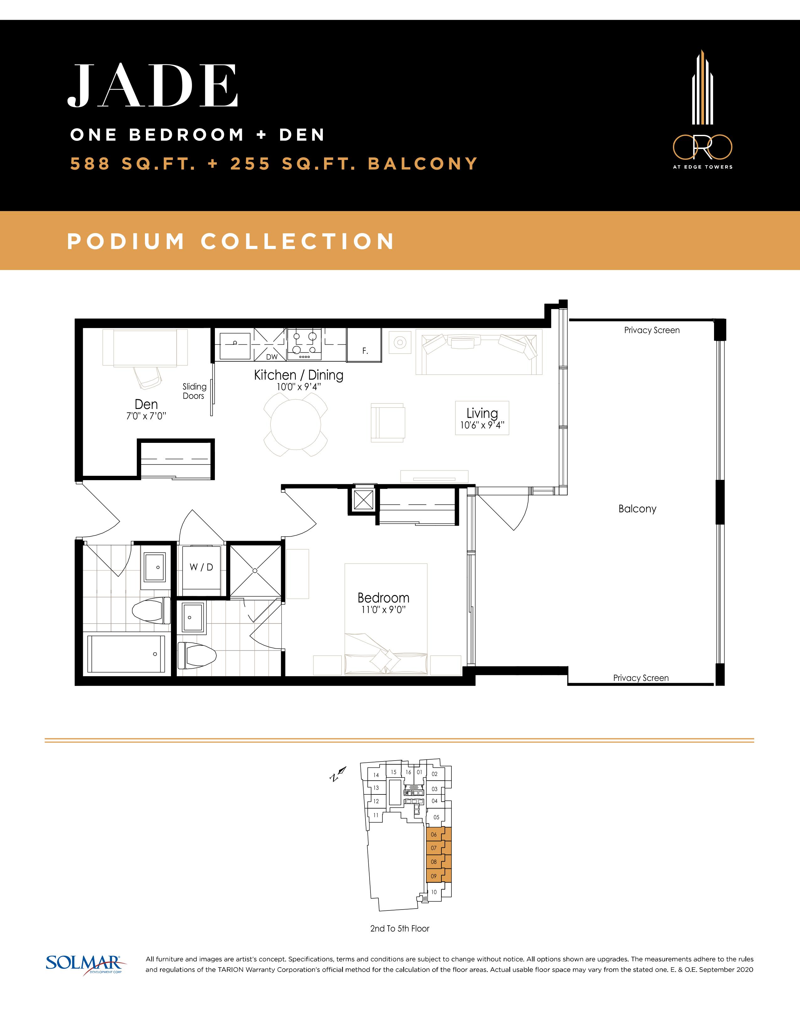 • Sliding doors to den in some units may be glass or finished with a portion in glass as per code