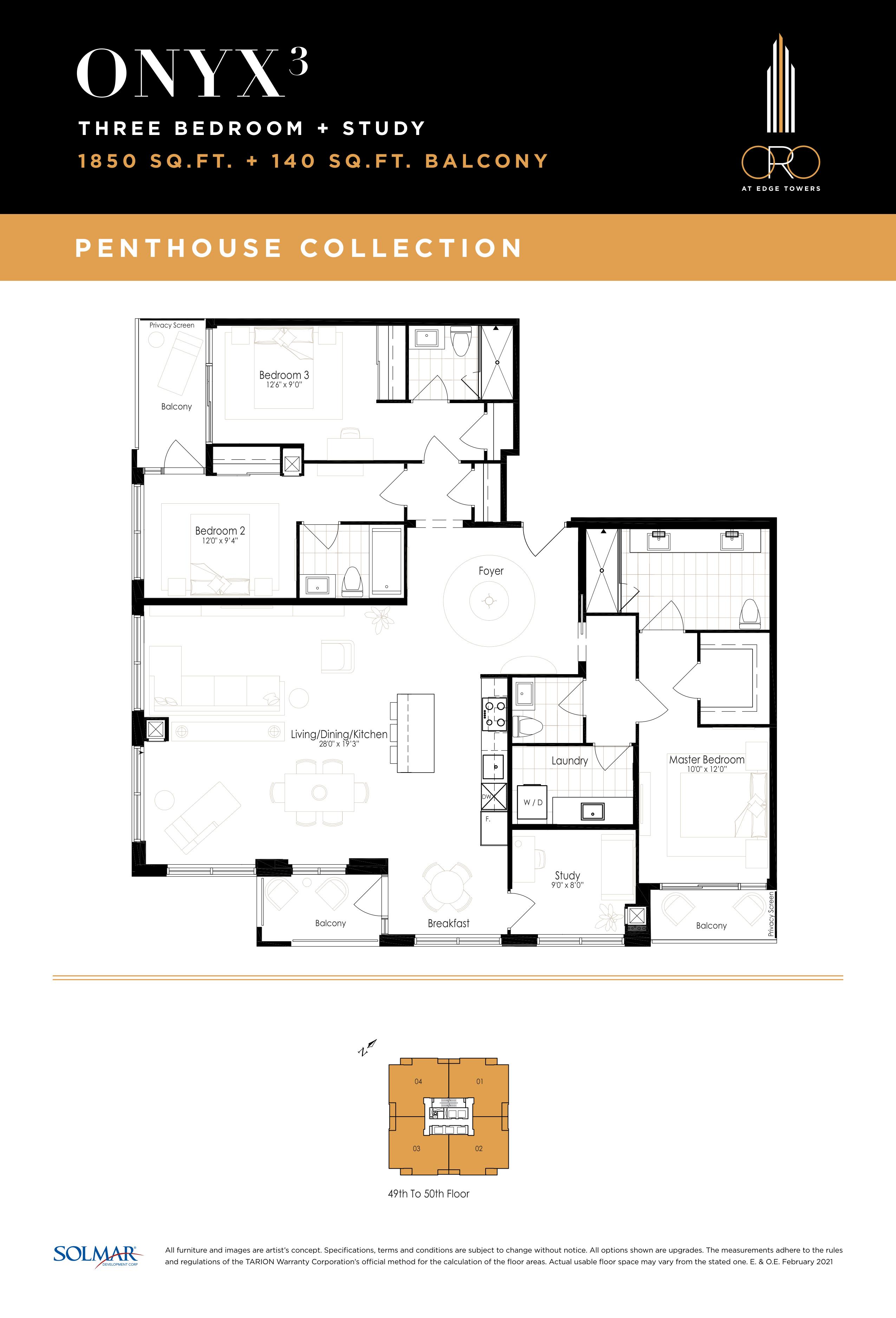 • Soaring 10’ ceiling heights in Penthouse units on 50th floor