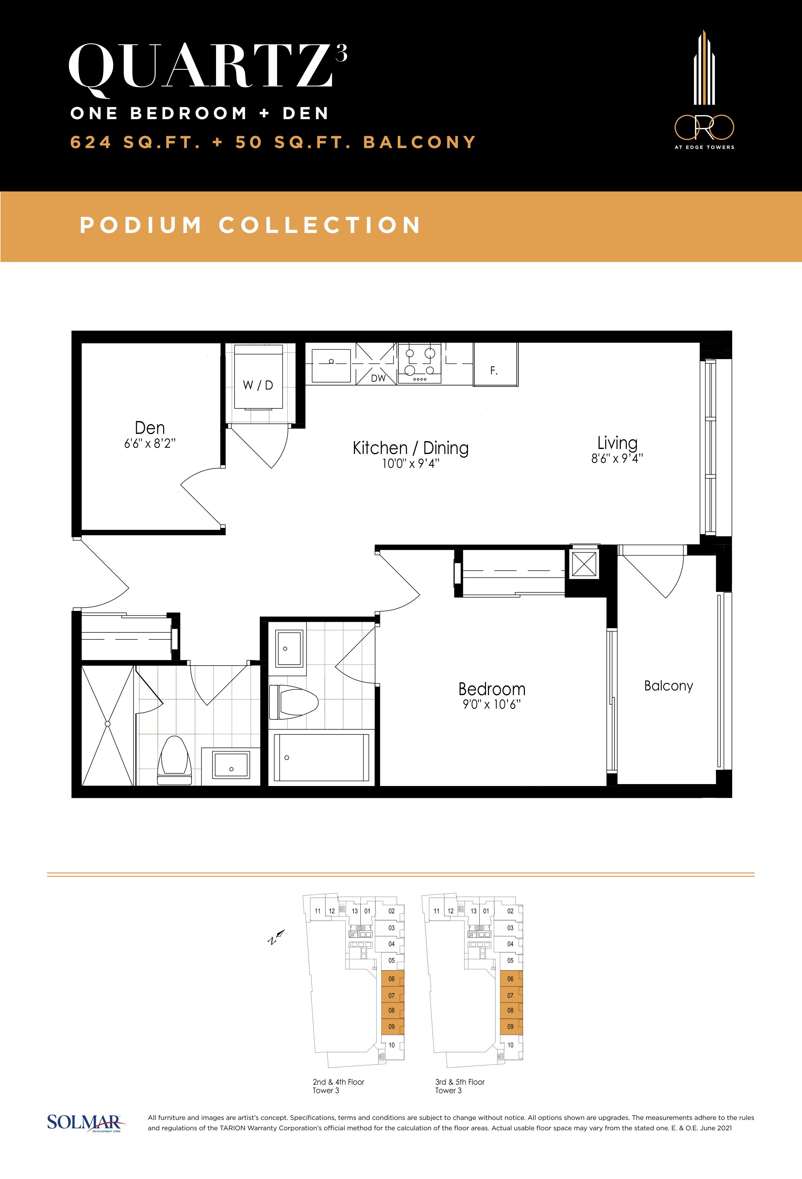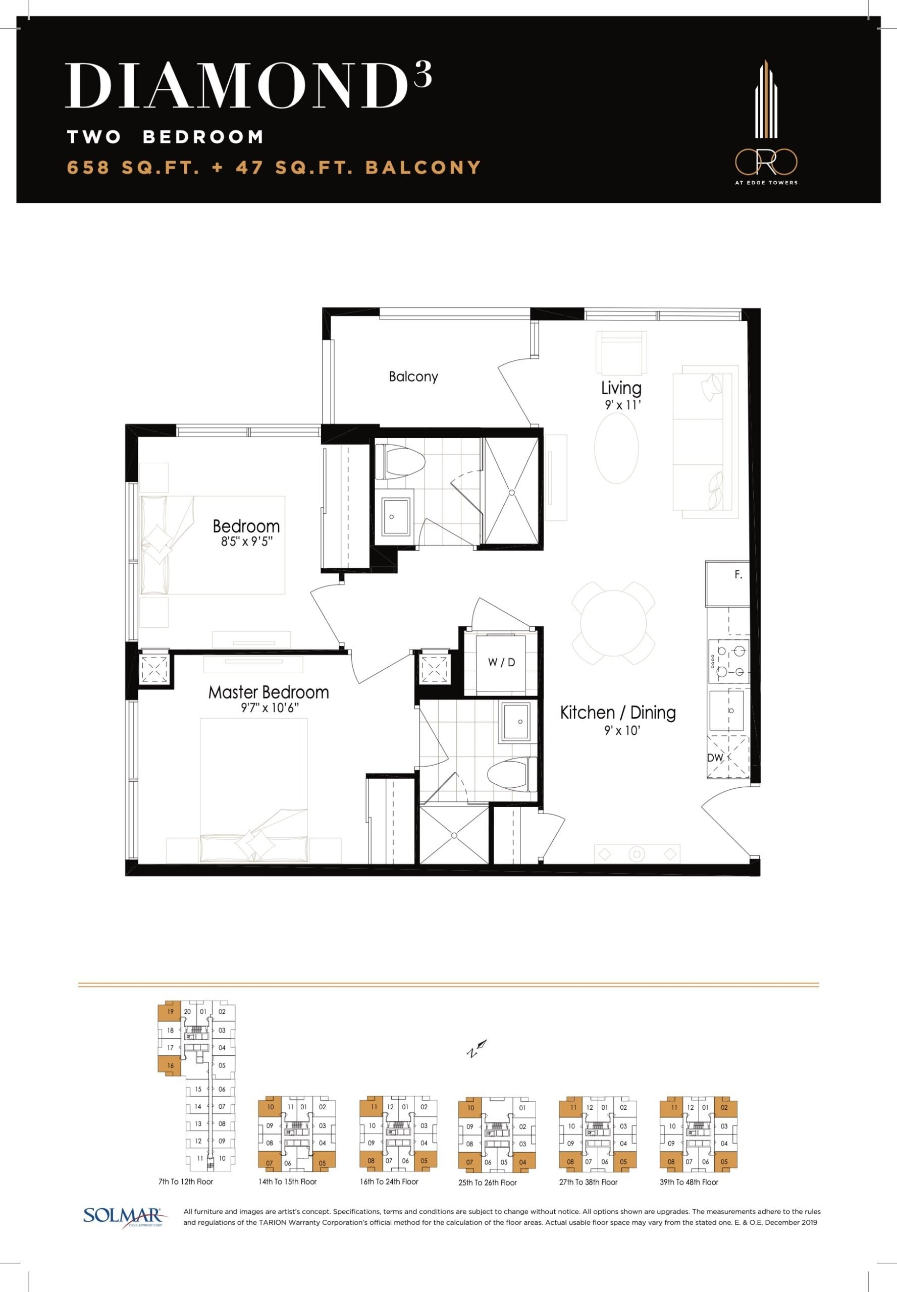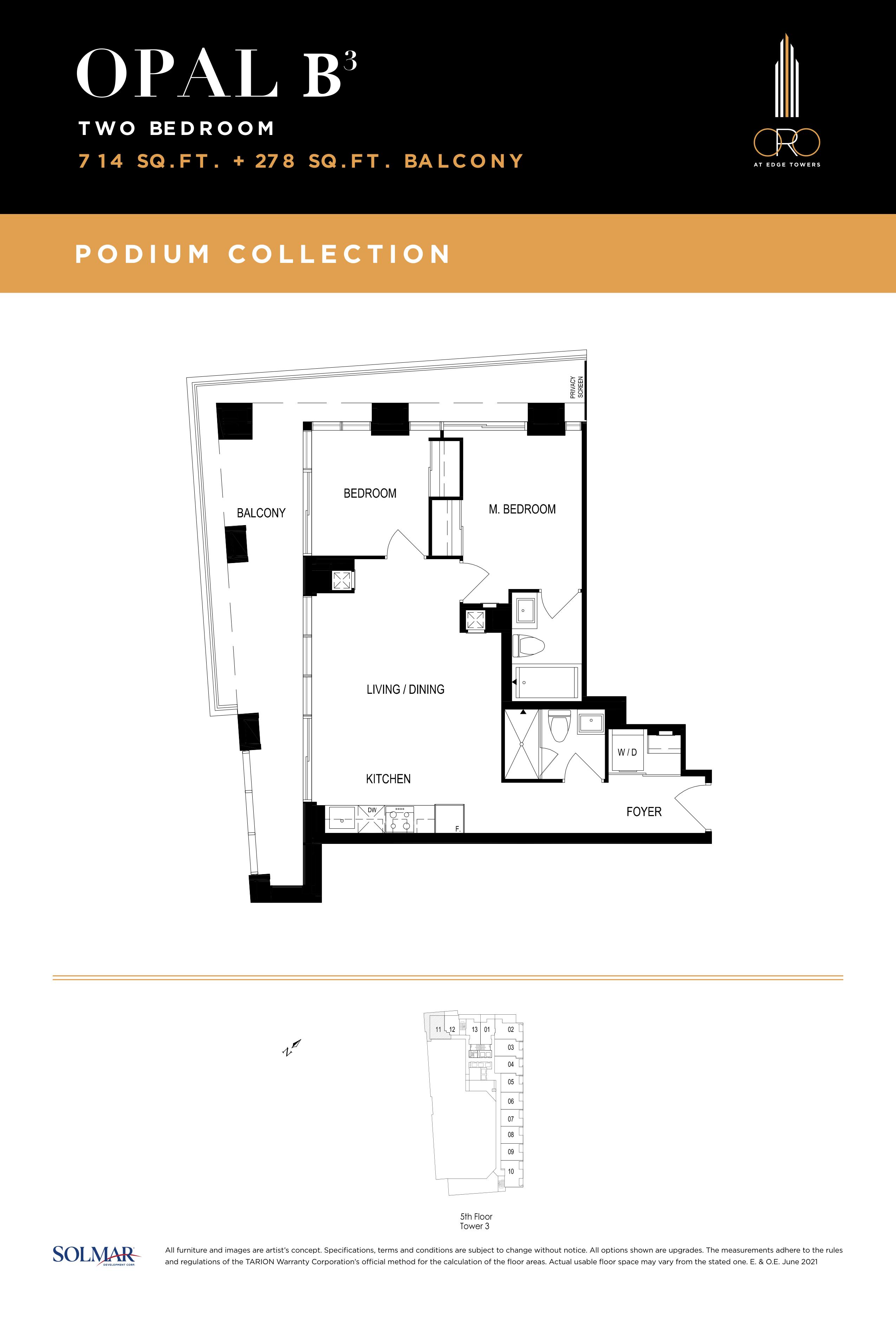 ORO at Edge Towers Condos is a new condominium development by Solmar Development Corp currently under construction located at 24 Elm Drive, Mississauga in the Fairview-Mississauga Valley neighbourhood with a 82/100 walk score and a 75/100 transit score. ORO at Edge Towers Condos is designed by Rosario "Roy" Varacalli & Cusimano Architect and will feature interior design by Dochia Interior Design. Development is scheduled to be completed in 2027. The project is 50 storeys tall and has a total of 614 suites ranging from 500 sq.ft to 1850 sq.ft. Suites are priced from $765,900 to $1,147,900.