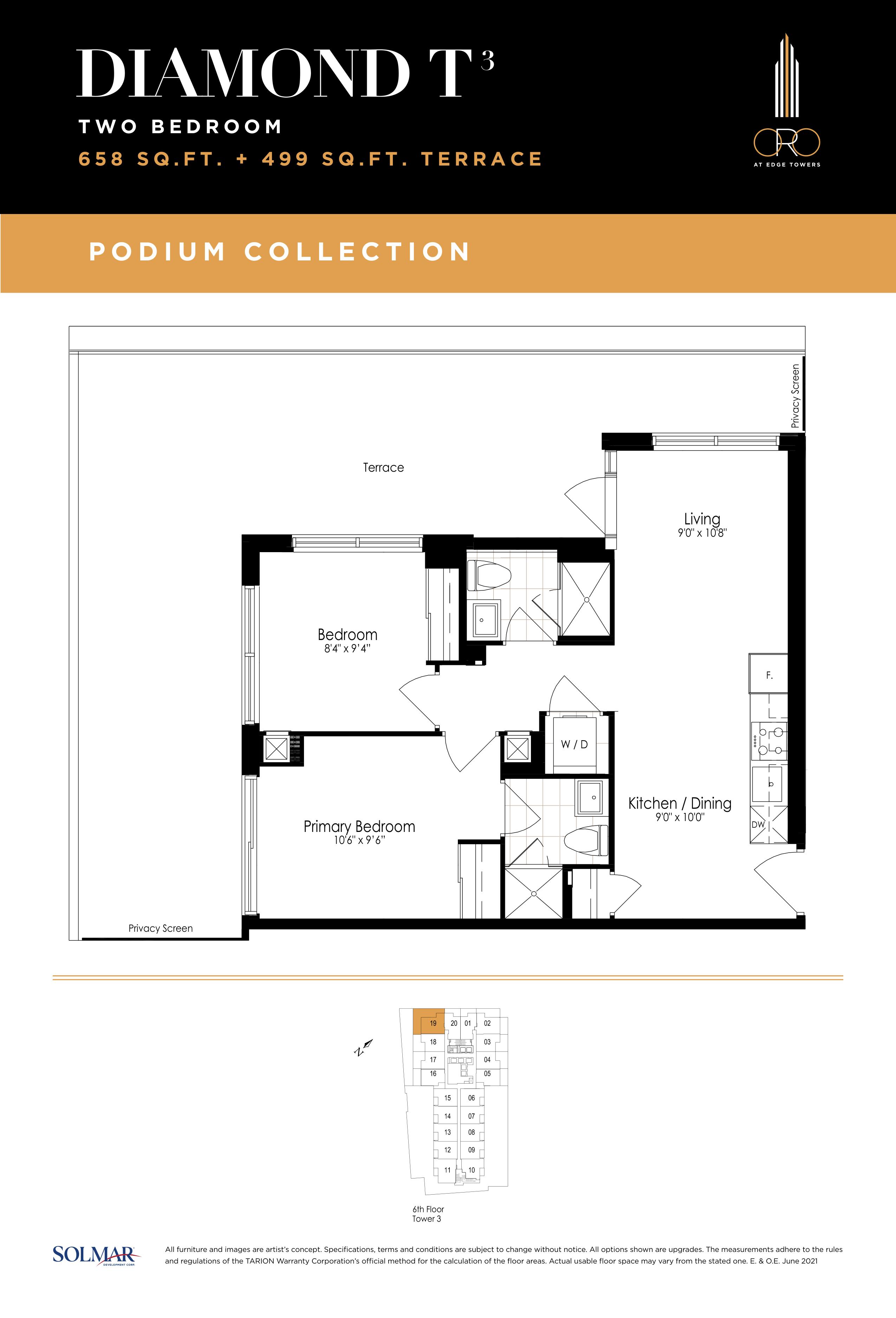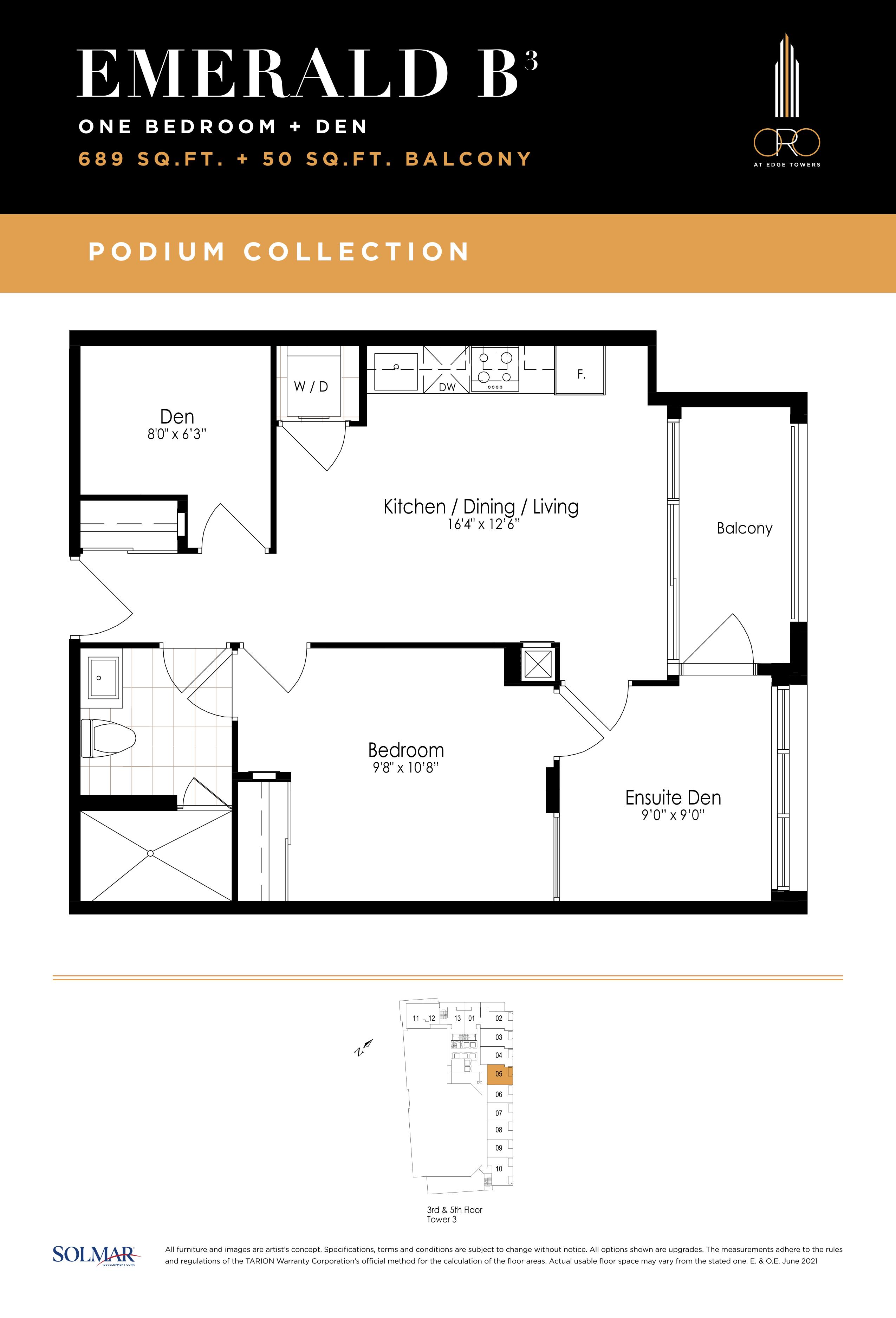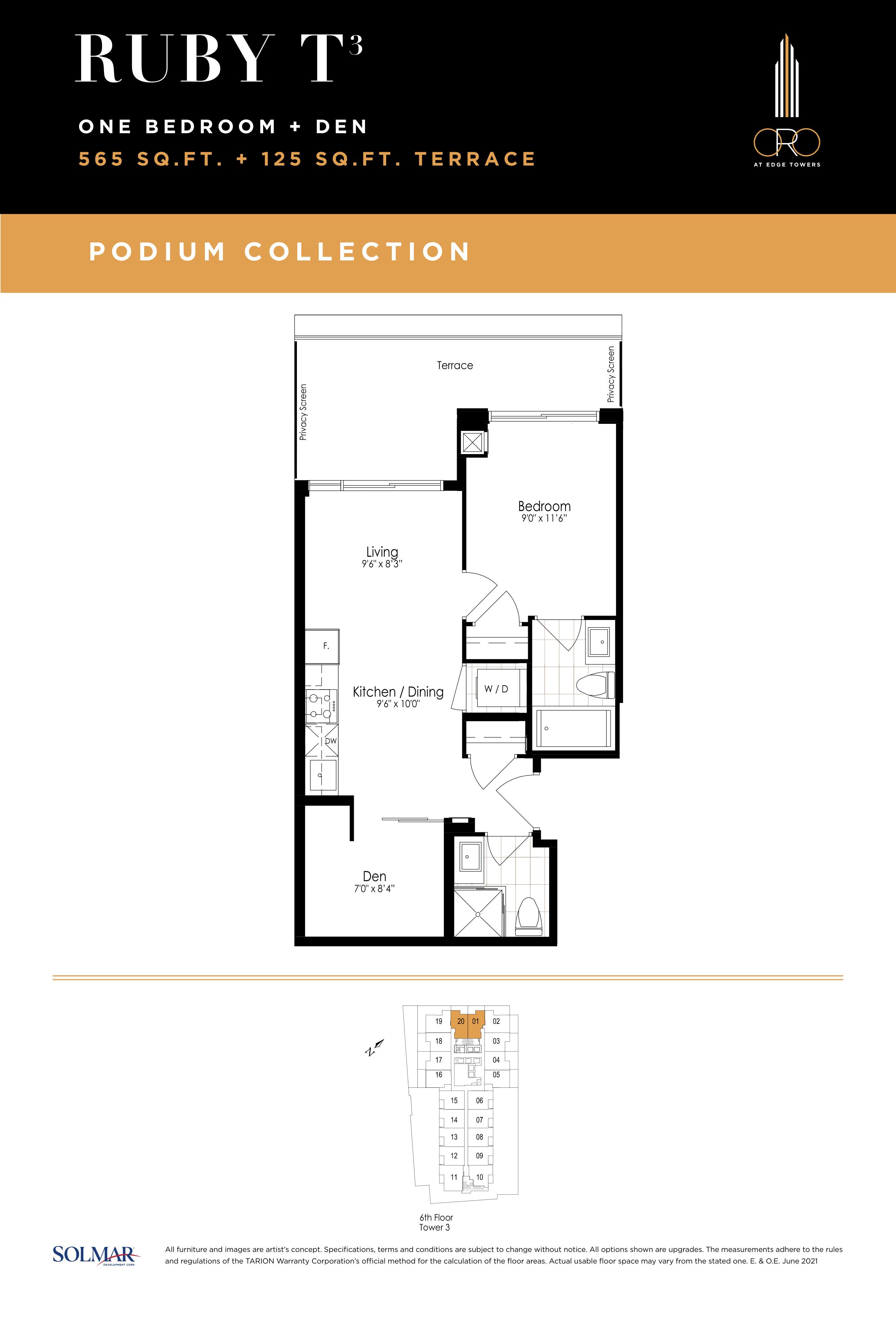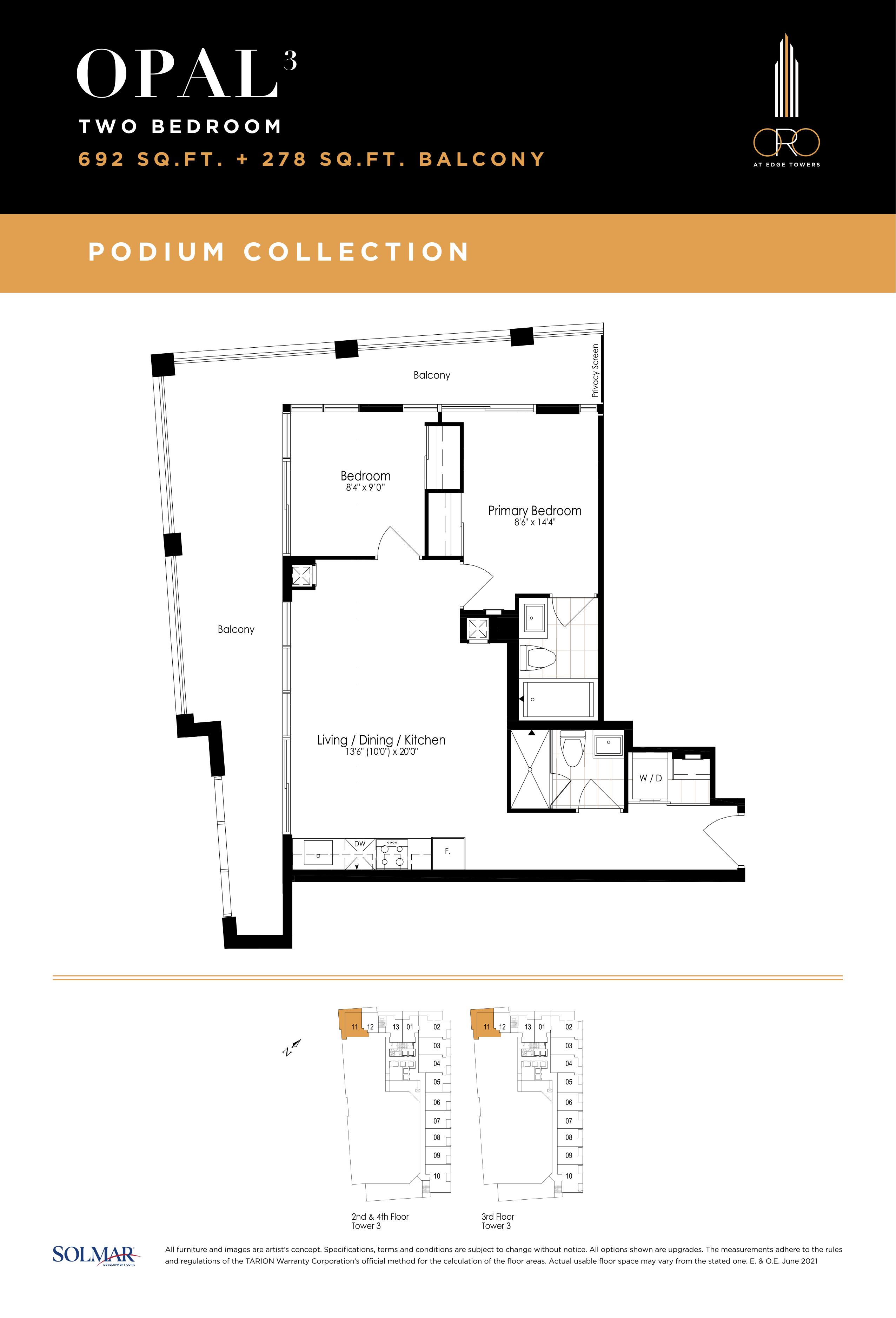 ORO at Edge Towers Condos is a new condominium development by Solmar Development Corp currently under construction located at 24 Elm Drive, Mississauga in the Fairview-Mississauga Valley neighbourhood with a 82/100 walk score and a 75/100 transit score. ORO at Edge Towers Condos is designed by Rosario "Roy" Varacalli & Cusimano Architect and will feature interior design by Dochia Interior Design. Development is scheduled to be completed in 2027. The project is 50 storeys tall and has a total of 614 suites ranging from 500 sq.ft to 1850 sq.ft. Suites are priced from $765,900 to $1,147,900.