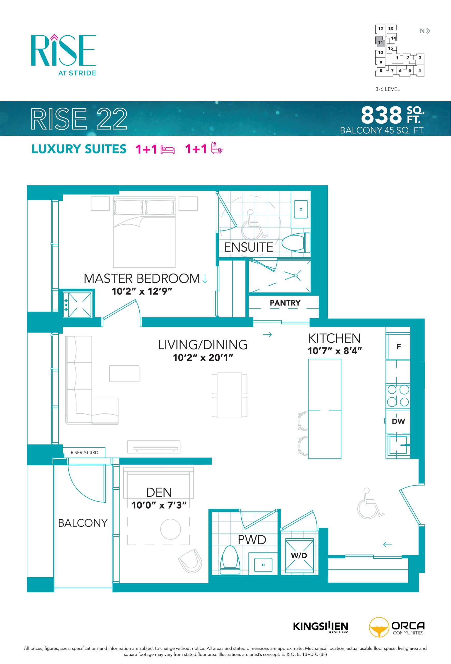 Floor Range for this suite: 3-6. Floor premiums may apply. Sales representative will confirm availability and final pricing.