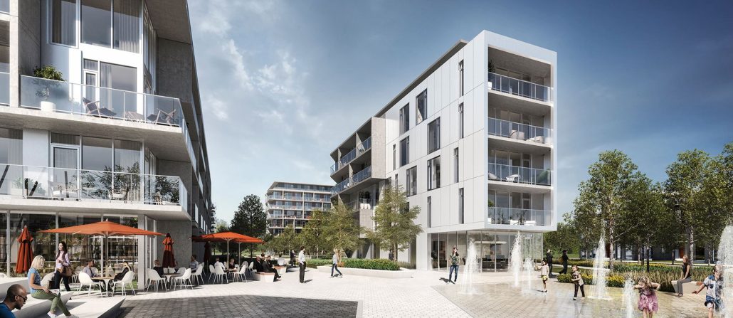 - 13 acre LEED ND (1) community consisting of four mid-rise buildings of 6 to 10 stories each, containing one- and two-storey condominiums and penthouses (Lot 1), and six blocks of townhouses and stacked townhouses (Lot 2)