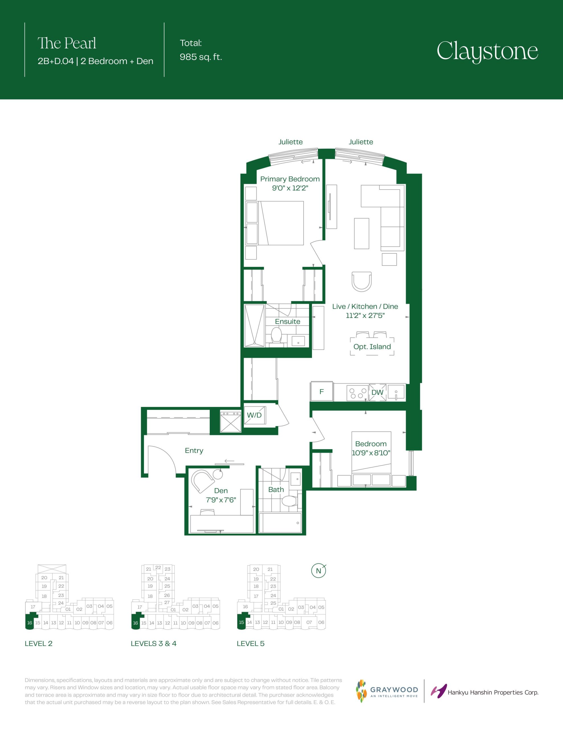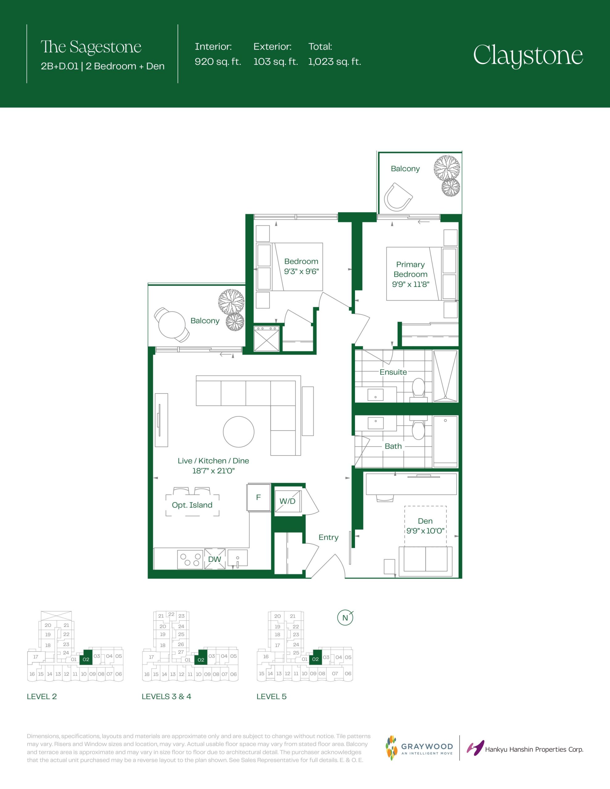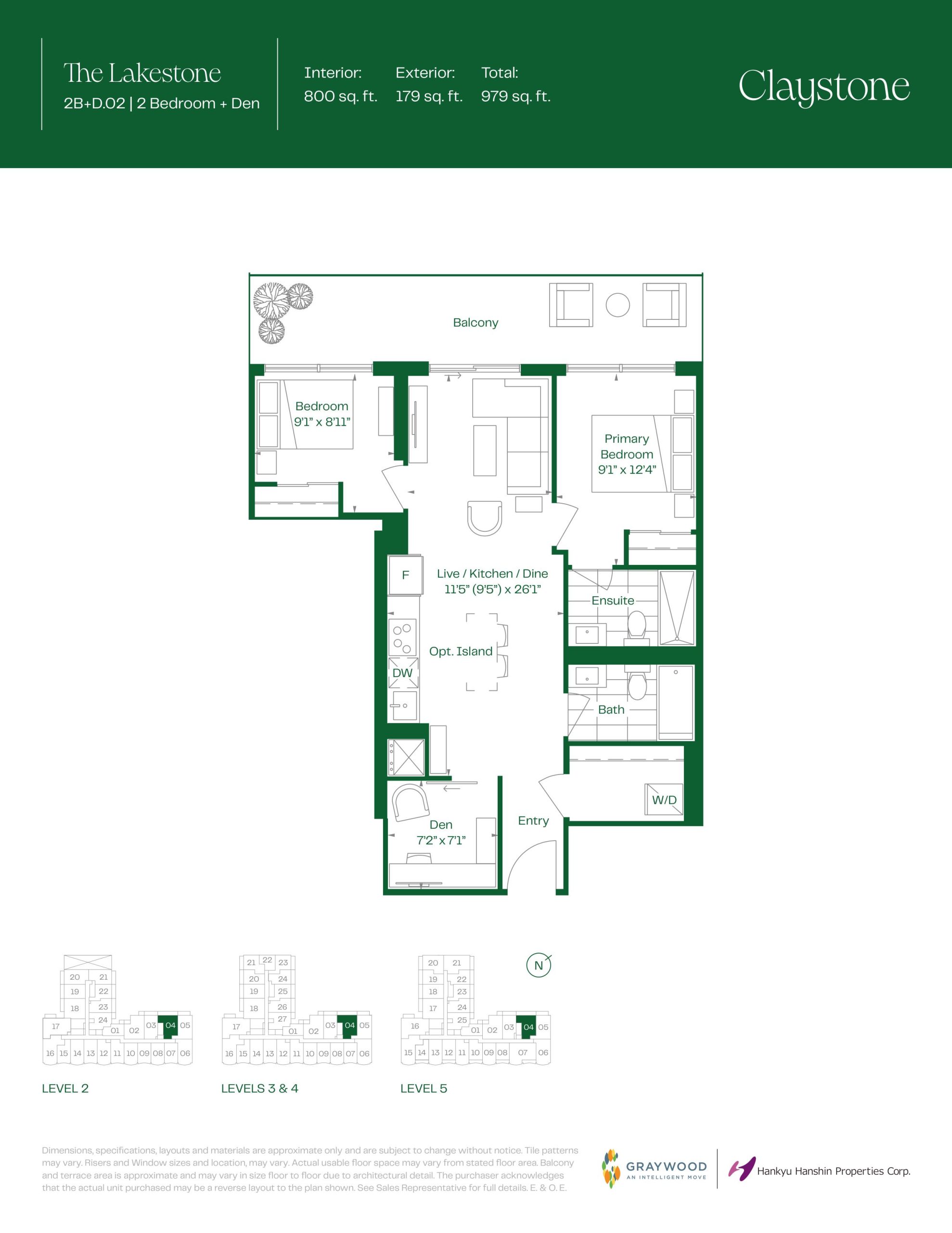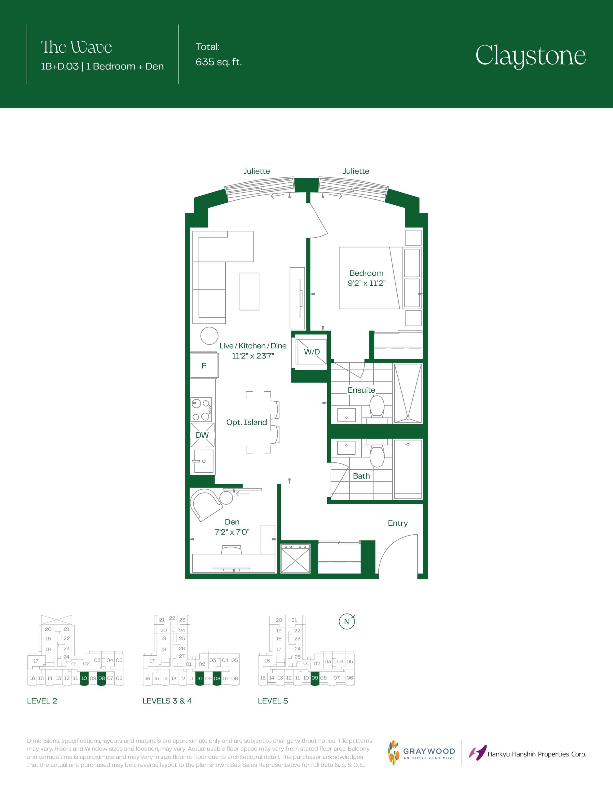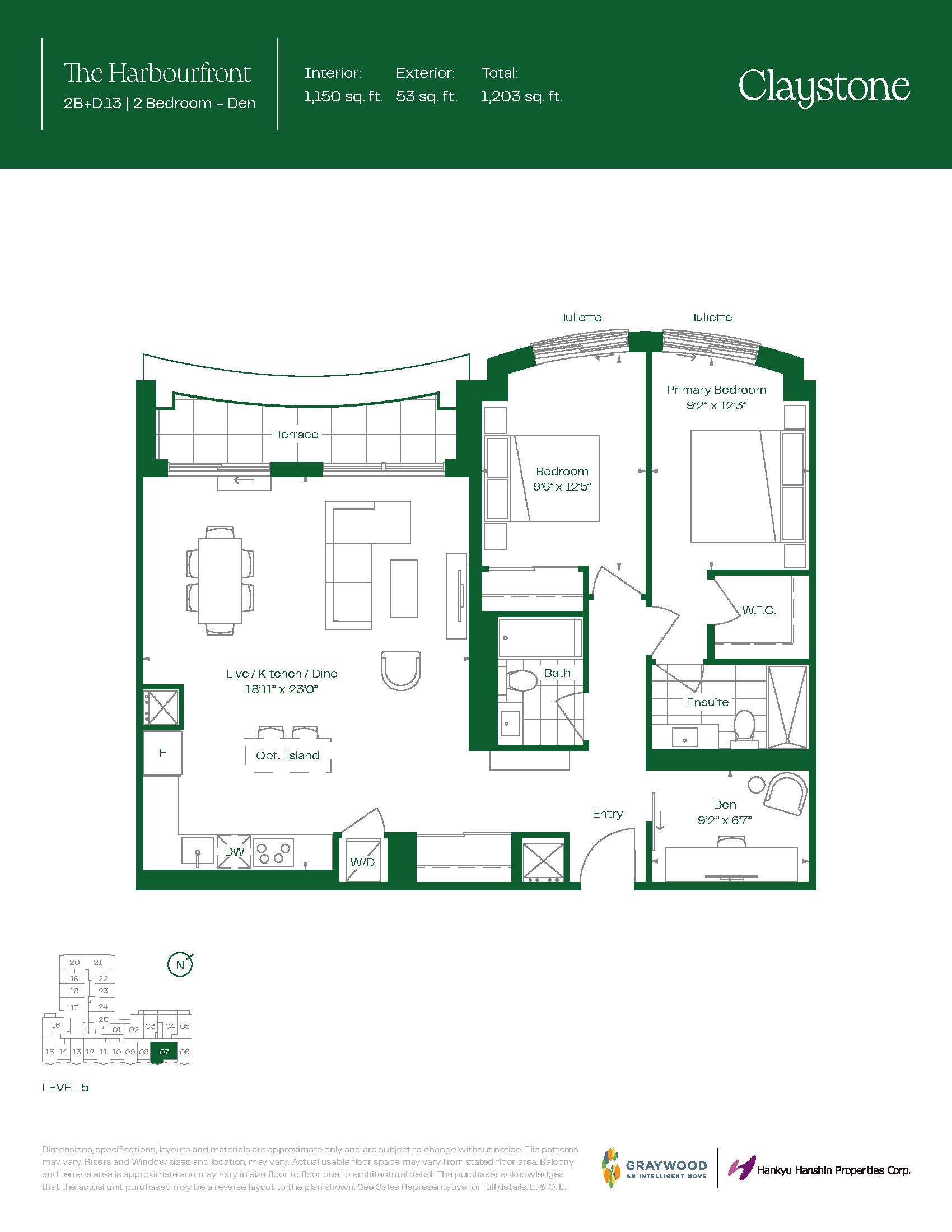 - 1 Bed + Den Change from Launch