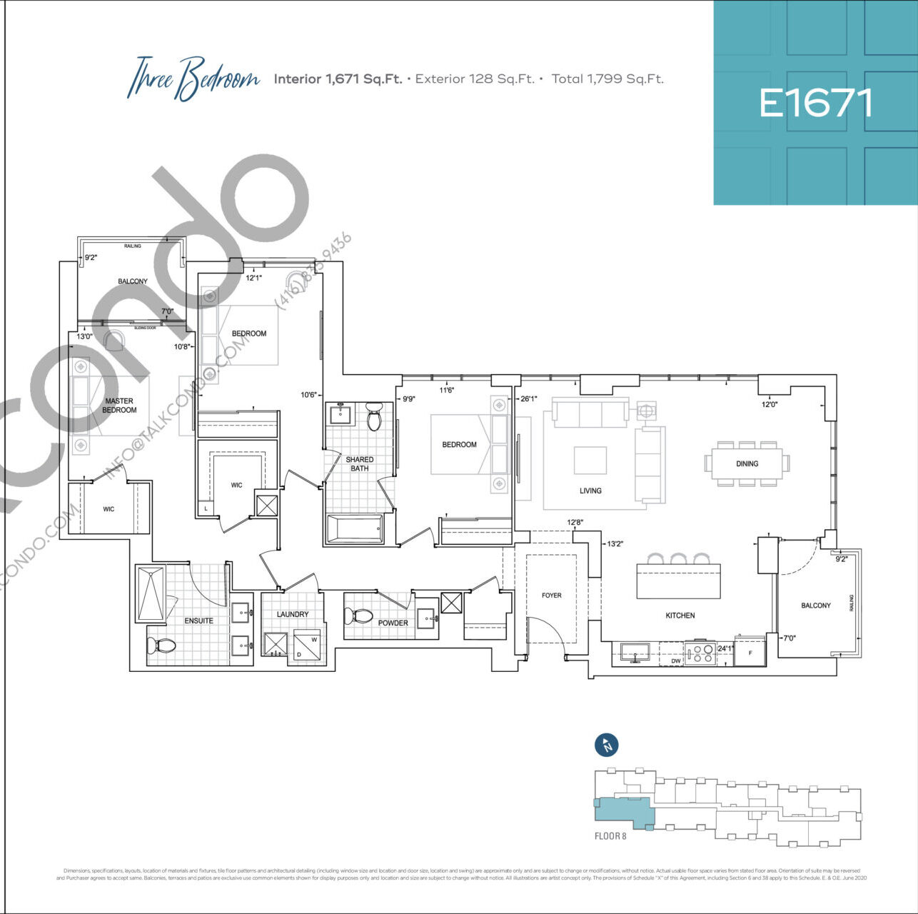 • 8’ interior doors with 3” casing including back band trim and 7-1/4” baseboard (Penthouse units).