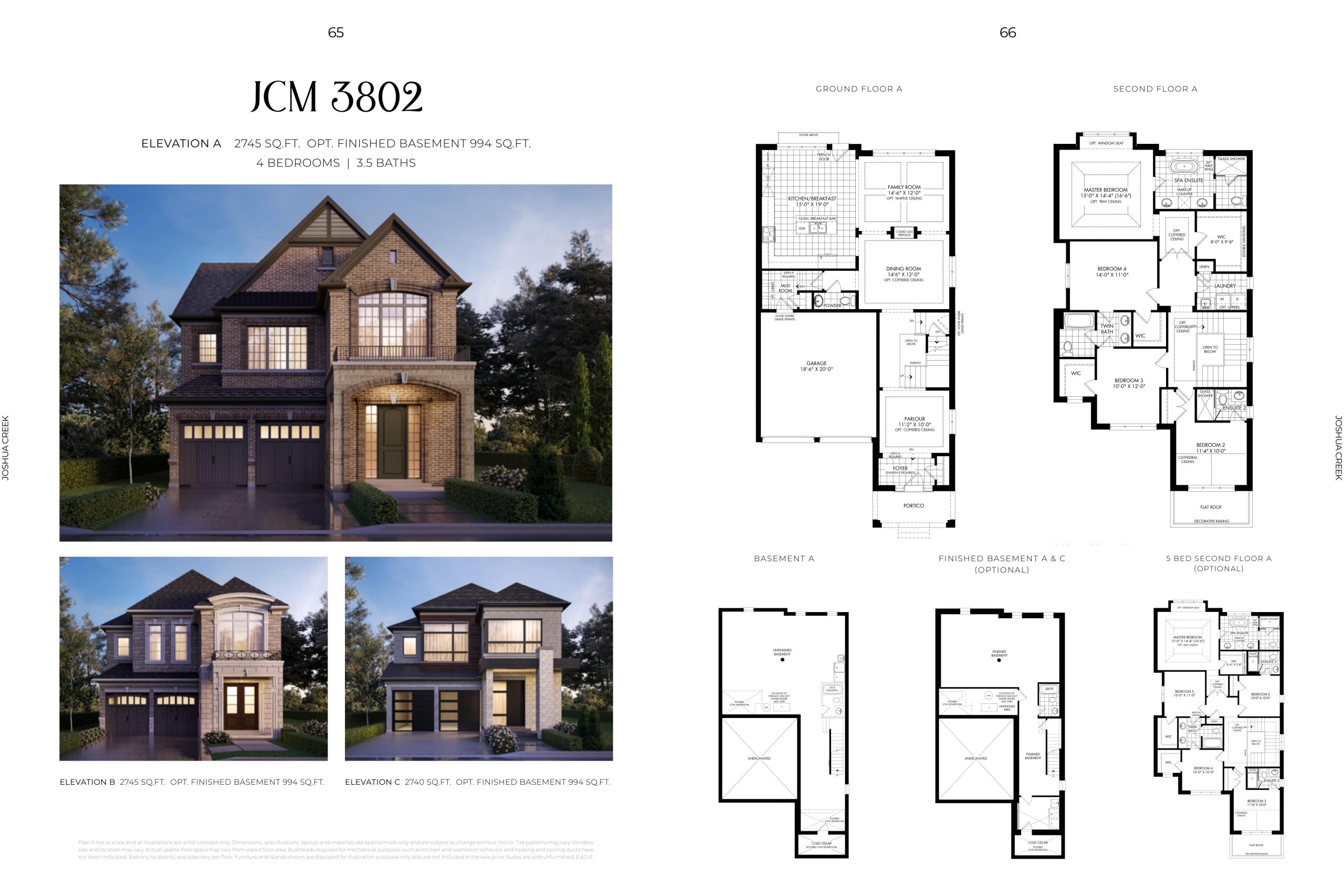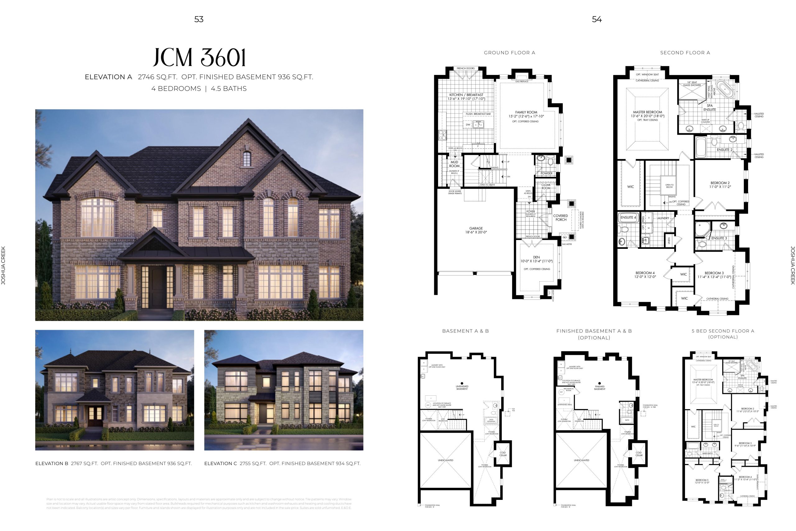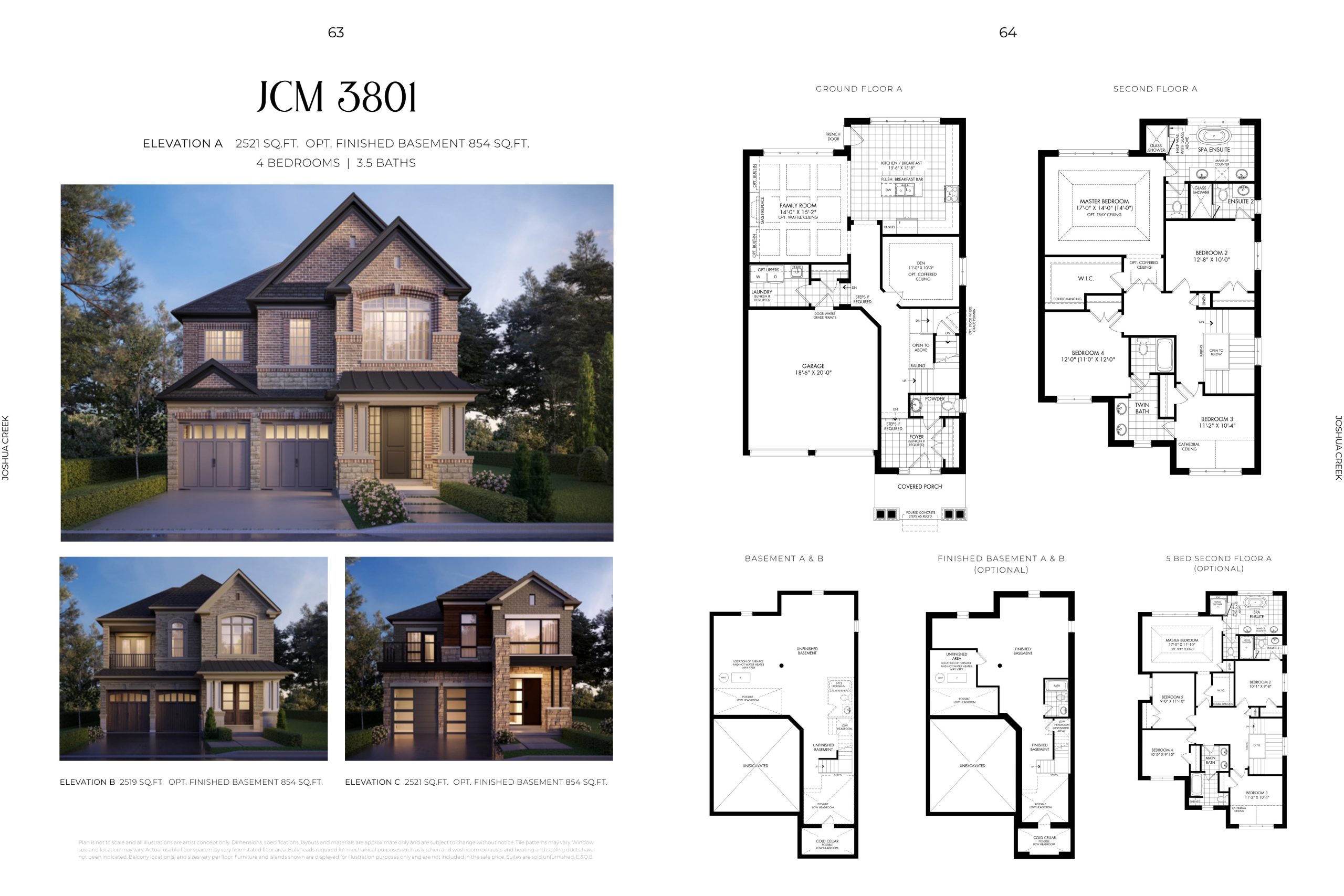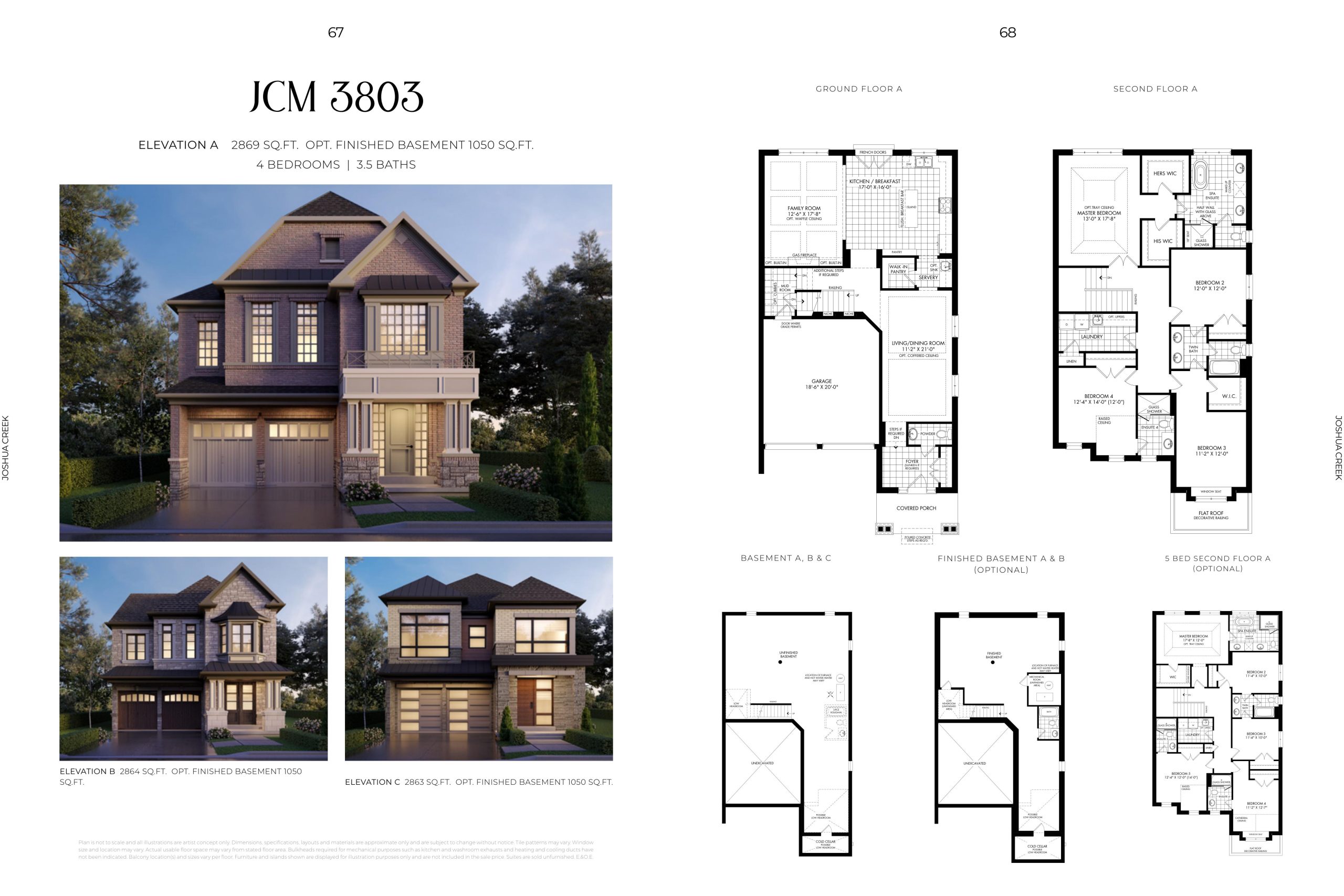 2. Genuine clay brick elevations with stone window sills, exquisite brick detailing, soldier coursing, brick archways, keystones and other masonry and stone detailing, siding and ornamental details (as per plan).
