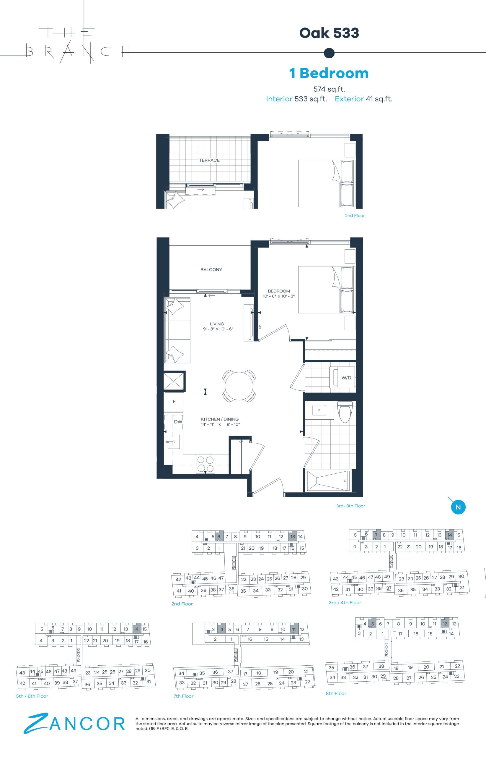 The Branch Condos is a new condominium development by Zancor Homes that is now complete located at 2450 Old Bronte Road, Oakville in the West Oak Trails neighbourhood with a 51/100 walk score and a 34/100 transit score. The Branch Condos is designed by BDP Quadrangle and will feature interior design by Tomas Pearce Interior Design Consulting Inc.. Development is scheduled to be completed in 2024. The project is 8 storeys tall and has a total of 334 suites ranging from 433 sq.ft to 1108 sq.ft. Suites are priced from $529,900 to $998,900.