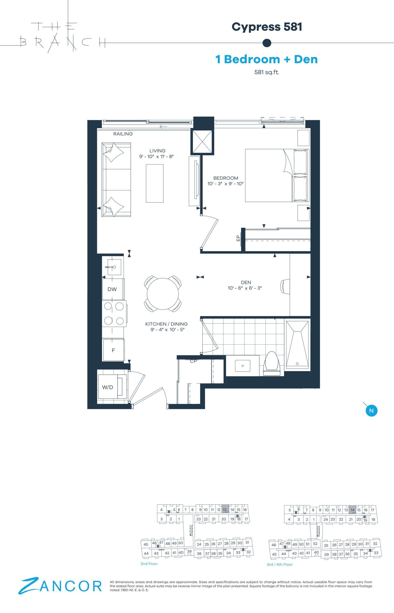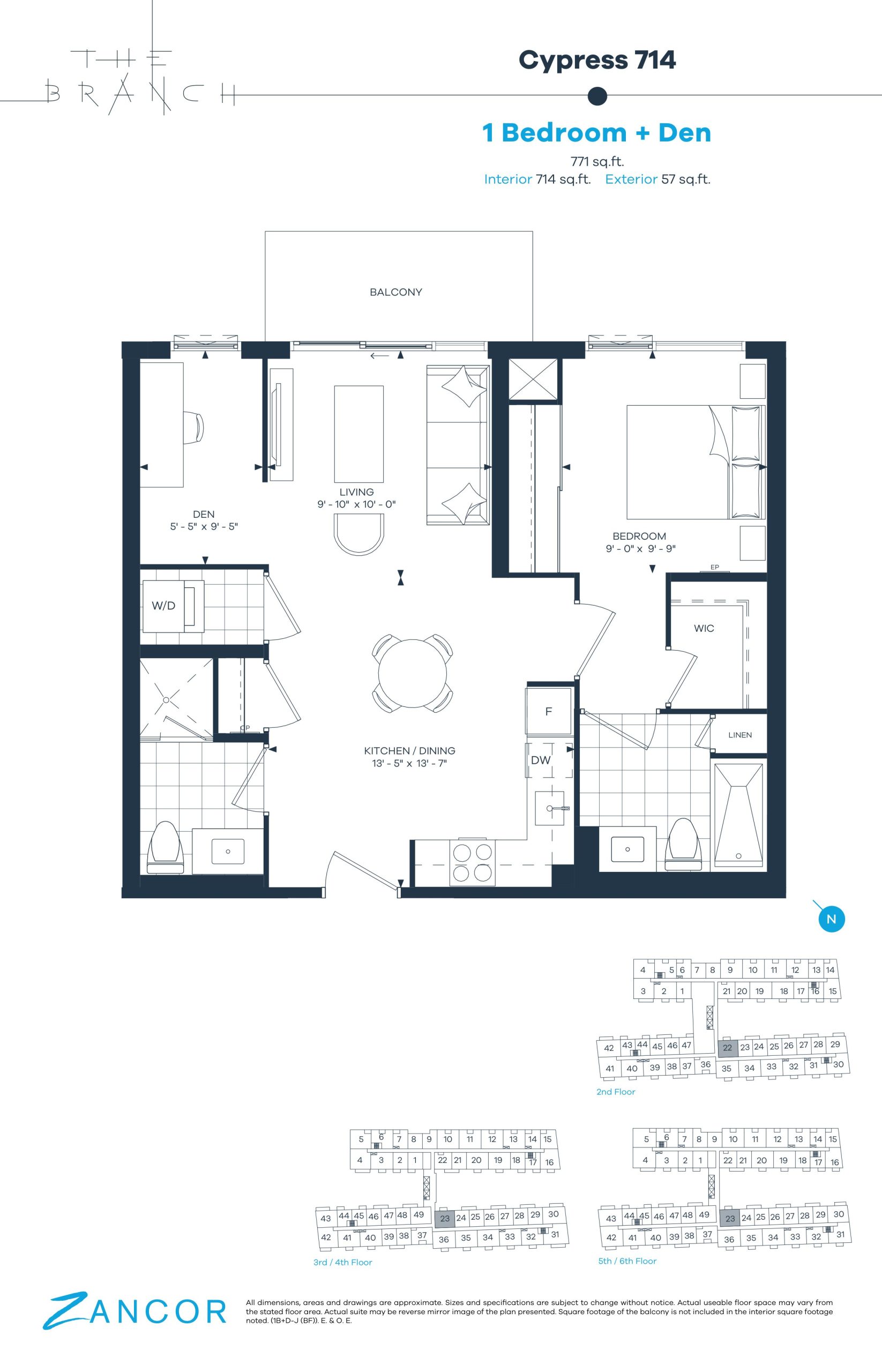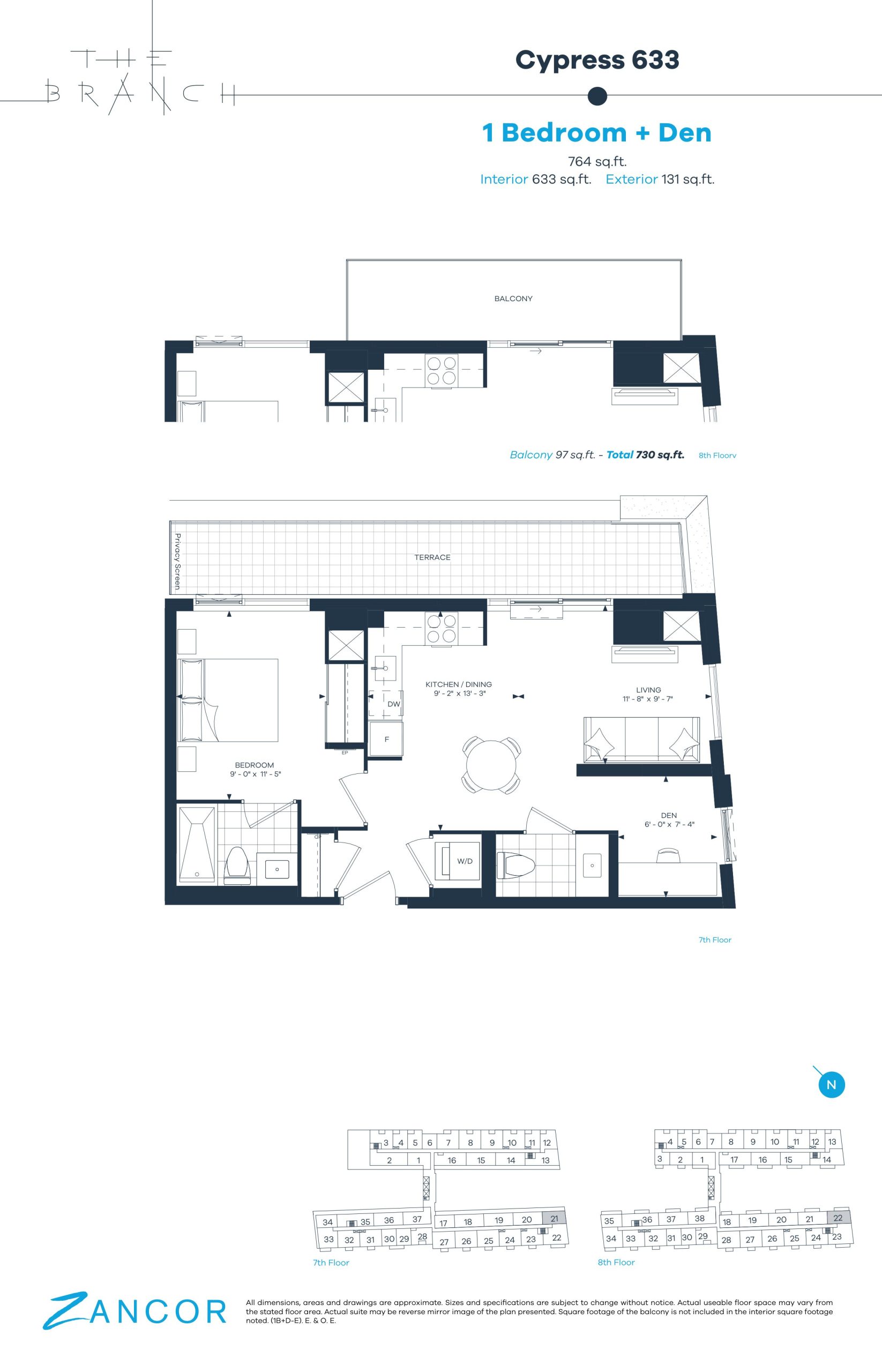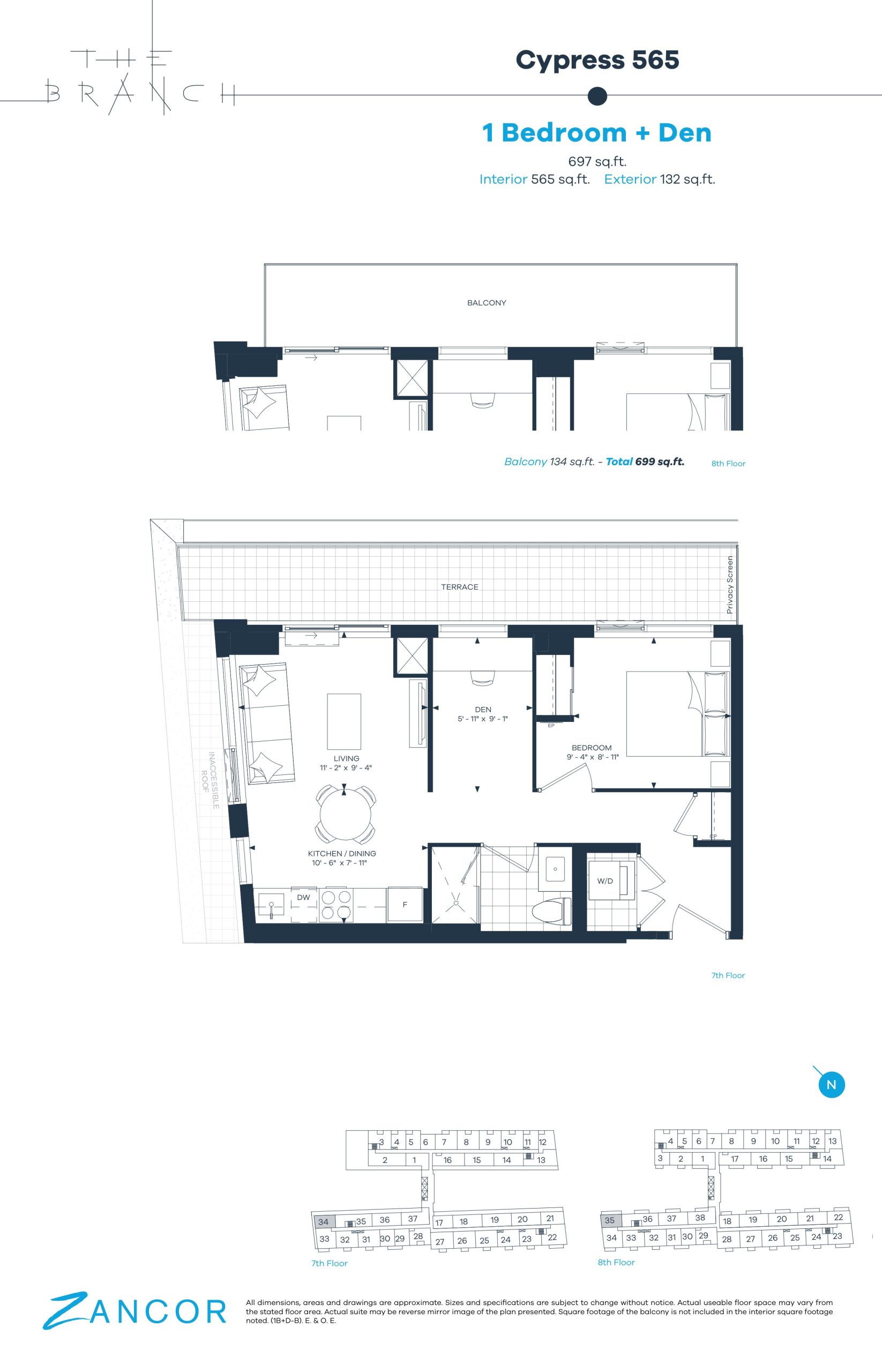 - 1 Bed + Den Change from Launch