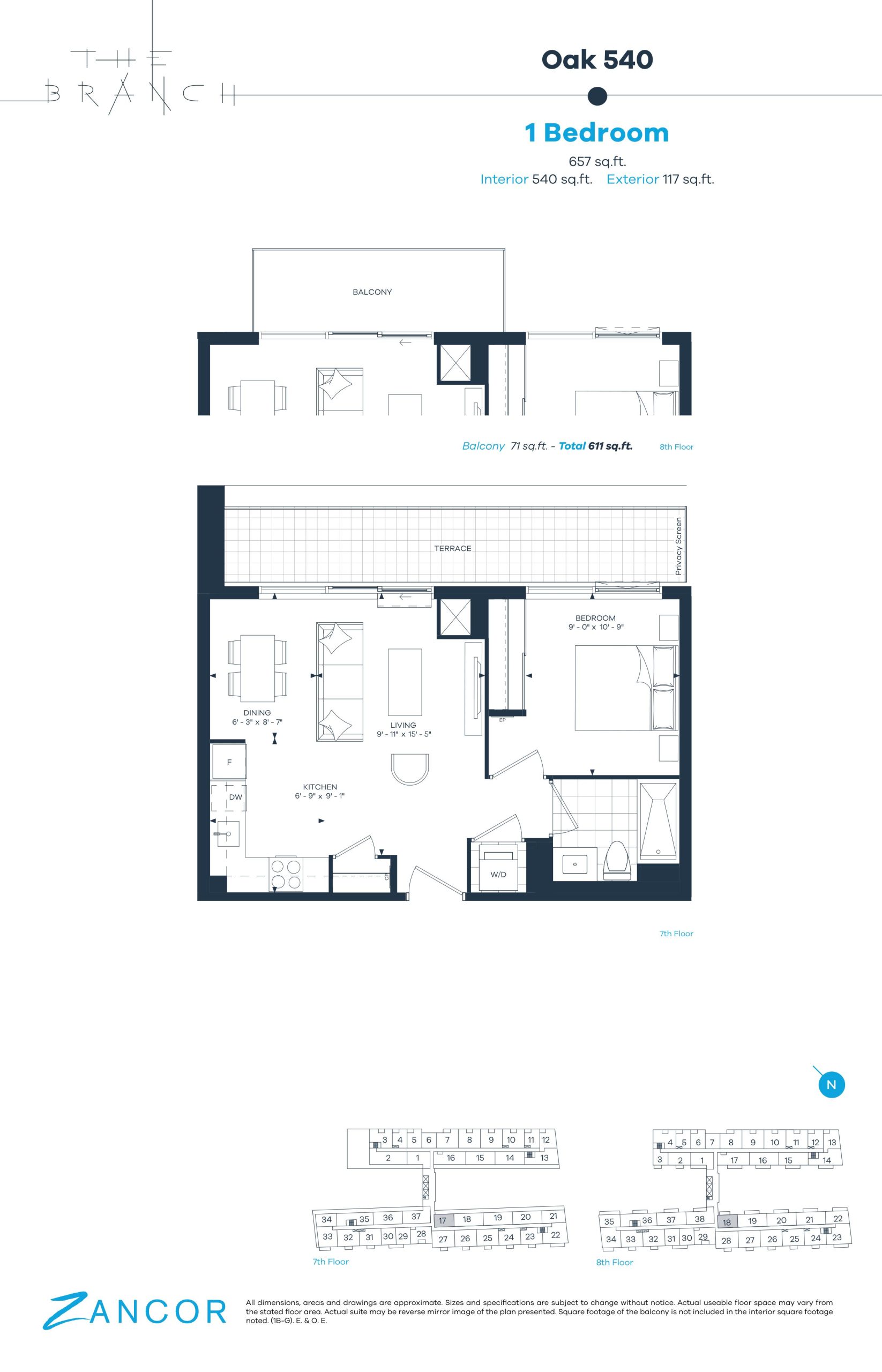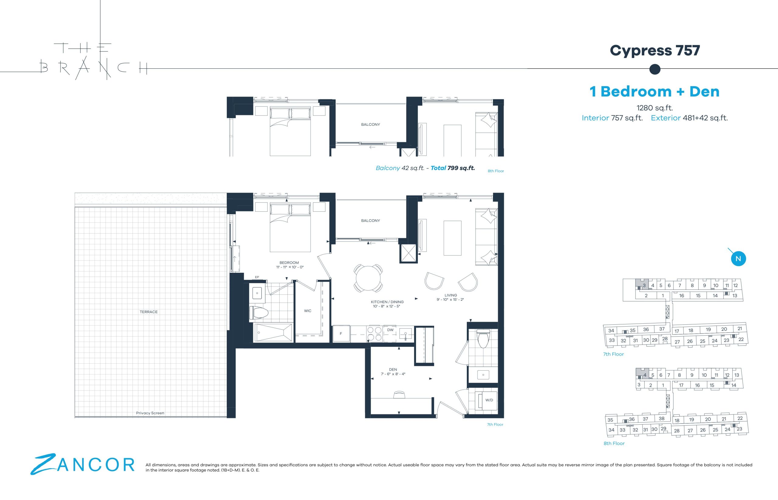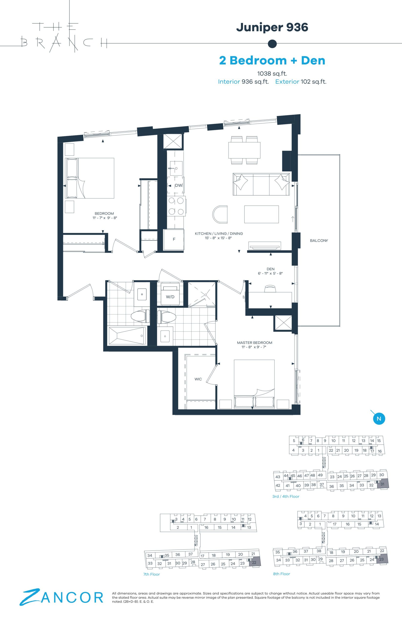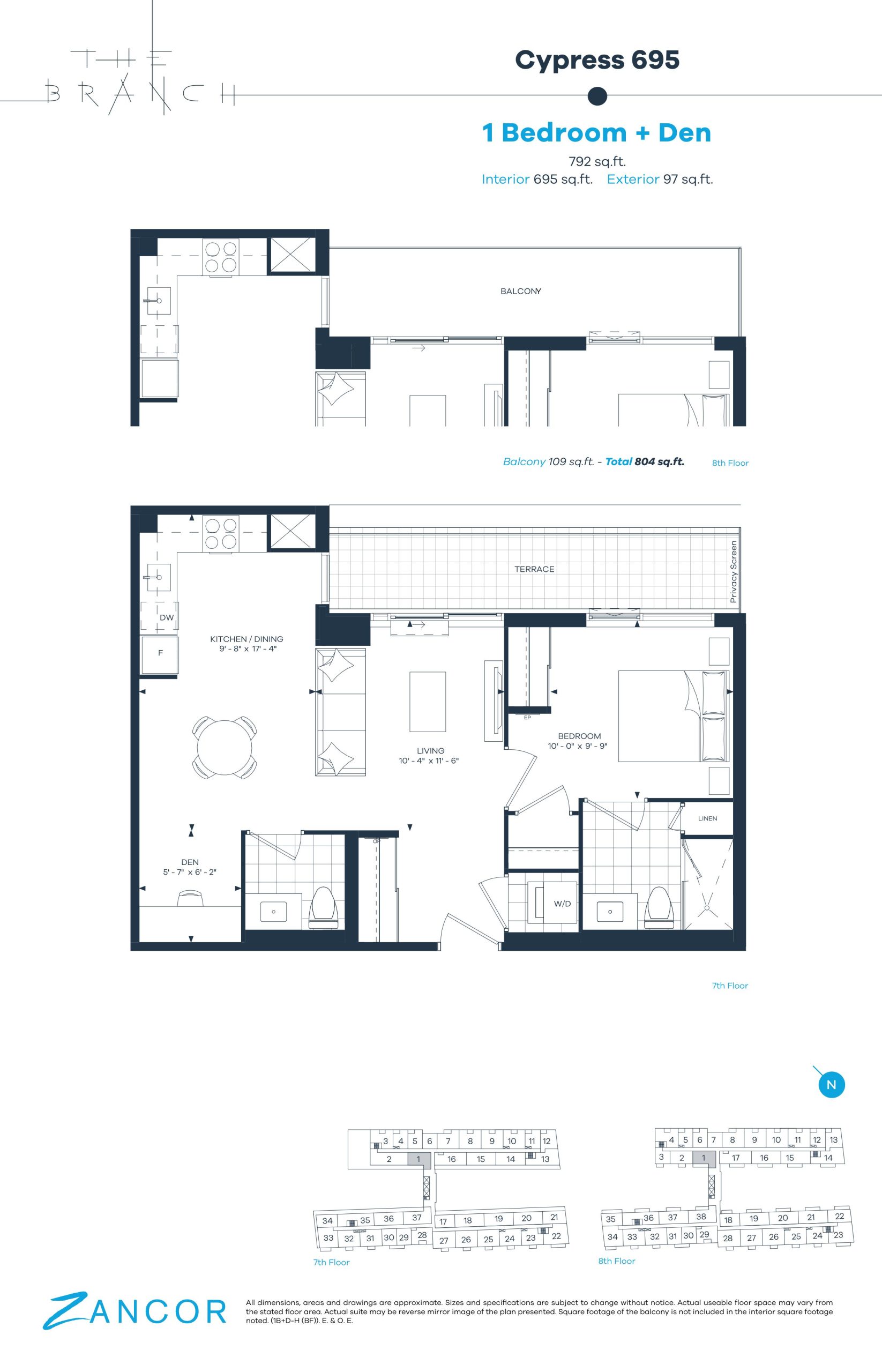 - 1 Bed + Den Change from Launch