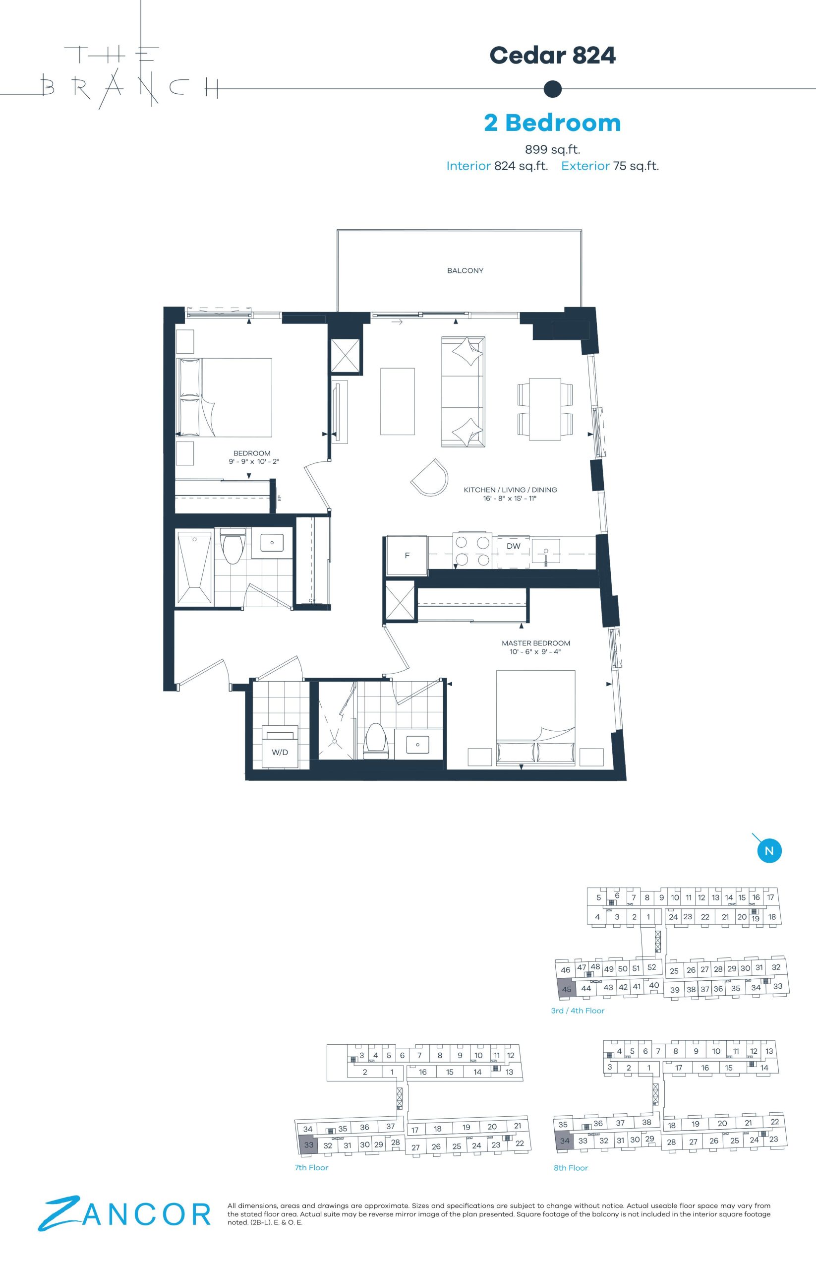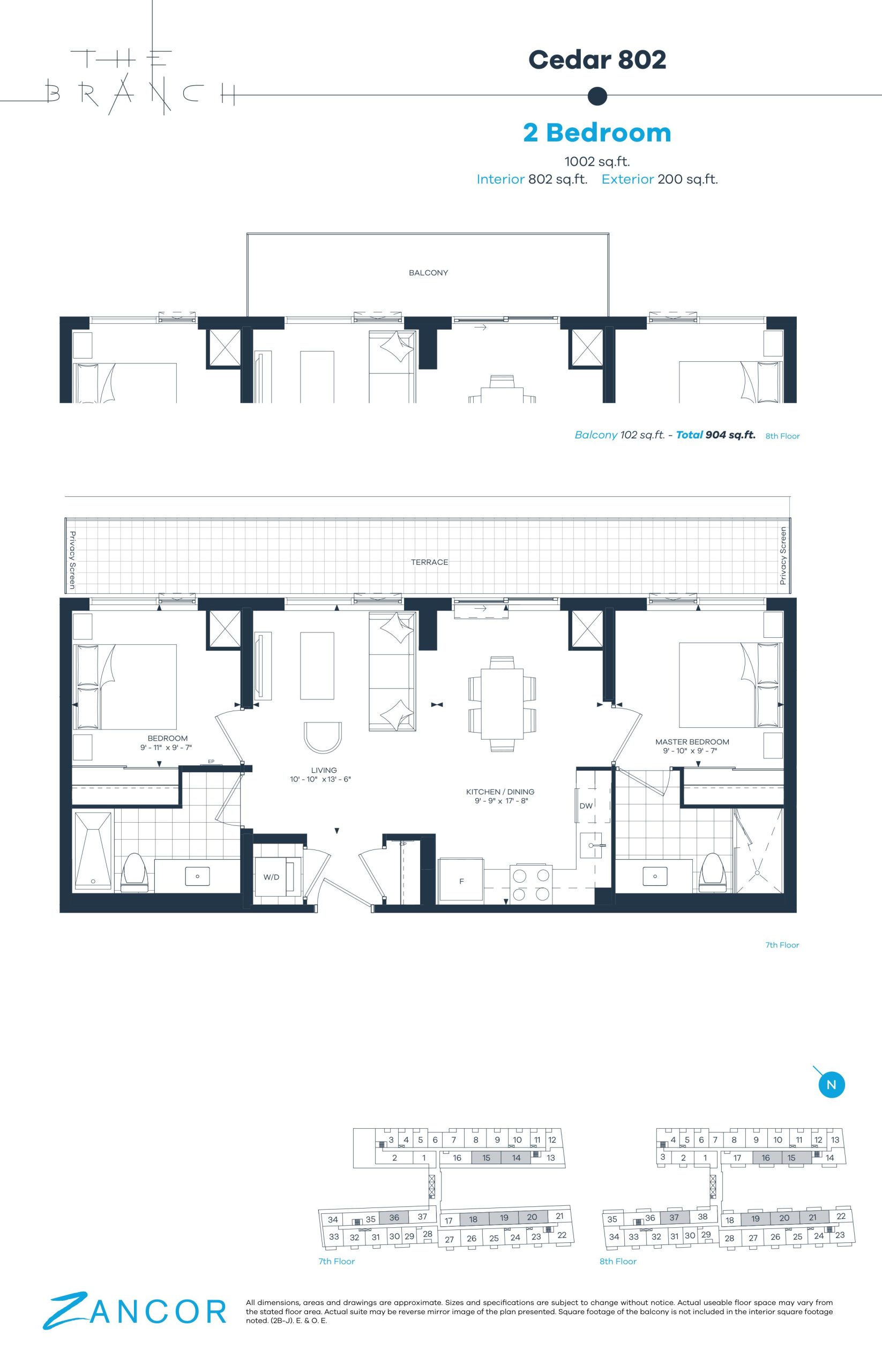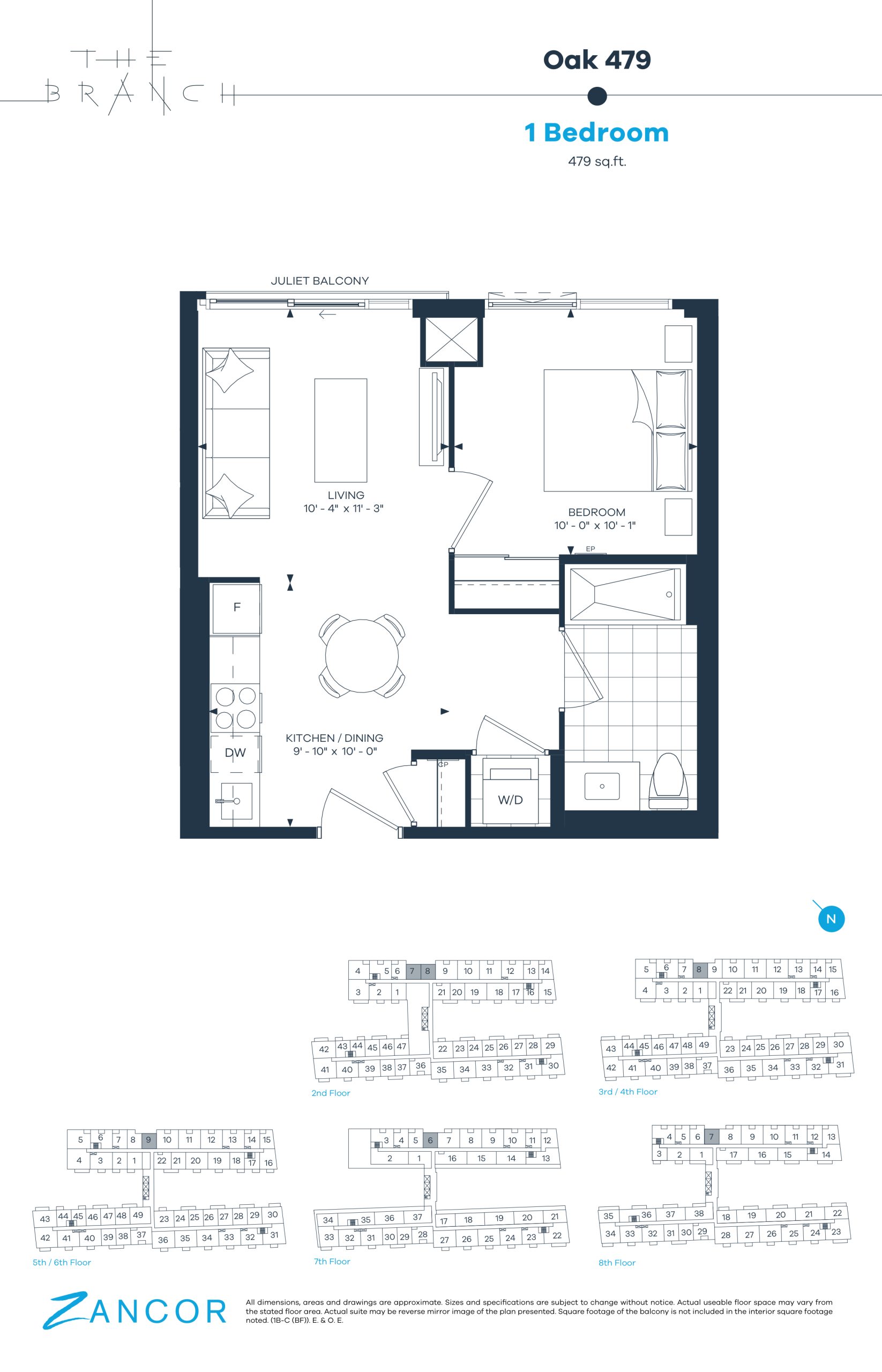 • 10' ceilings are featured exclusively on the 8th floor, as per plan.