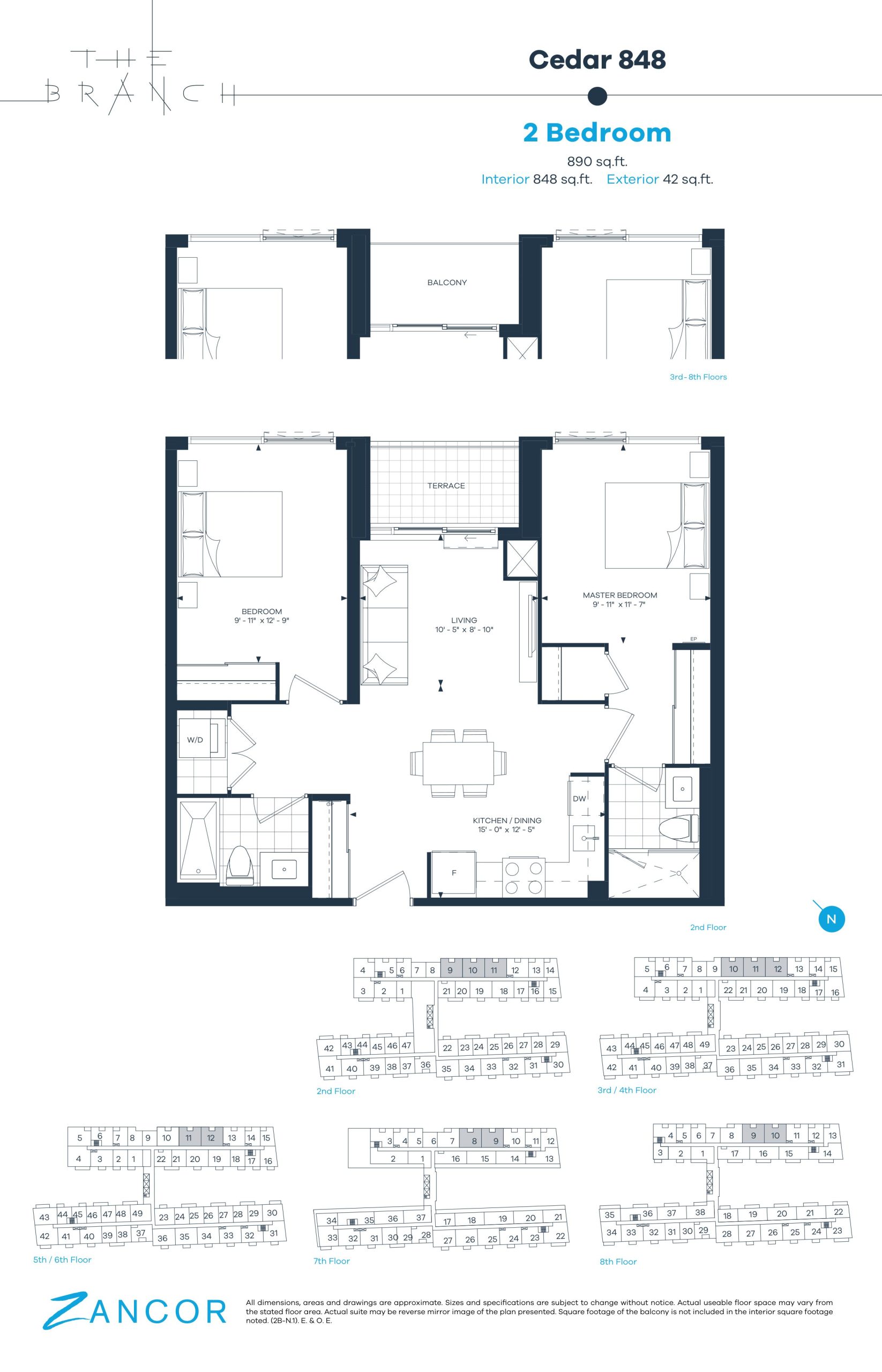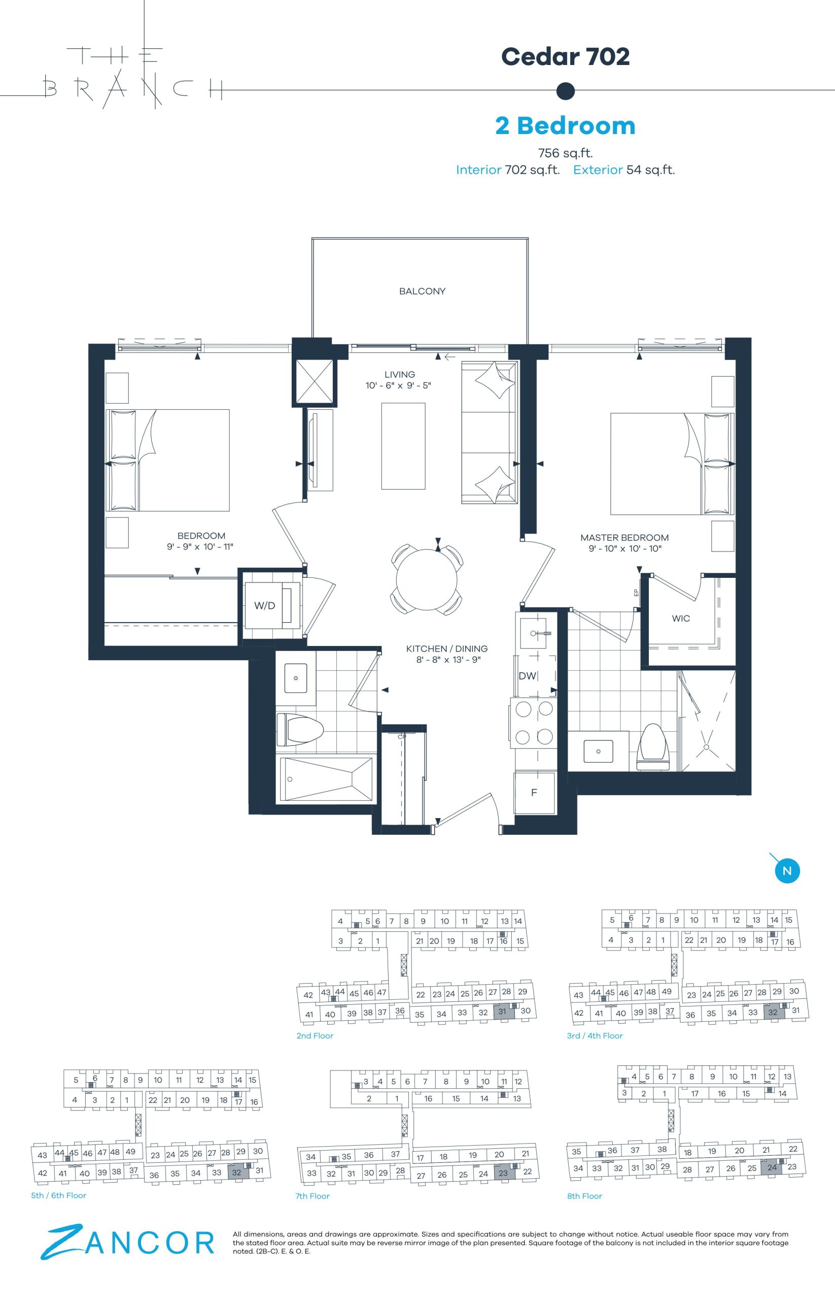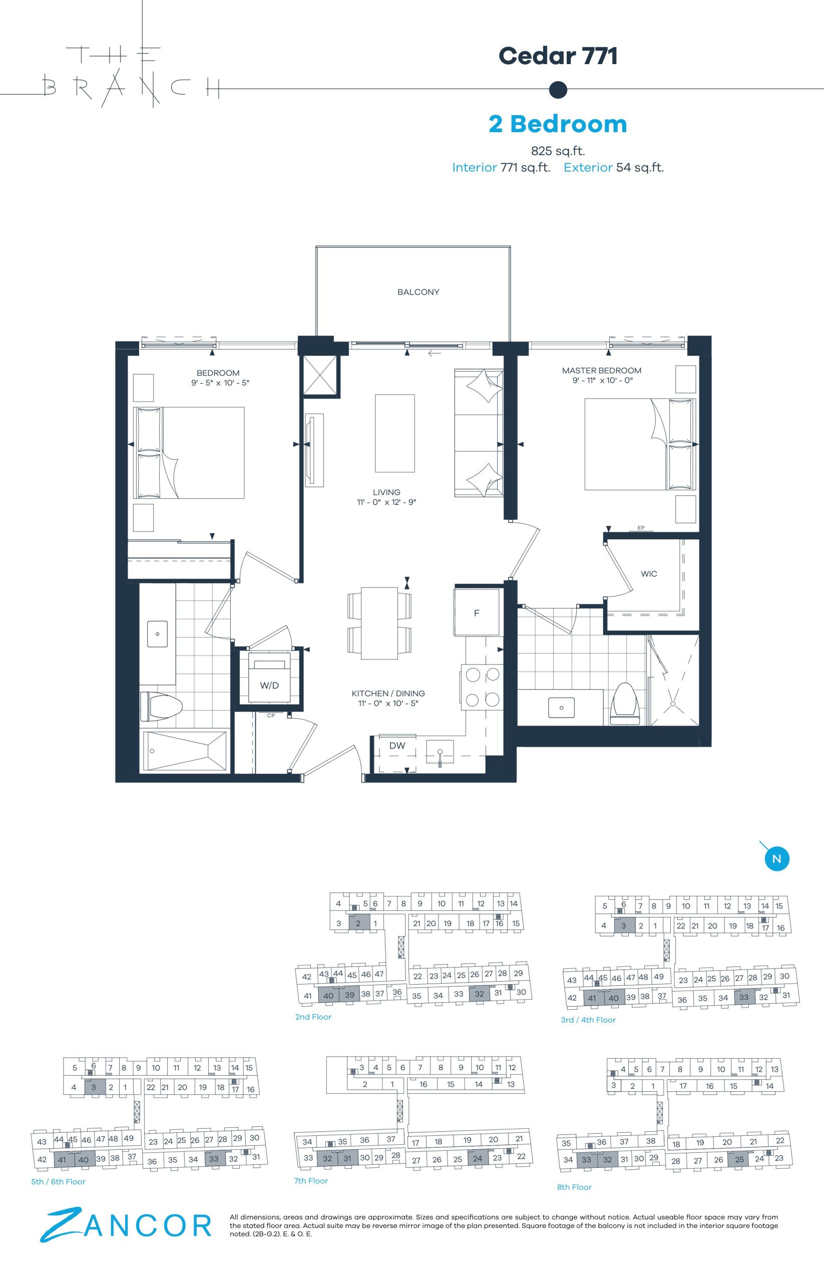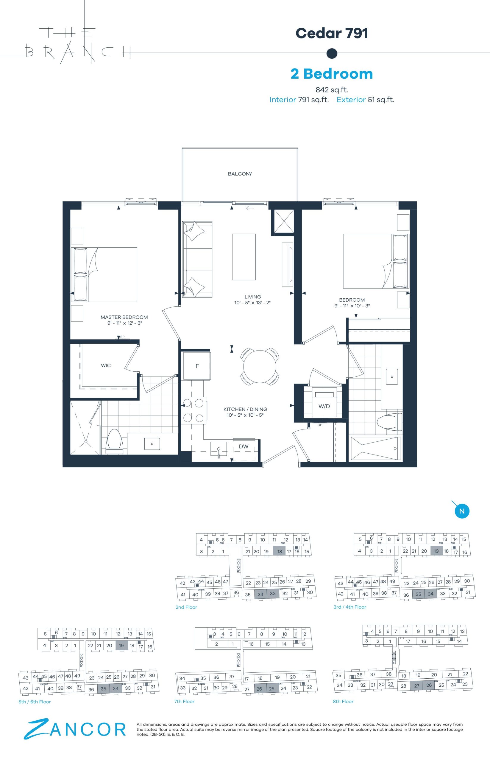 • 10' ceilings are featured exclusively on the 8th floor, as per plan.