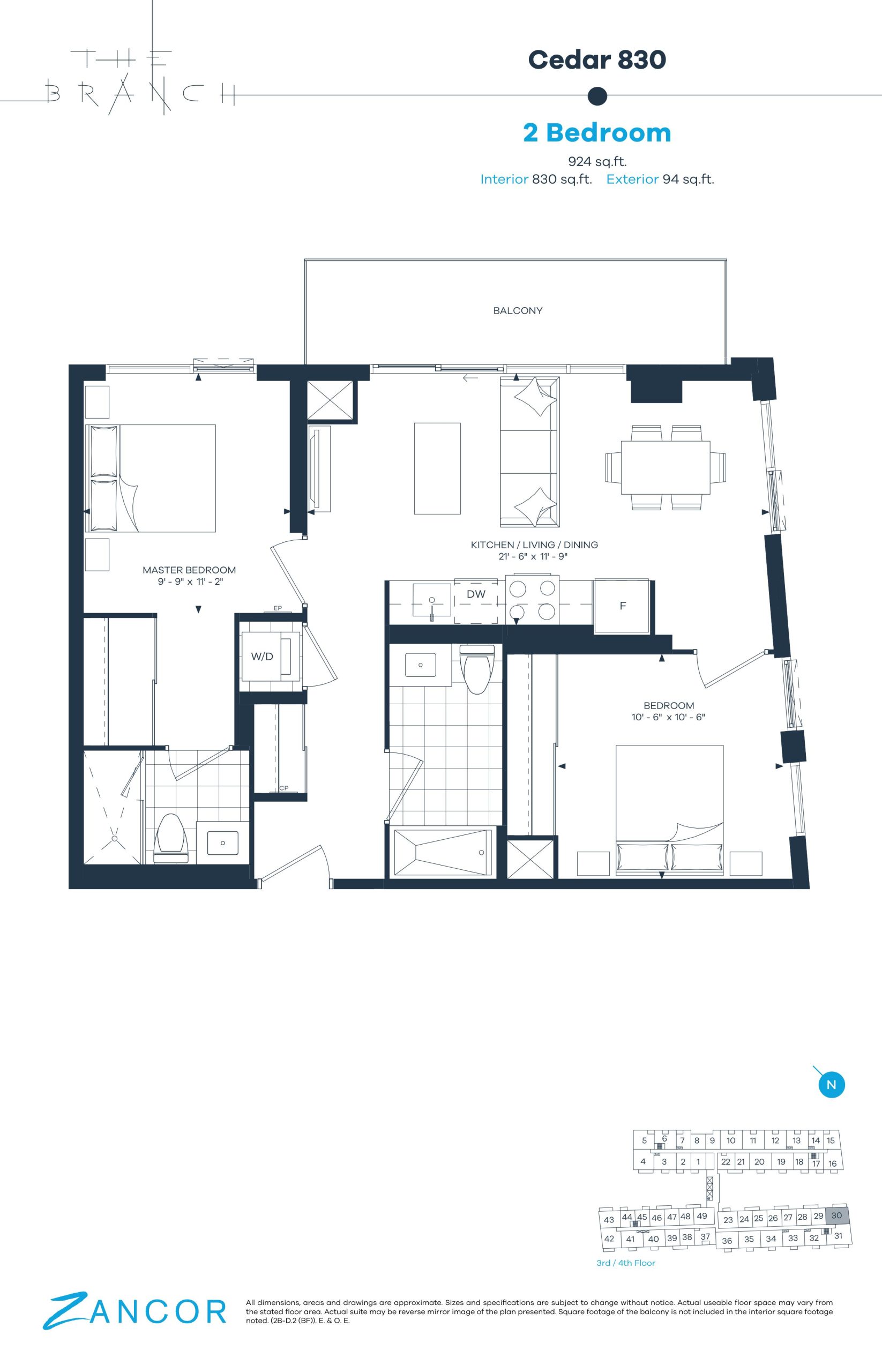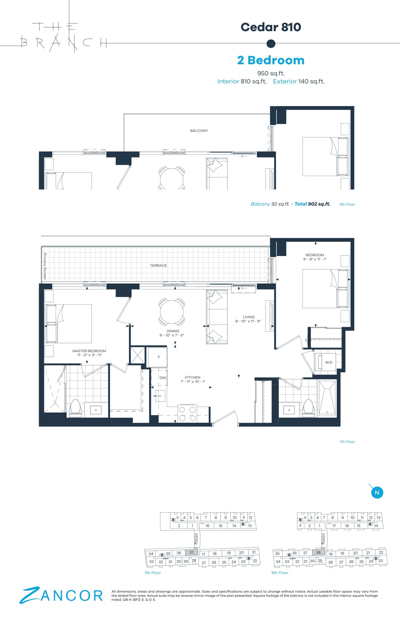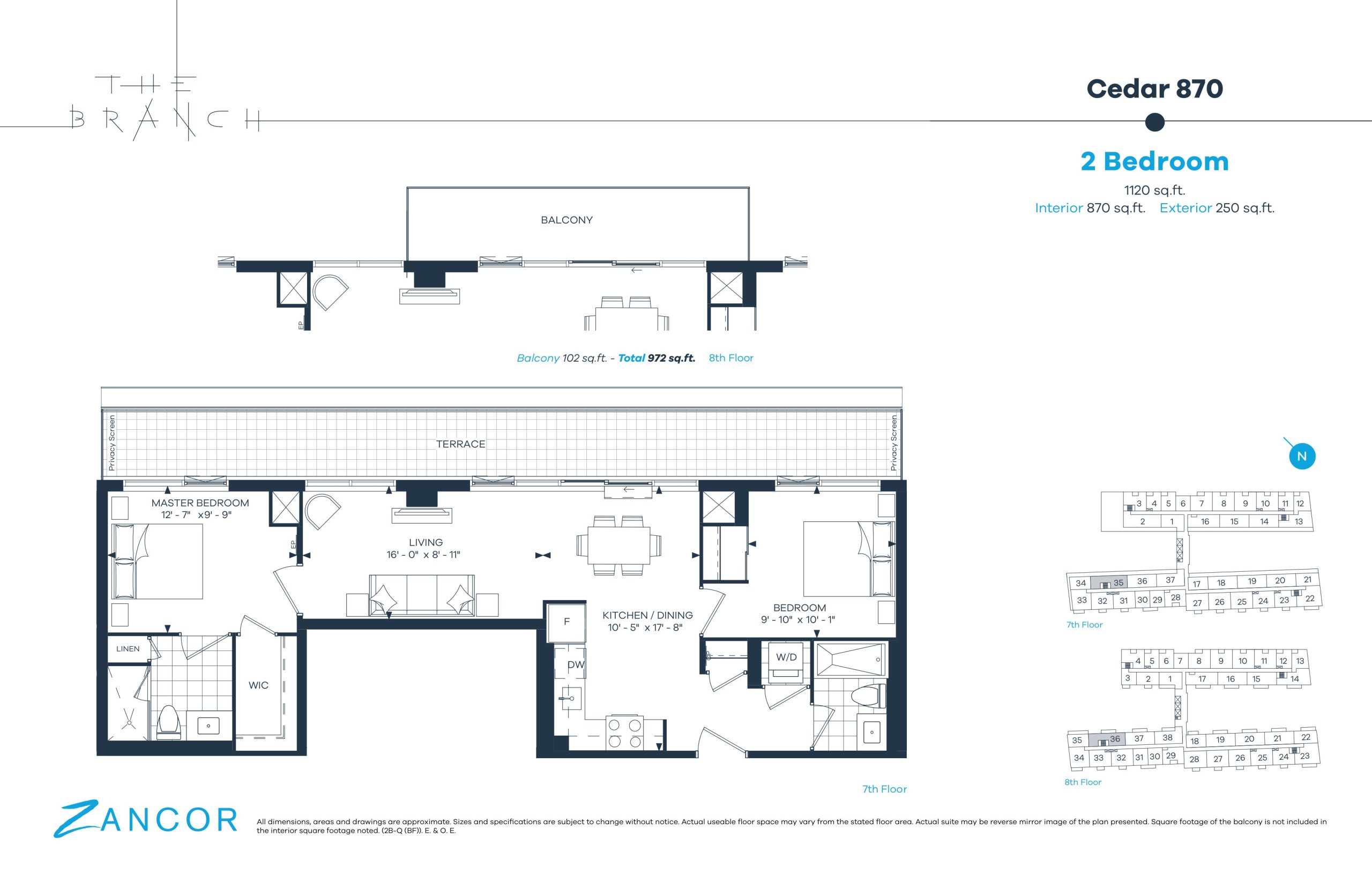 • Oversized, premium balcony and/or terrace with sliding glass door, overlooking landscaped walks or courtyard, as per plan.