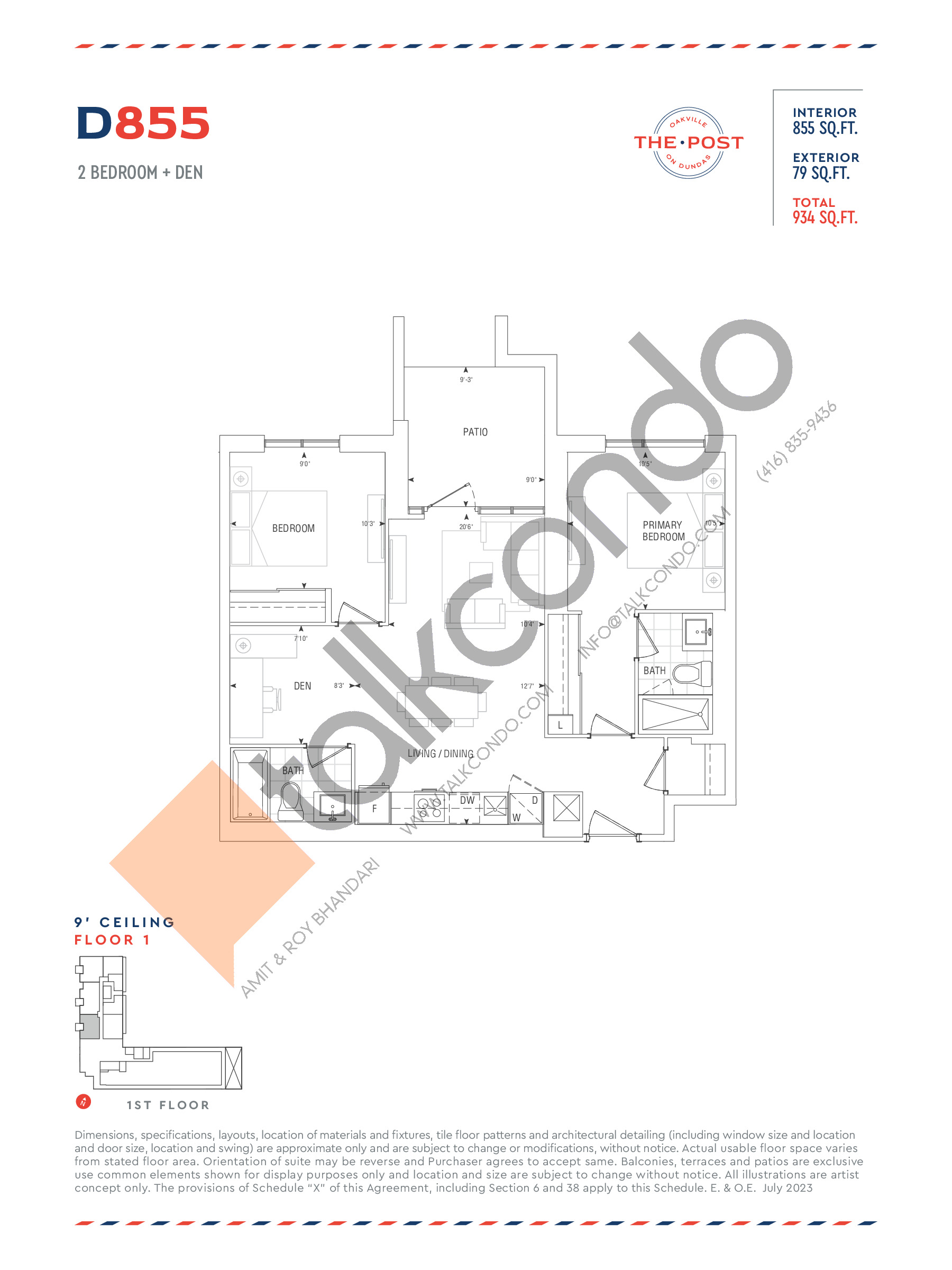 Interior Size: 855 sq.ft.
