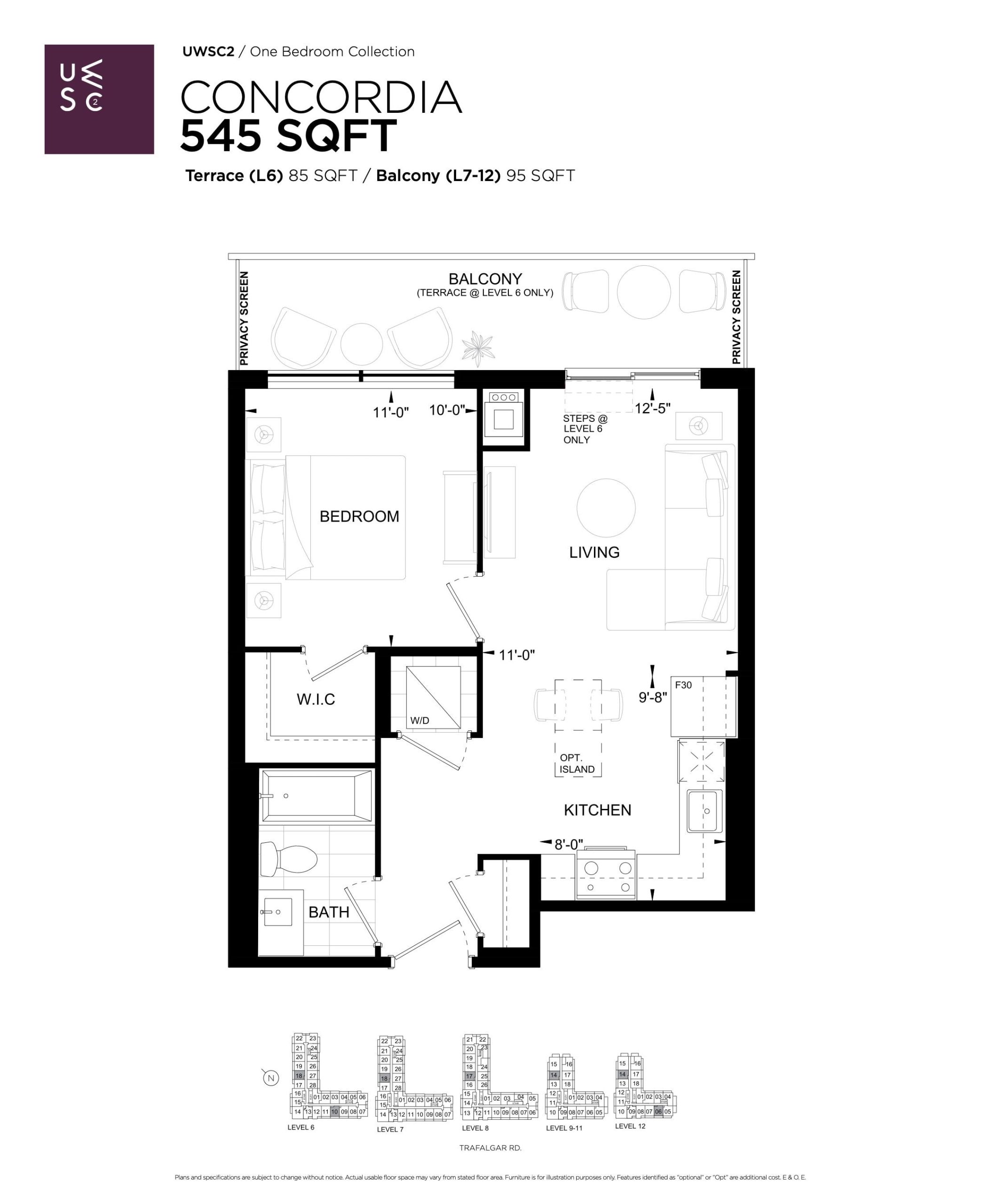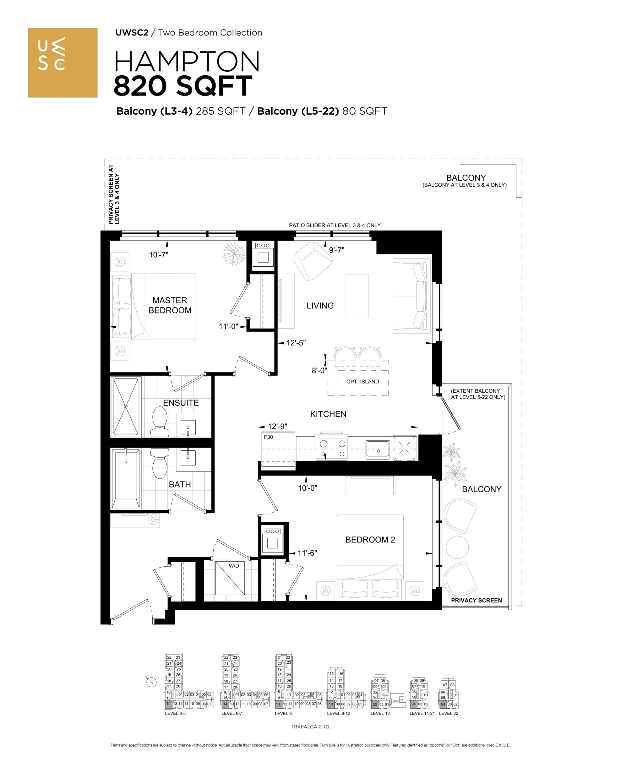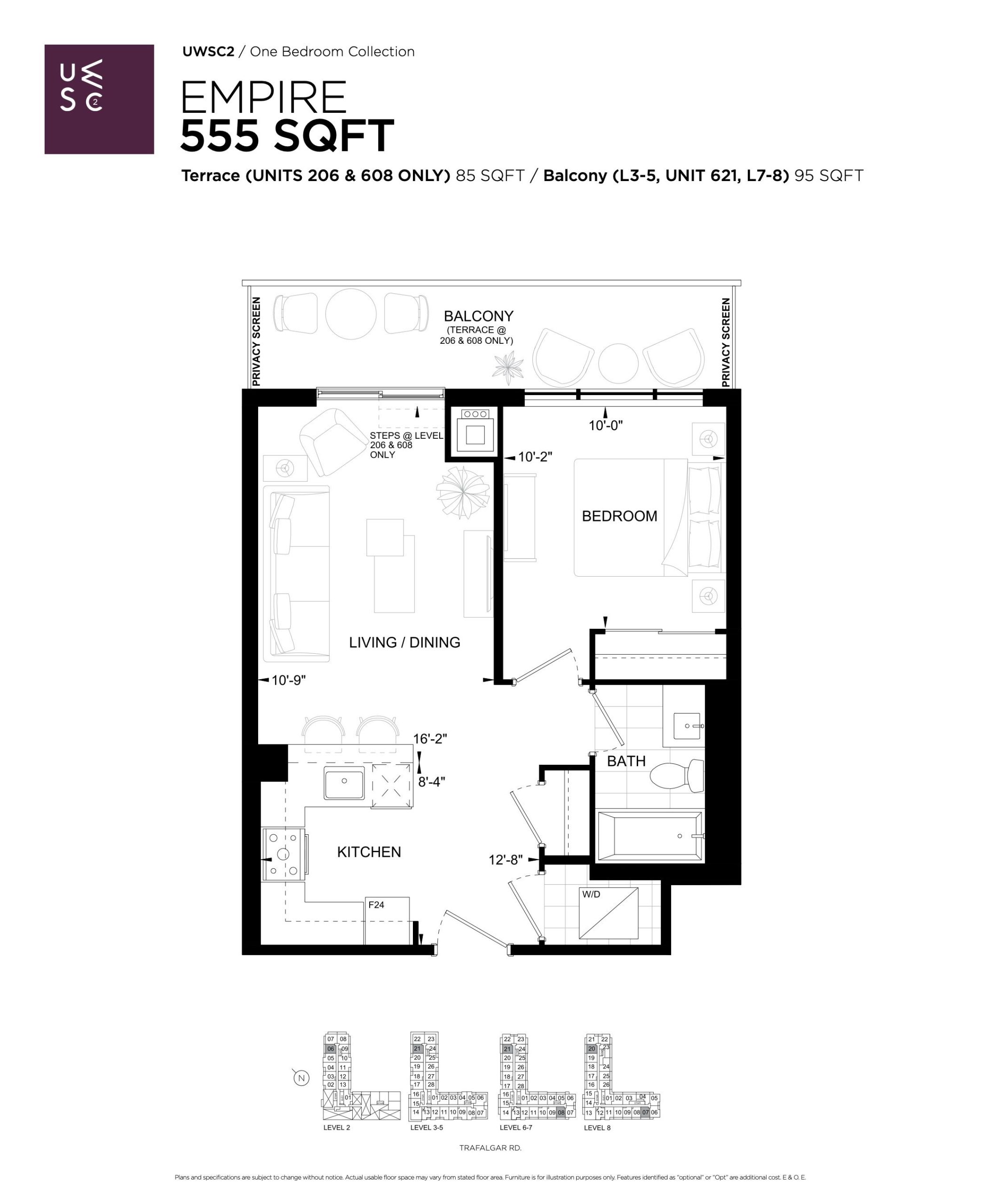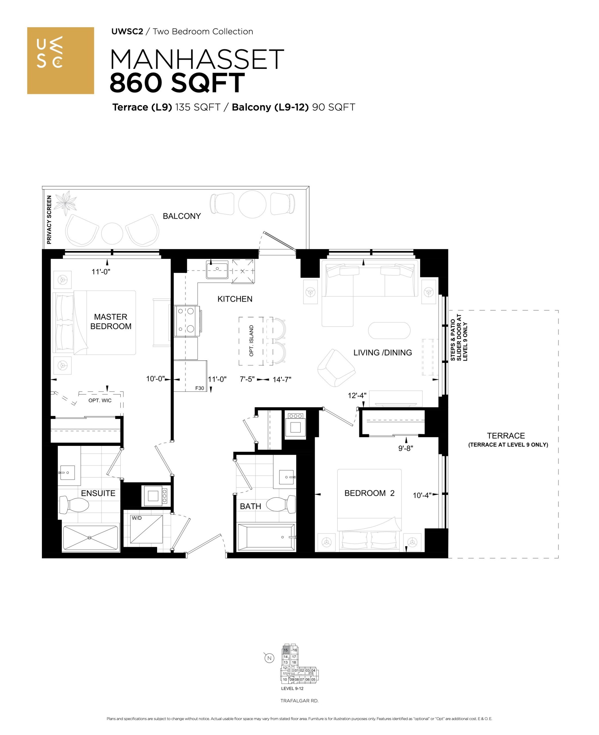 • Patio, balcony and terrace access via sliding patio door or swing door, as per plan. Step within suite may be required, as per plan.