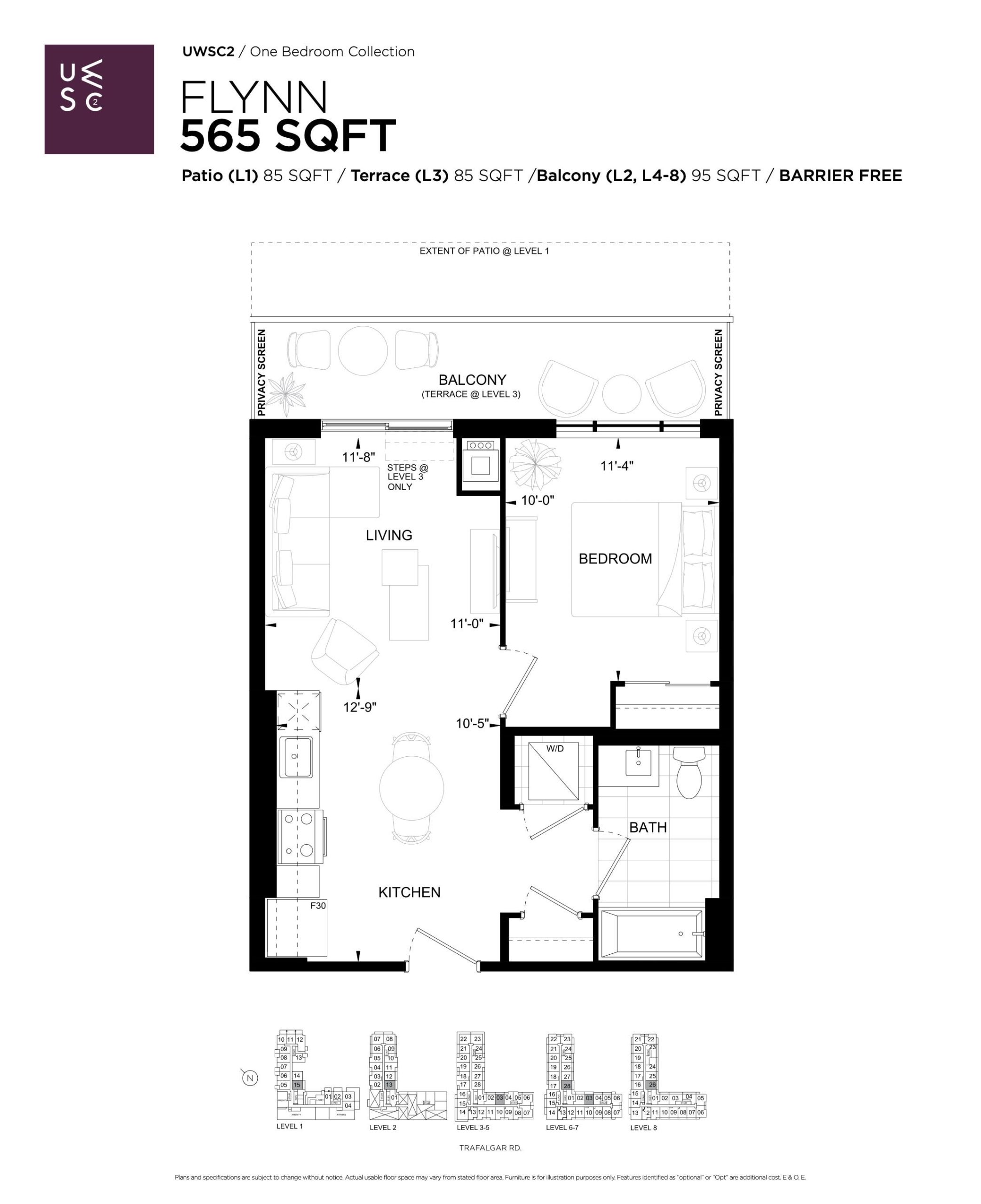 • Barrier-free path of travel from the suite entrance to the Kitchen, Living Area, one Bedroom and one Bathroom.