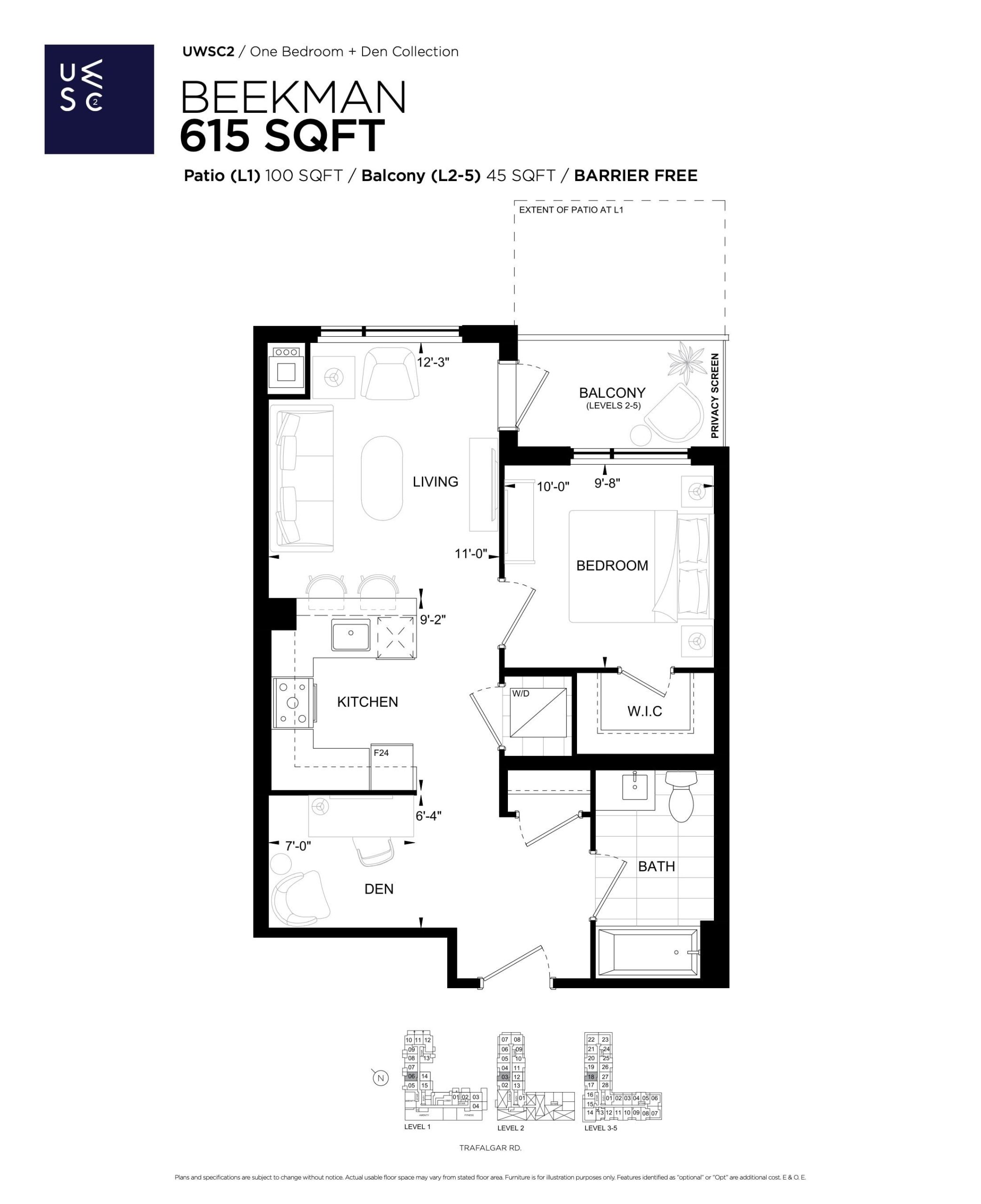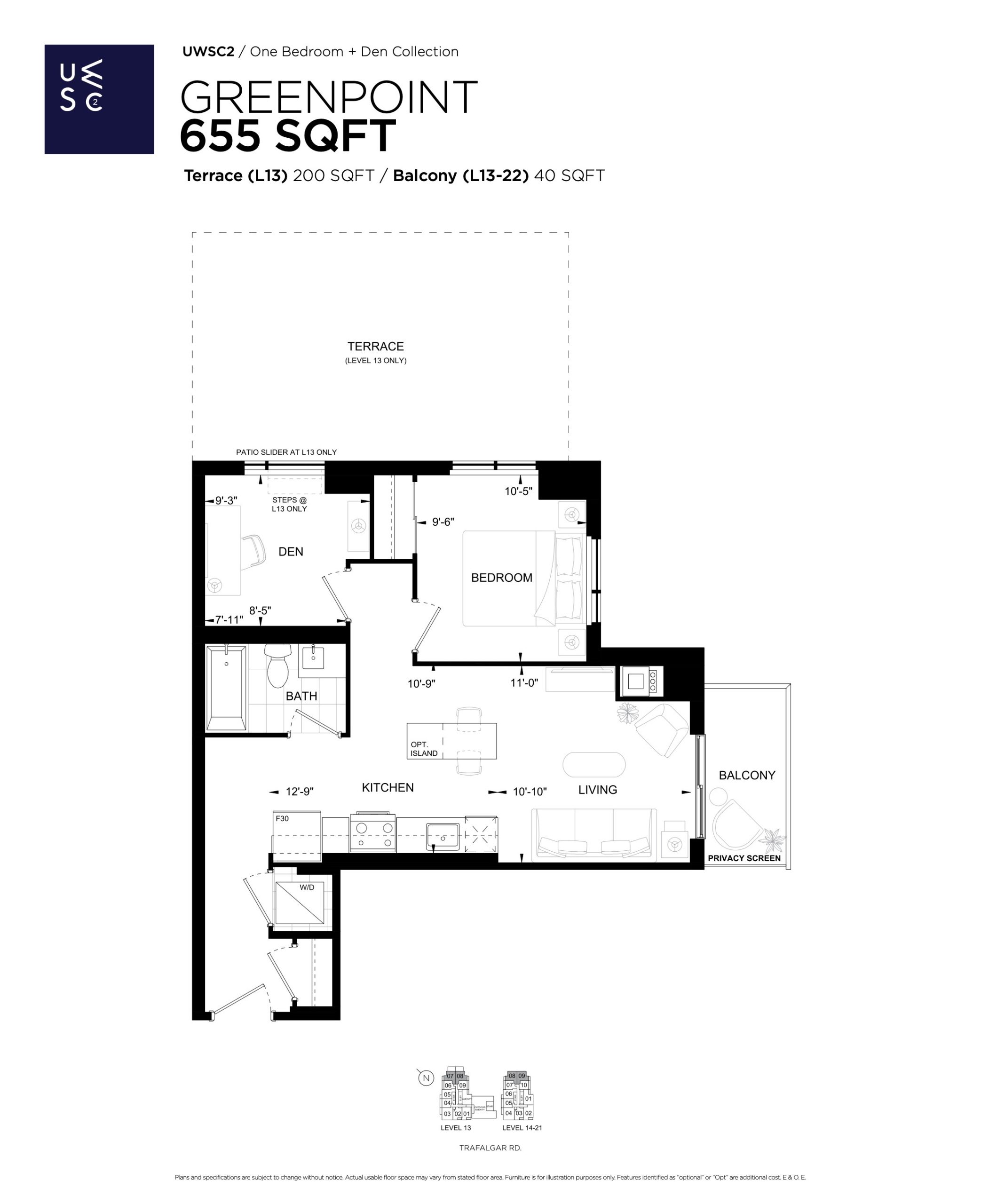 - 1 Bed + Den Change from Launch