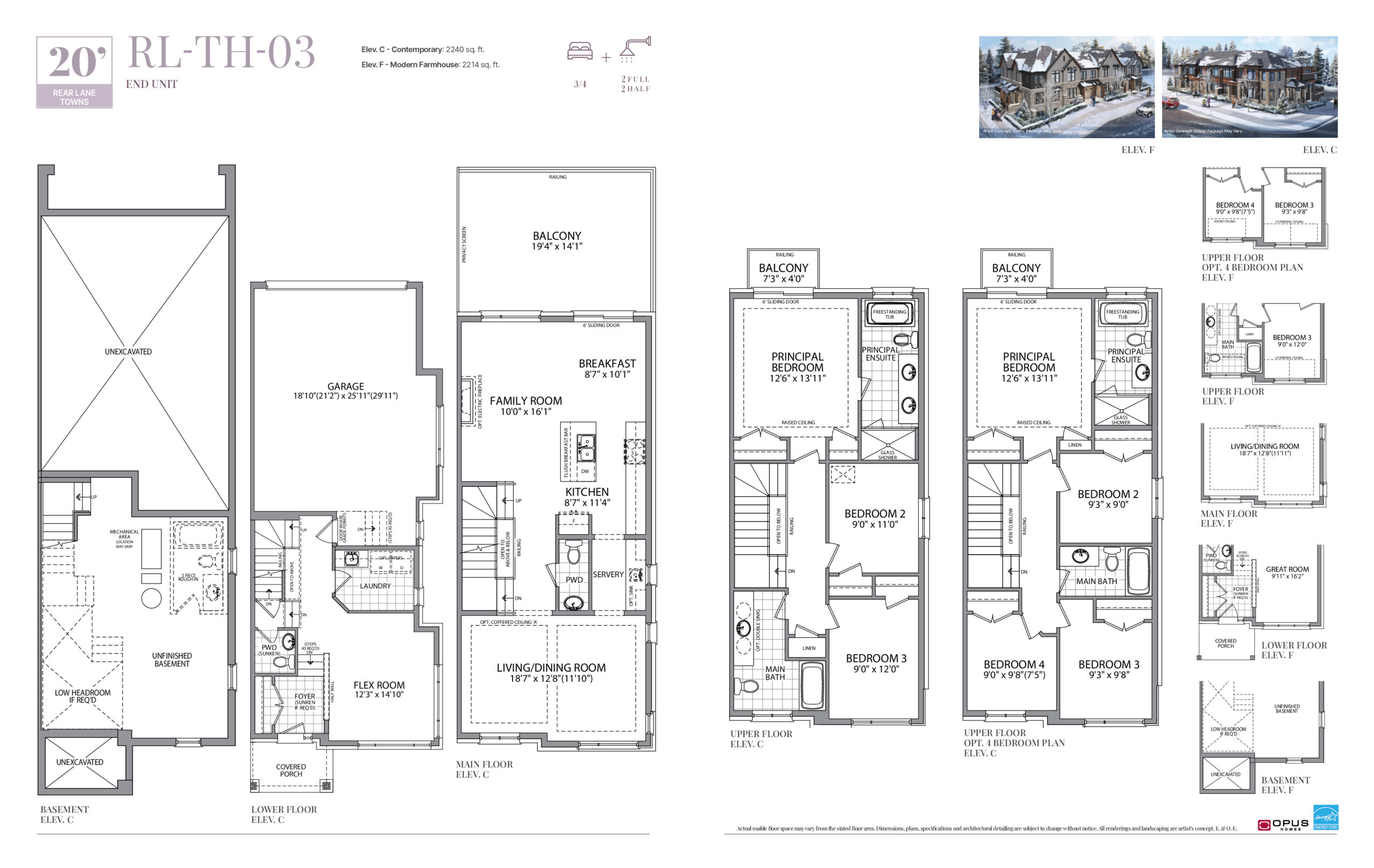 RL-TH-03 Floor Plan at Greenwood Seaton Towns by OPUS Homes - 2240 sq.ft