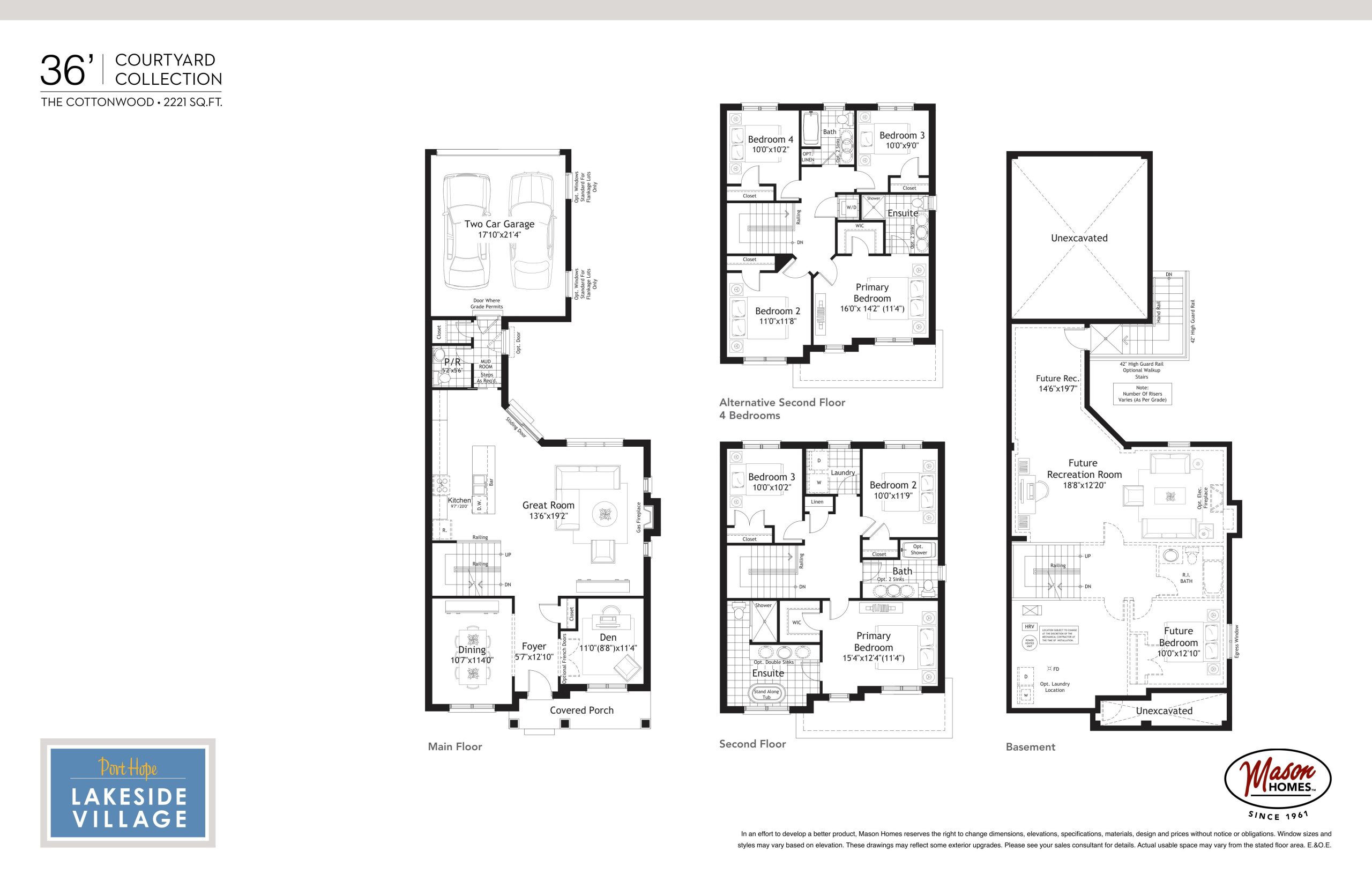 Port Hope Lakeside Village is a new condominium development by Mason Homes currently under construction located at 415 Lakeshore Road, Port Hope in the neighbourhood with a 9/100 walk score and a /100 transit score. The project has a total of 534 suites ranging from 1625 sq.ft to 3235 sq.ft. Suites are priced from $839,900 to $1,159,900.