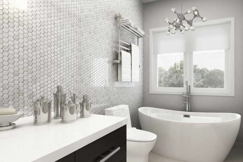 31. Ceramic wall tiles in bathtub enclosure, as per plan. Bathrooms with separate shower stall have tiles around the tub and tiles to ceiling in shower stall, as per plan.