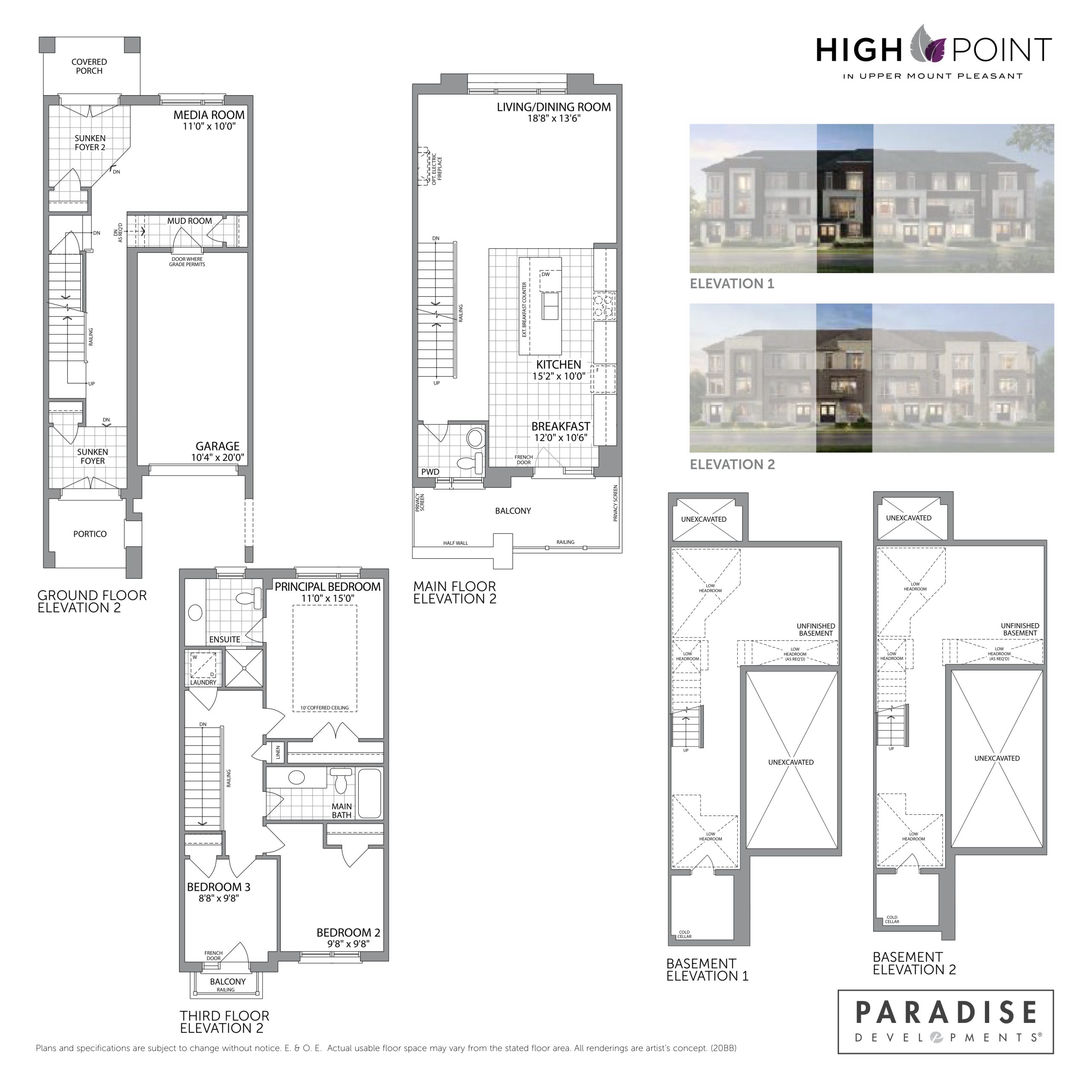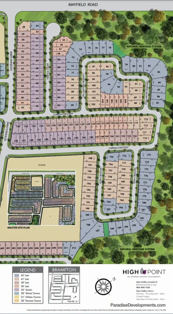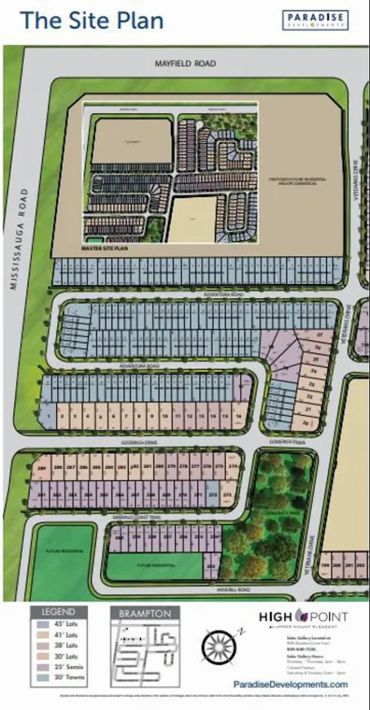 High Point in Upper Mount Pleasant is a new condominium development by Paradise Developments currently under construction located at Mississauga Road & Mayfield Road, in the neighbourhood with a 5/100 walk score. Development is scheduled to be completed in 2026. ranging from 1900 sq.ft to 3600 sq.ft. Suites are priced from $799,990 to $1,514,990.