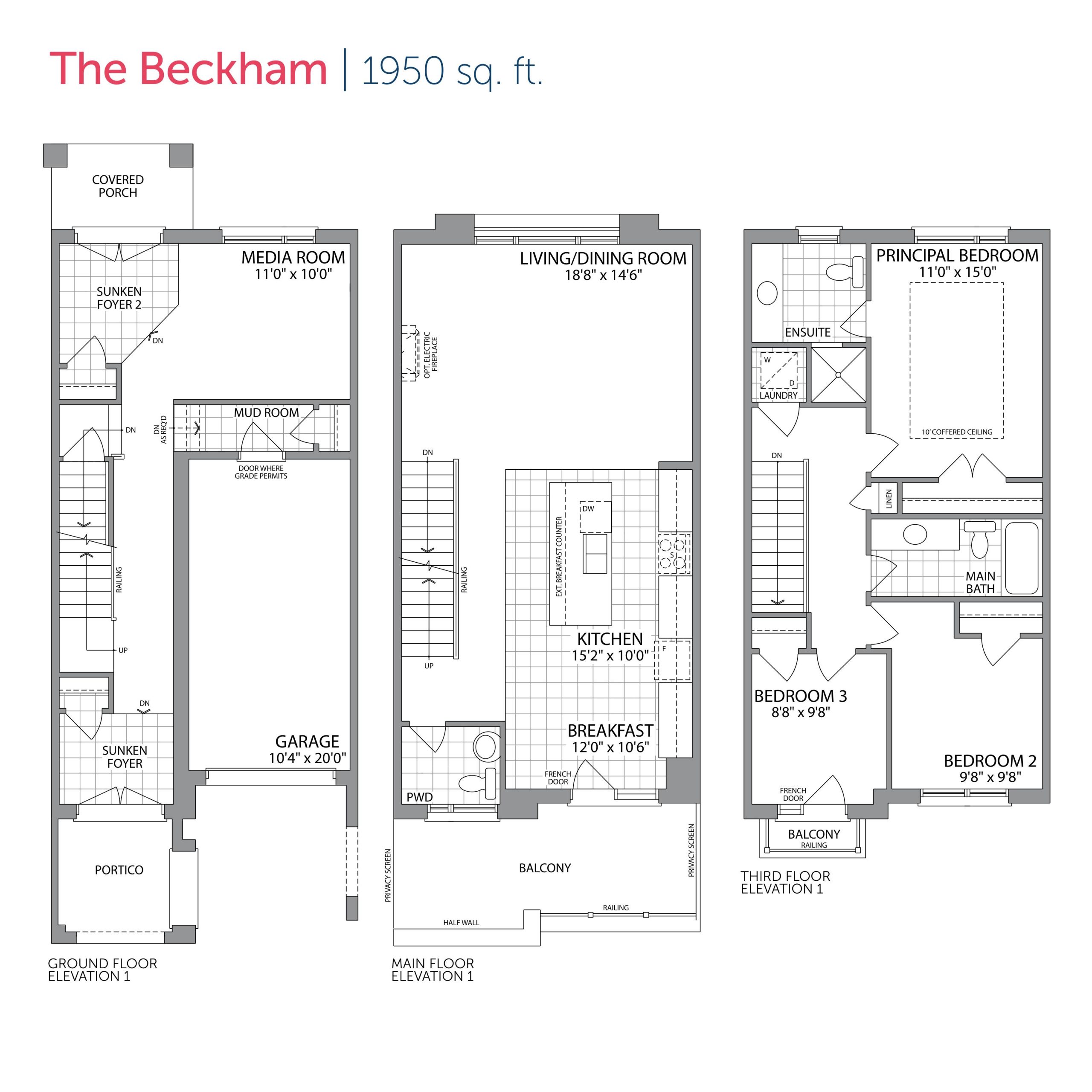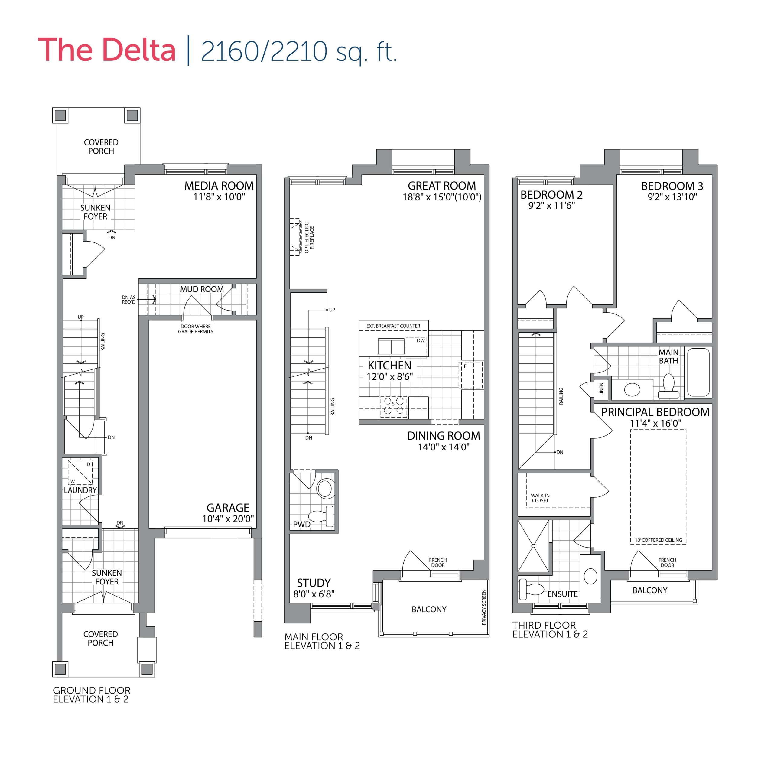 15. Three exterior electrical outlets; one in the garage and one weatherproof outlet at the front and rear and all accessible second floor balconies, as per plan.