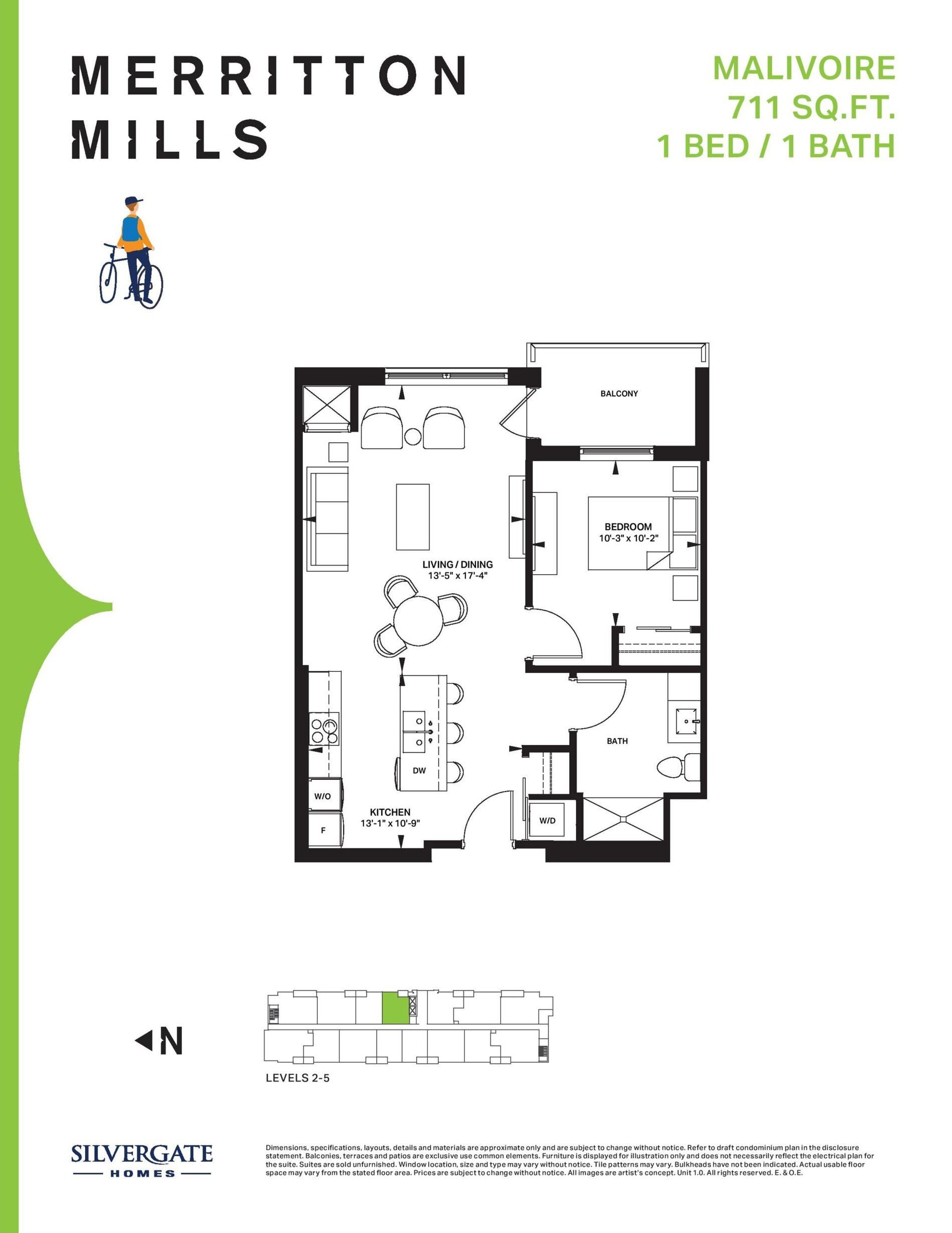 Malivoire Floor Plan at Merritton Mills Condos - 711 sq.ft
