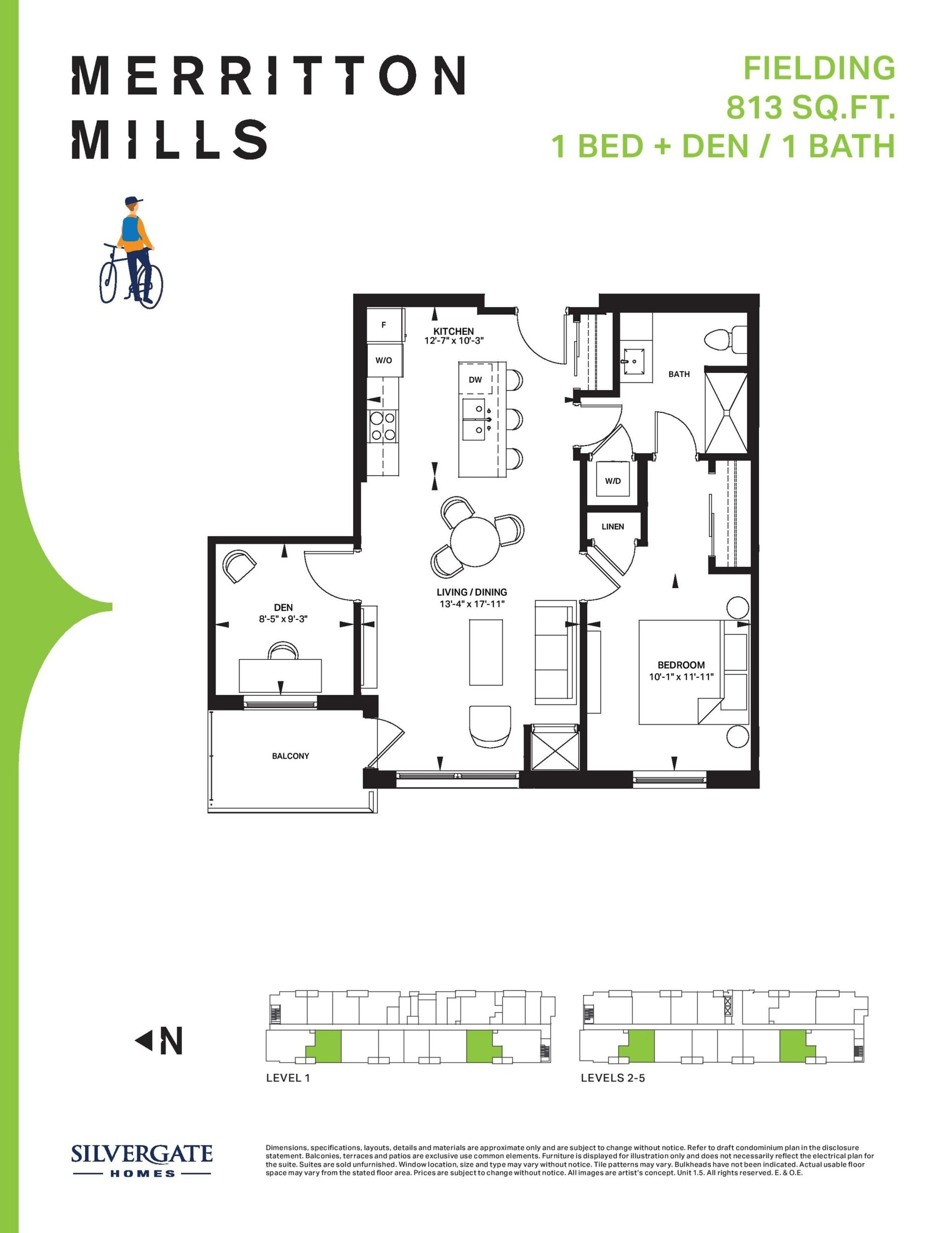 Fielding Floor Plan at Merritton Mills Condos - 813 sq.ft