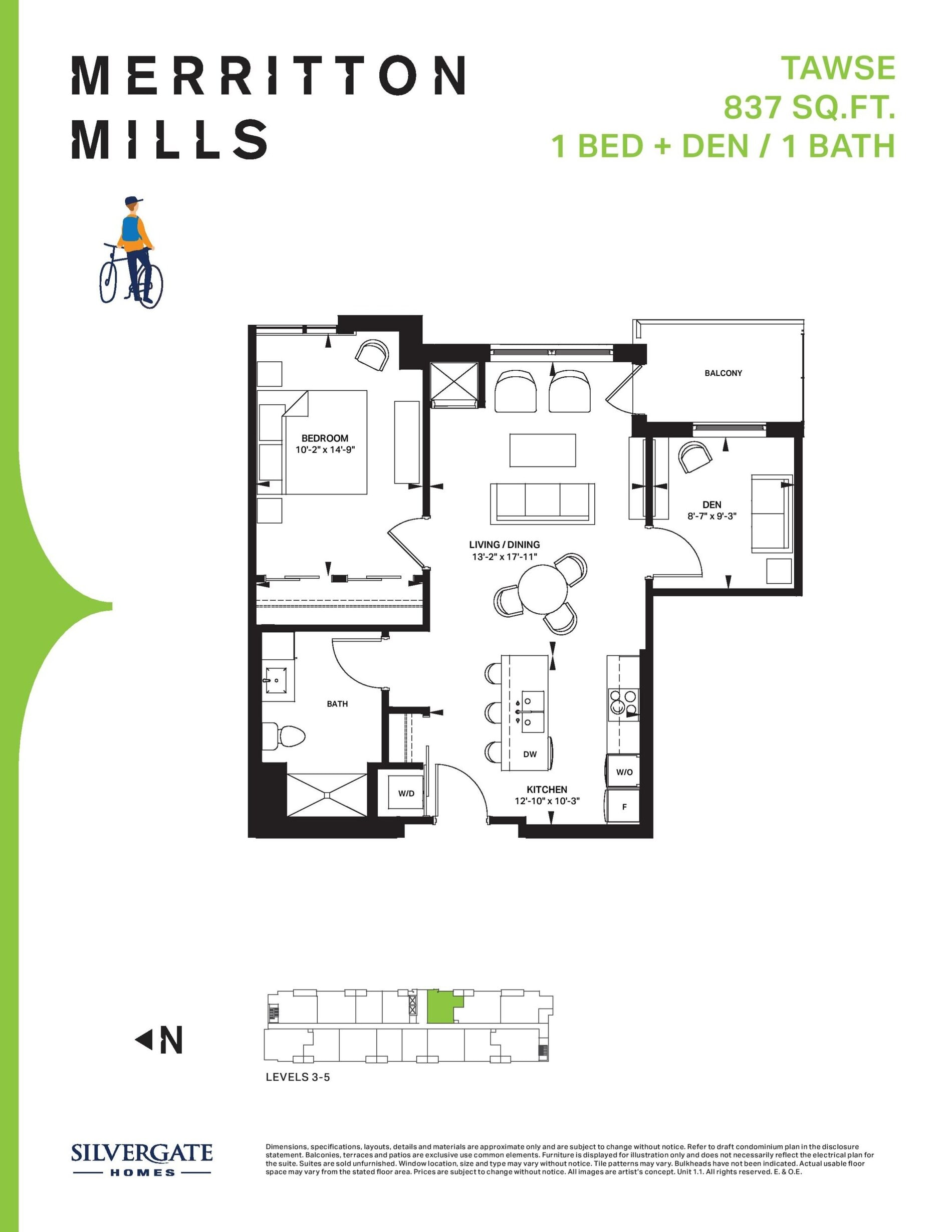 Tawse Floor Plan at Merritton Mills Condos - 837 sq.ft