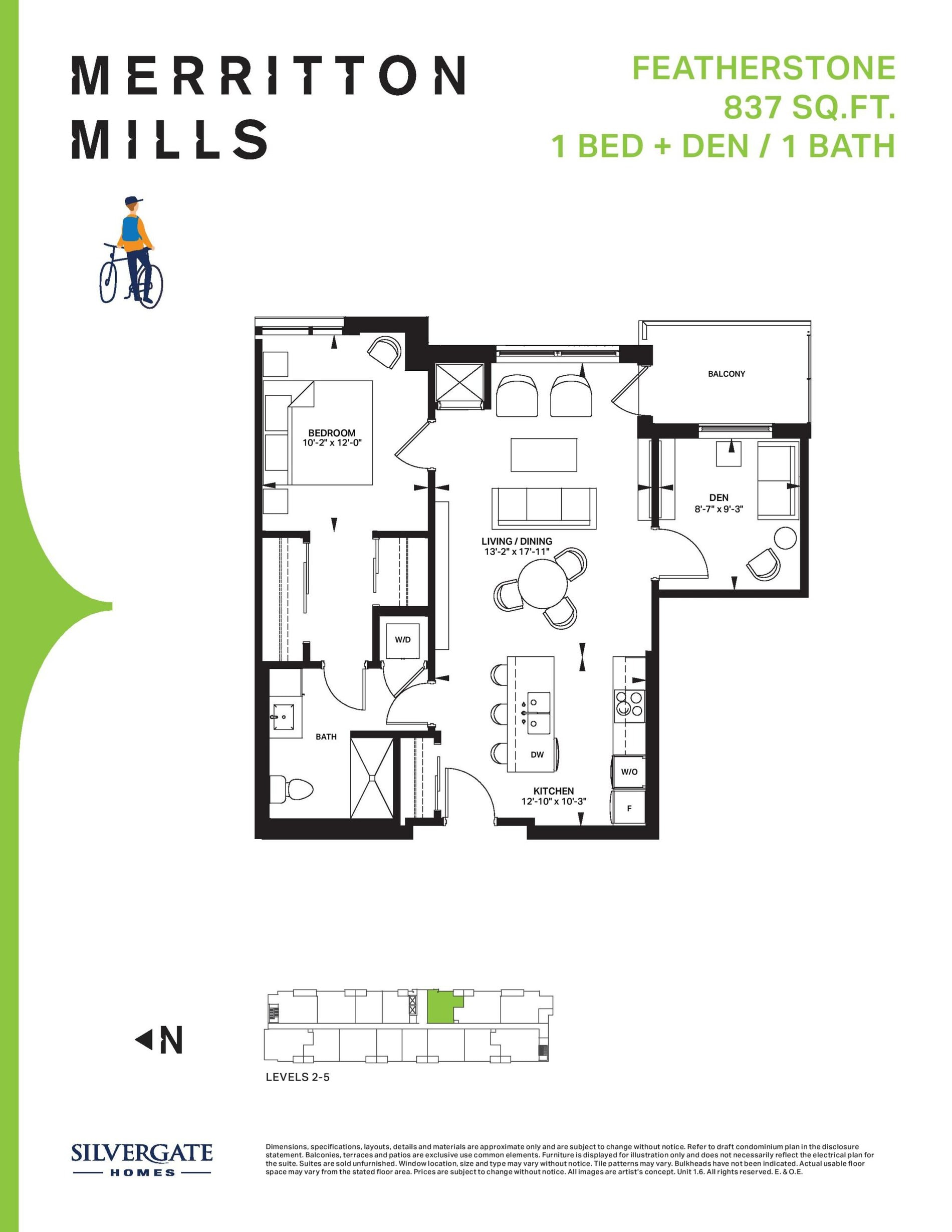 Featherstone Floor Plan at Merritton Mills Condos - 837 sq.ft