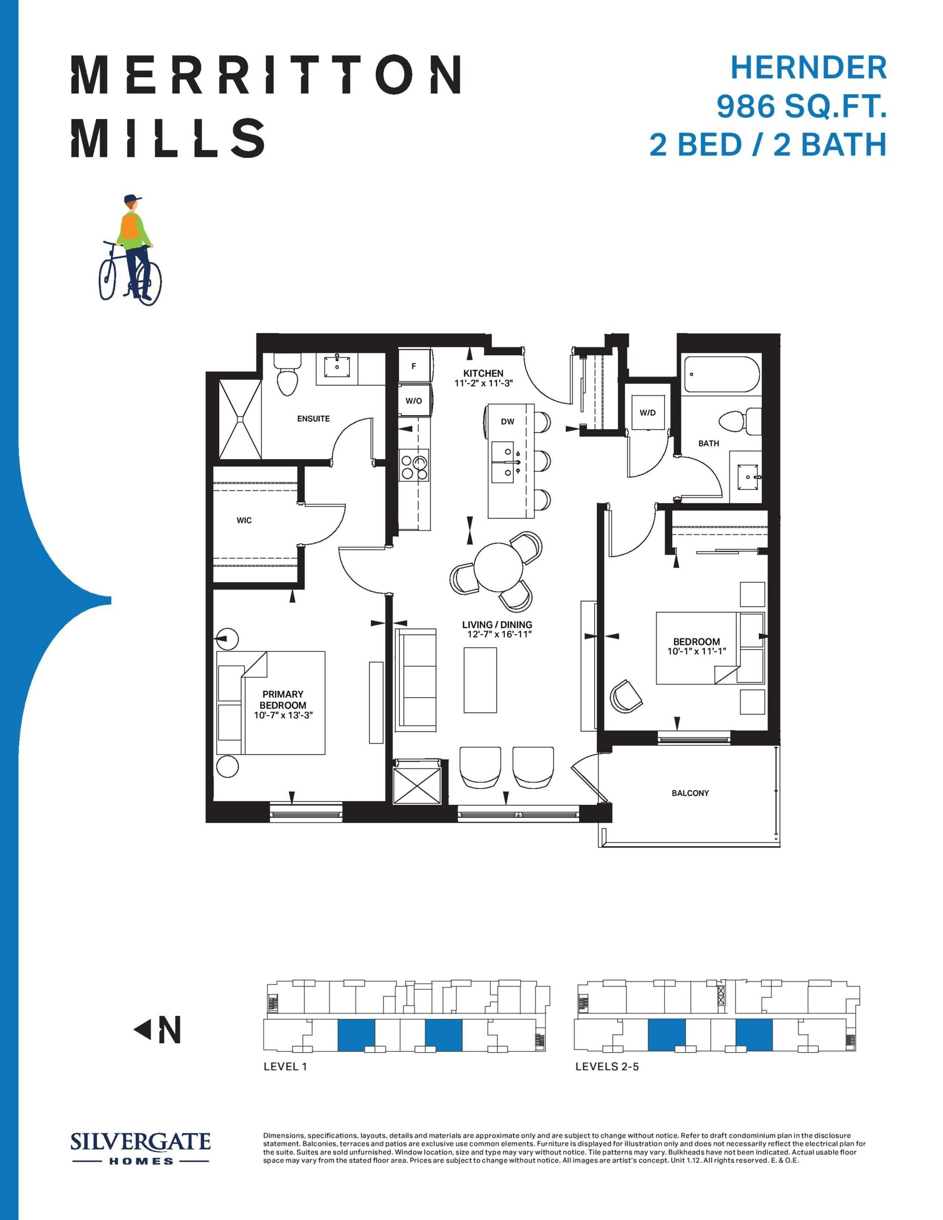 Hernder Floor Plan at Merritton Mills Condos - 986 sq.ft