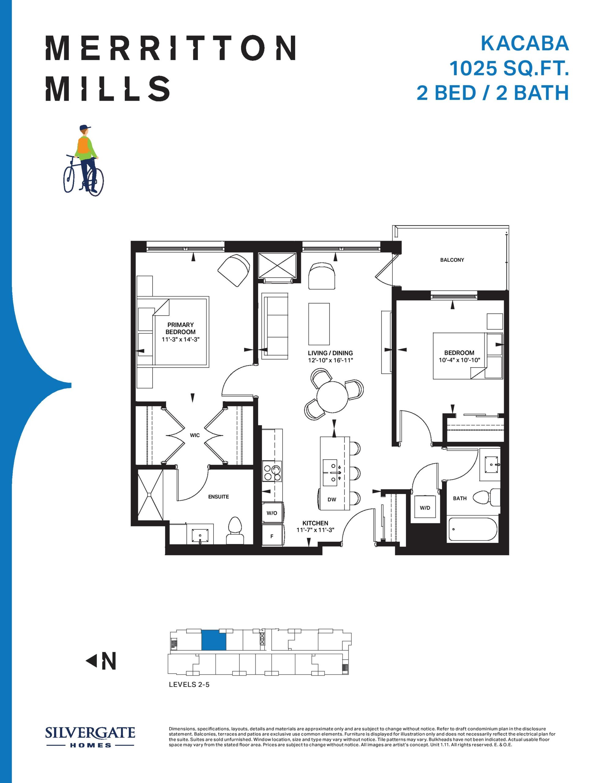 Kacaba Floor Plan at Merritton Mills Condos - 1025 sq.ft