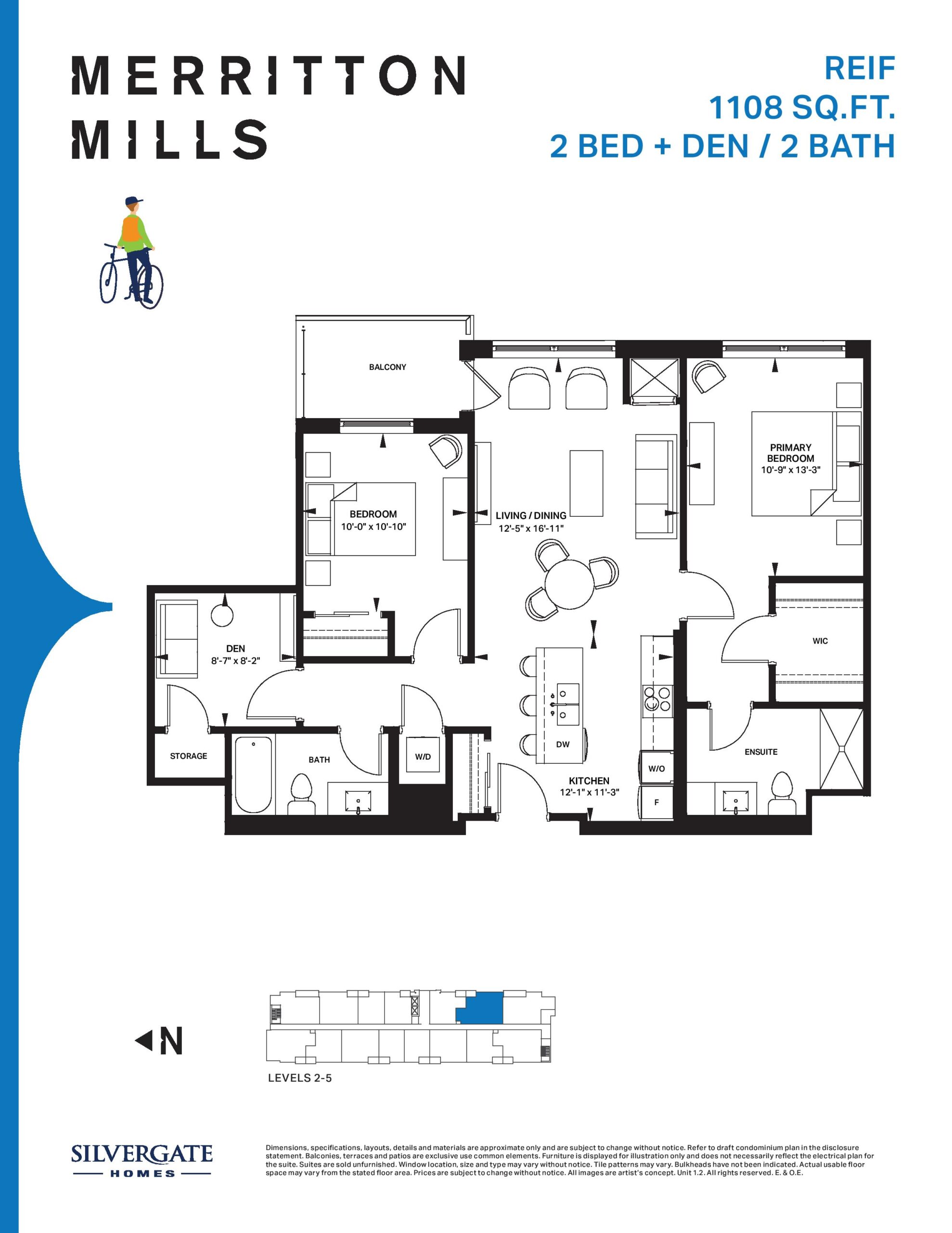 Reif Floor Plan at Merritton Mills Condos - 1108 sq.ft