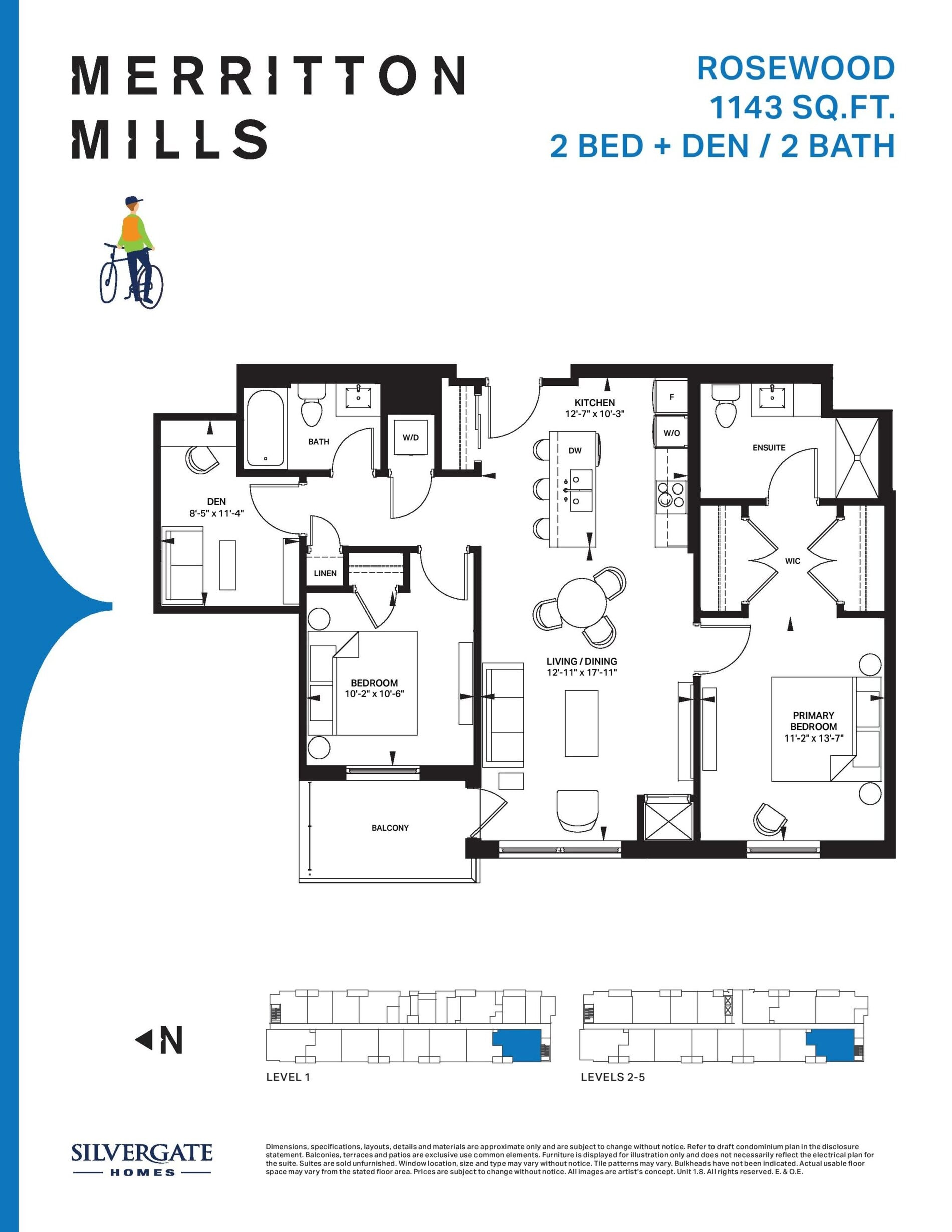 Rosewood Floor Plan at Merritton Mills Condos - 1143 sq.ft