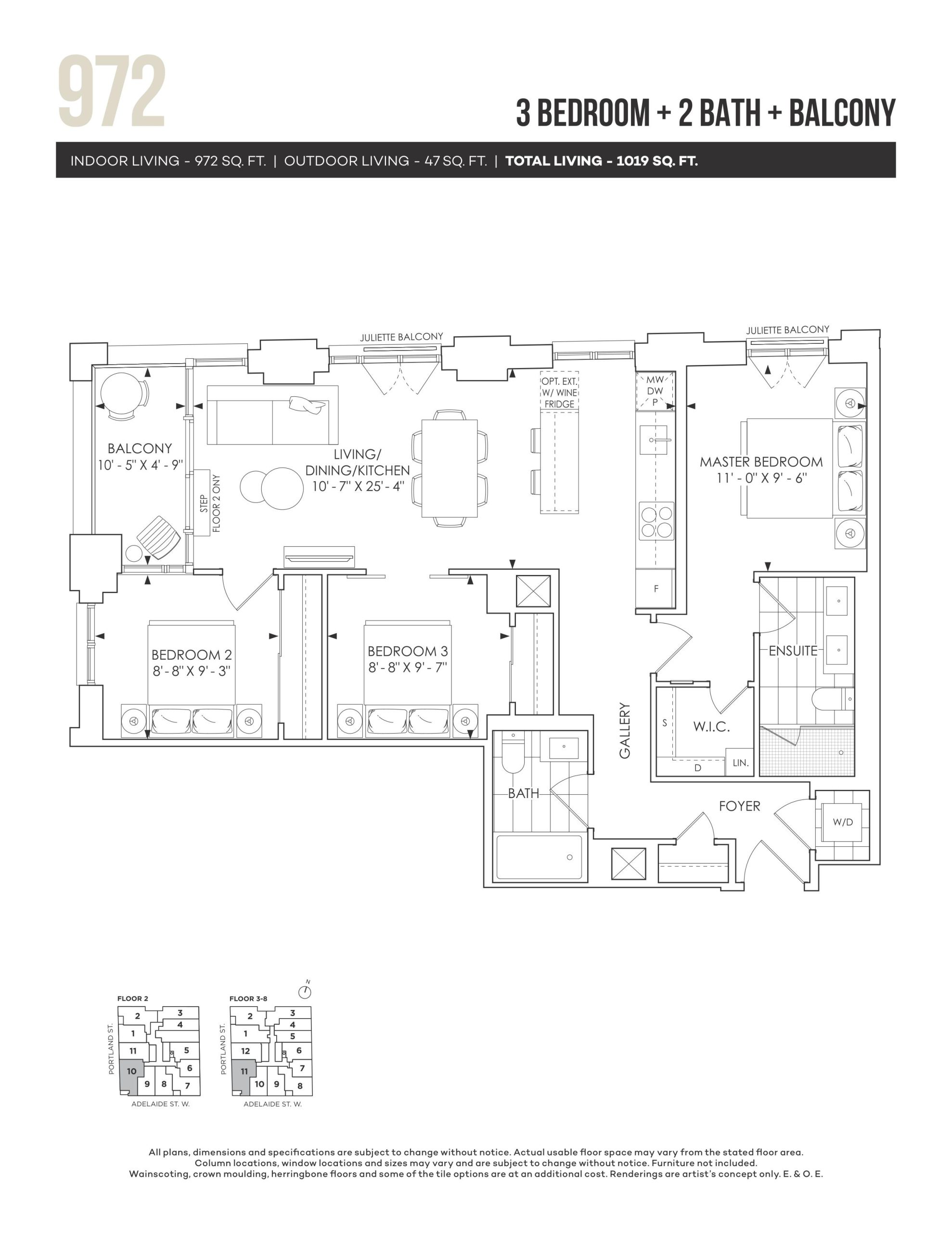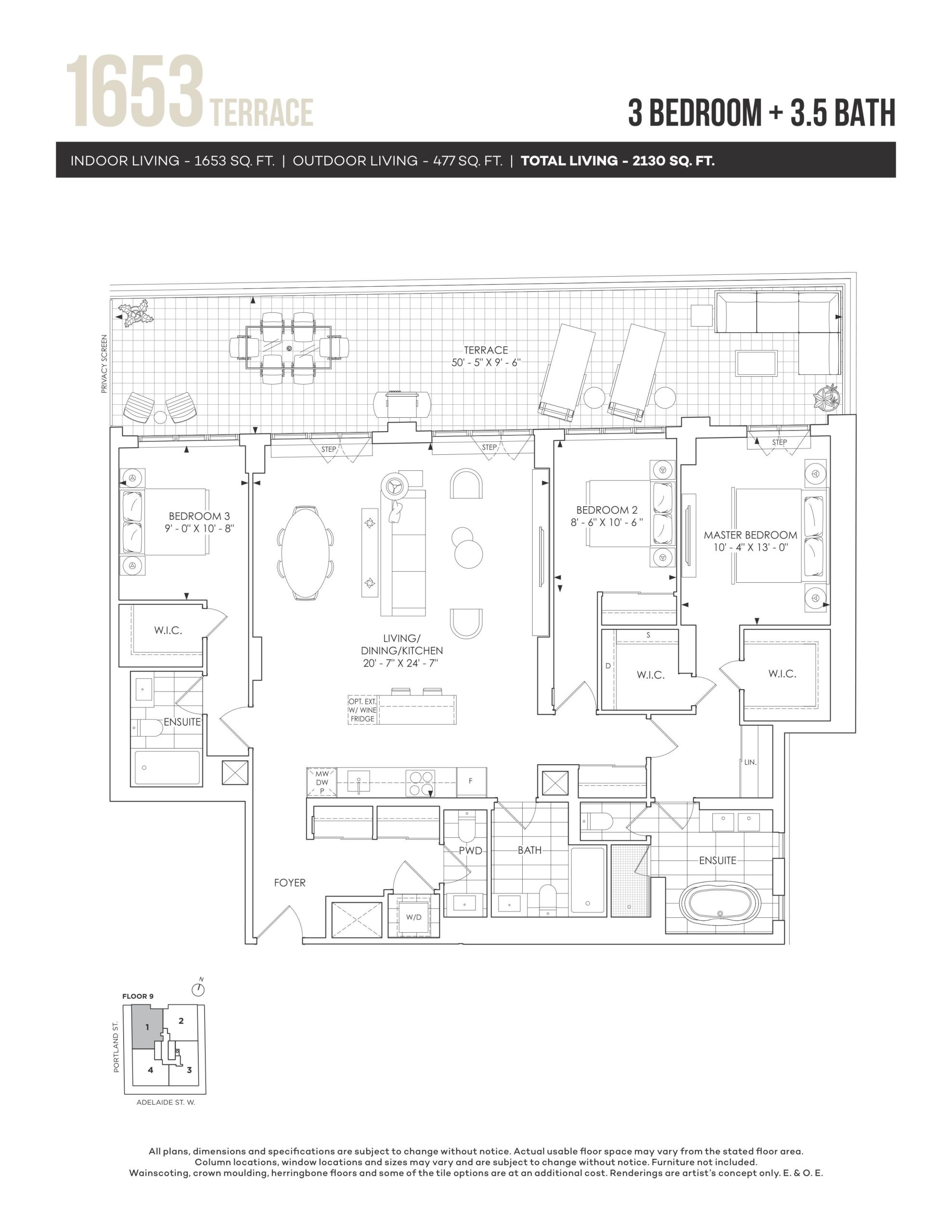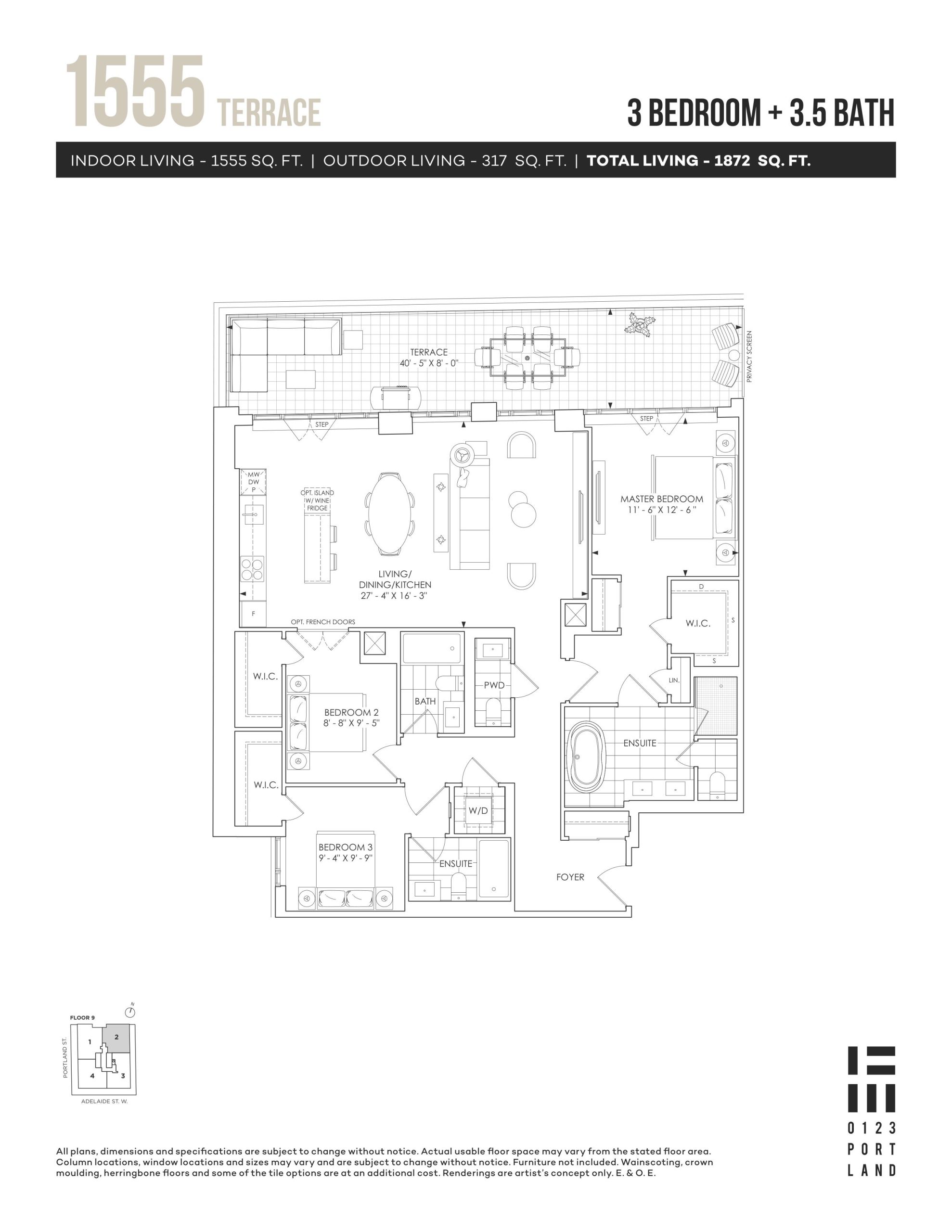 The terrace suites lay basking in panorama views. Standing at 9 and 13-storeys high, each immaculate suite enjoys a sunlit private terrace, expansive walk-in closets and three naturally lit bedrooms and bathrooms. Thoughtfully designed as open and opulent, the suites are embellished with the same lavish details that define 123 Portland.