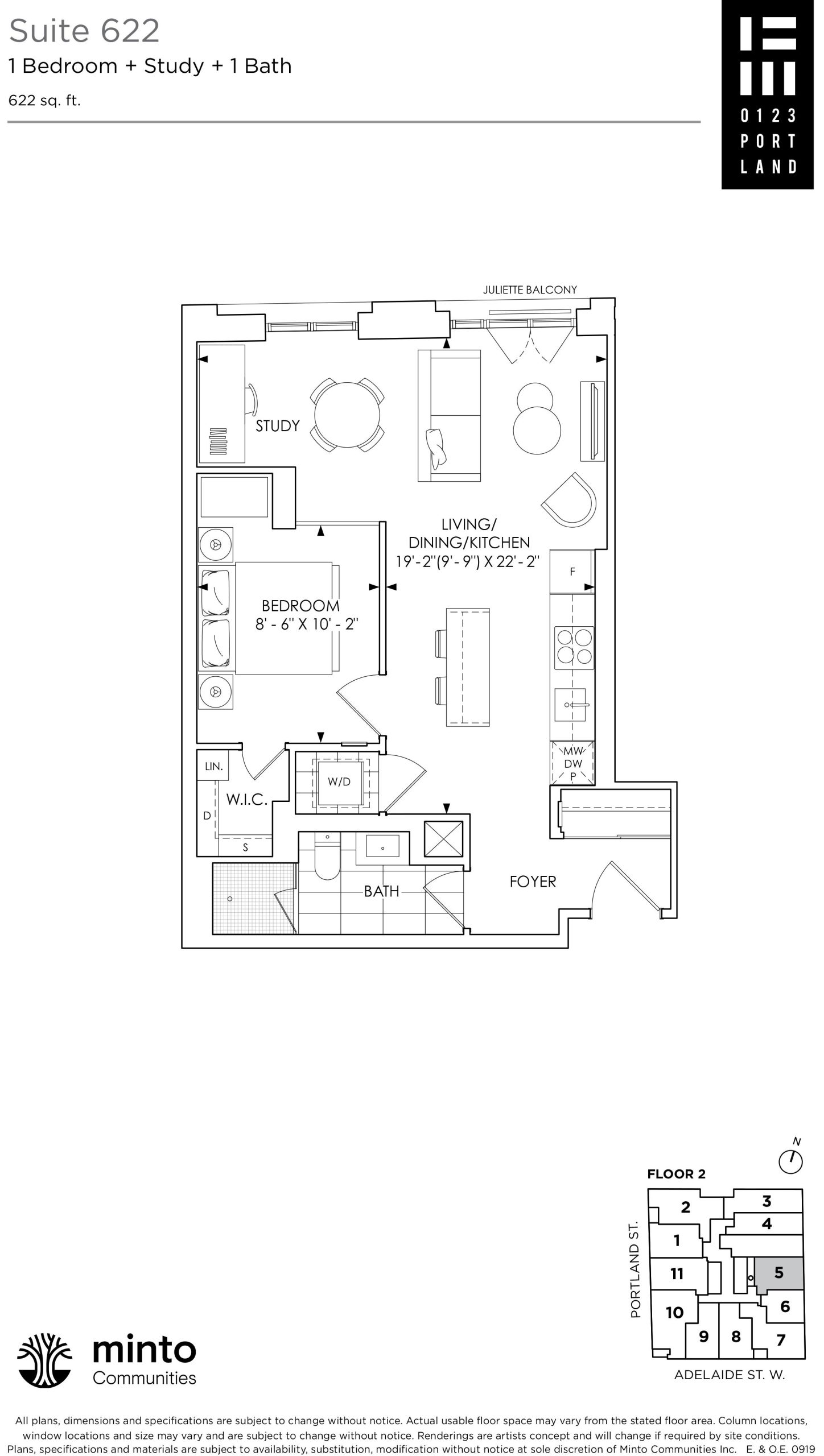 123 Portland Condos is a new condominium development by Minto that is now complete located at 123 Portland Street, Toronto in the Chinatown-Alexandra Park neighbourhood with a 98/100 walk score and a 100/100 transit score. 123 Portland Condos is designed by Sweeny and Co. and will feature interior design by U31. Development is scheduled to be completed in 2023. The project is 14 storeys tall and has a total of 116 suites ranging from 483 sq.ft to 1789 sq.ft. 123 Portland Condos is the #802 tallest condominium in Toronto and the #16 tallest condominium in Chinatown-Alexandra Park. Suites are priced from $489,900 to $1,949,900.