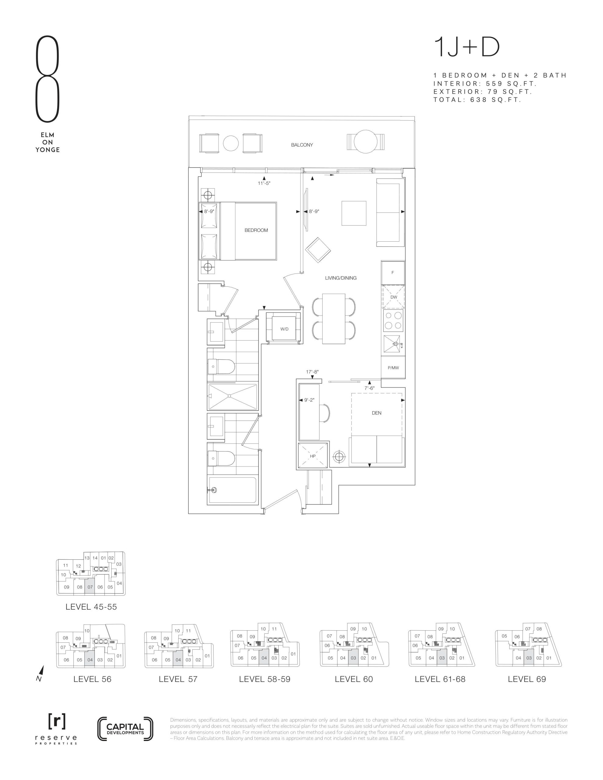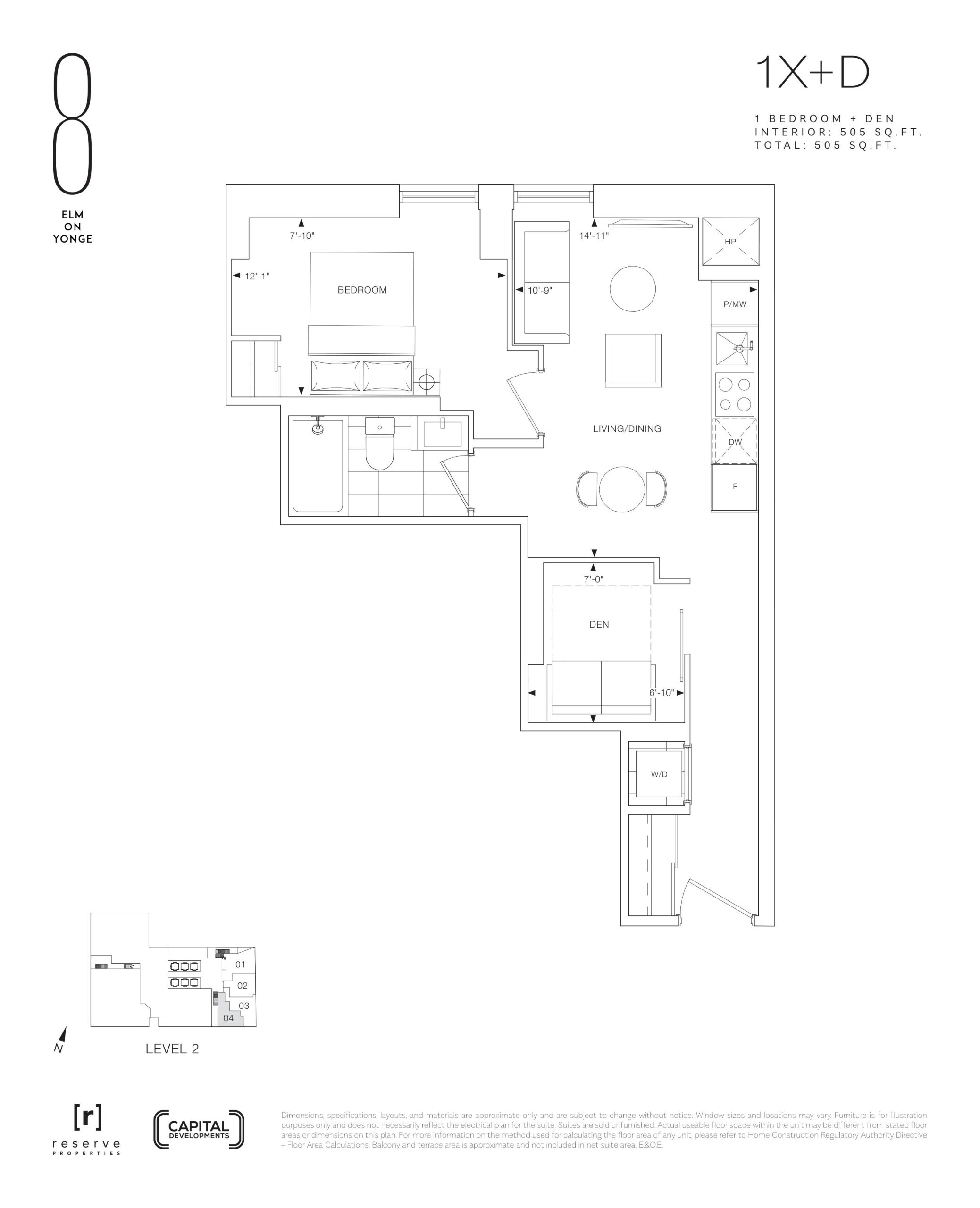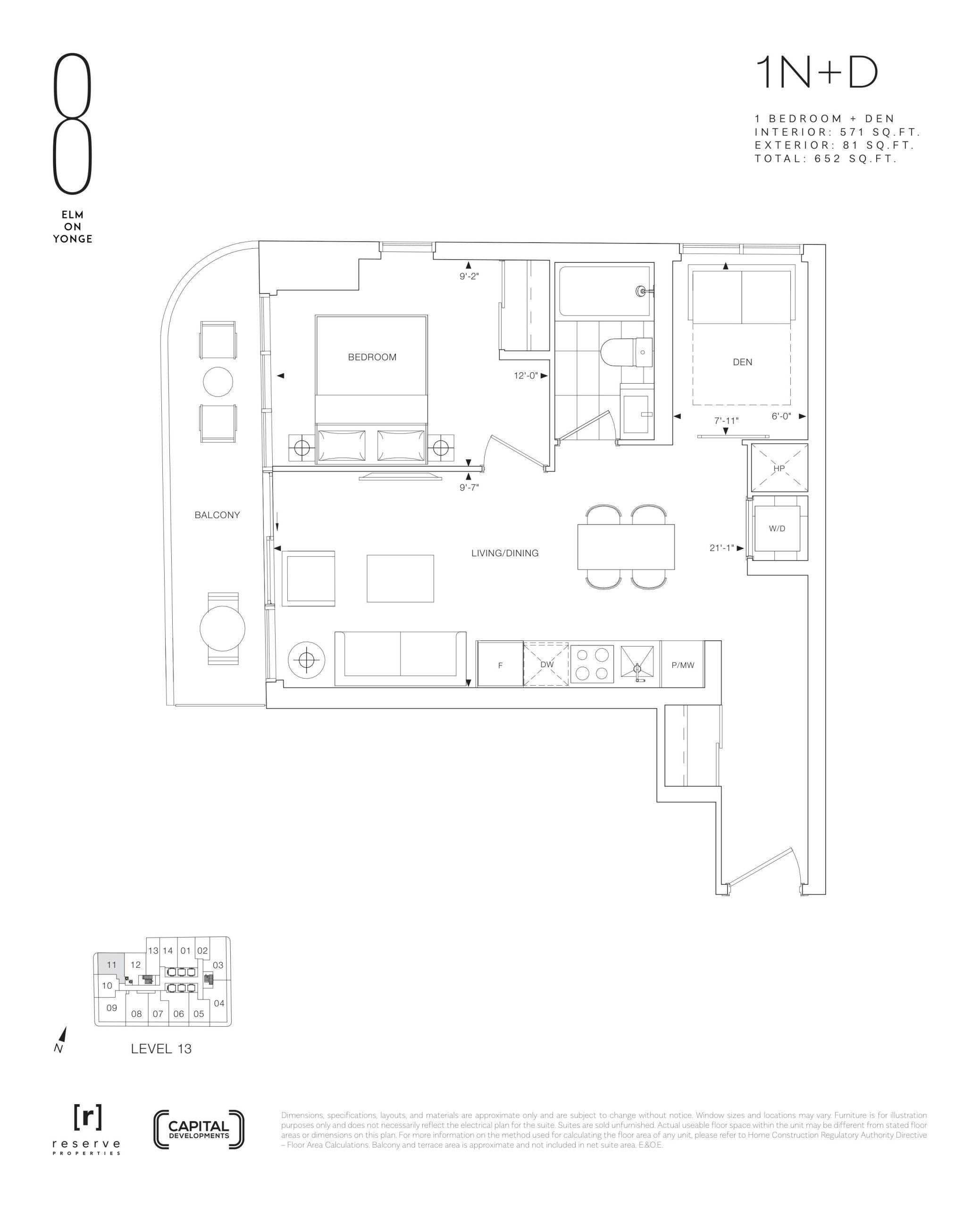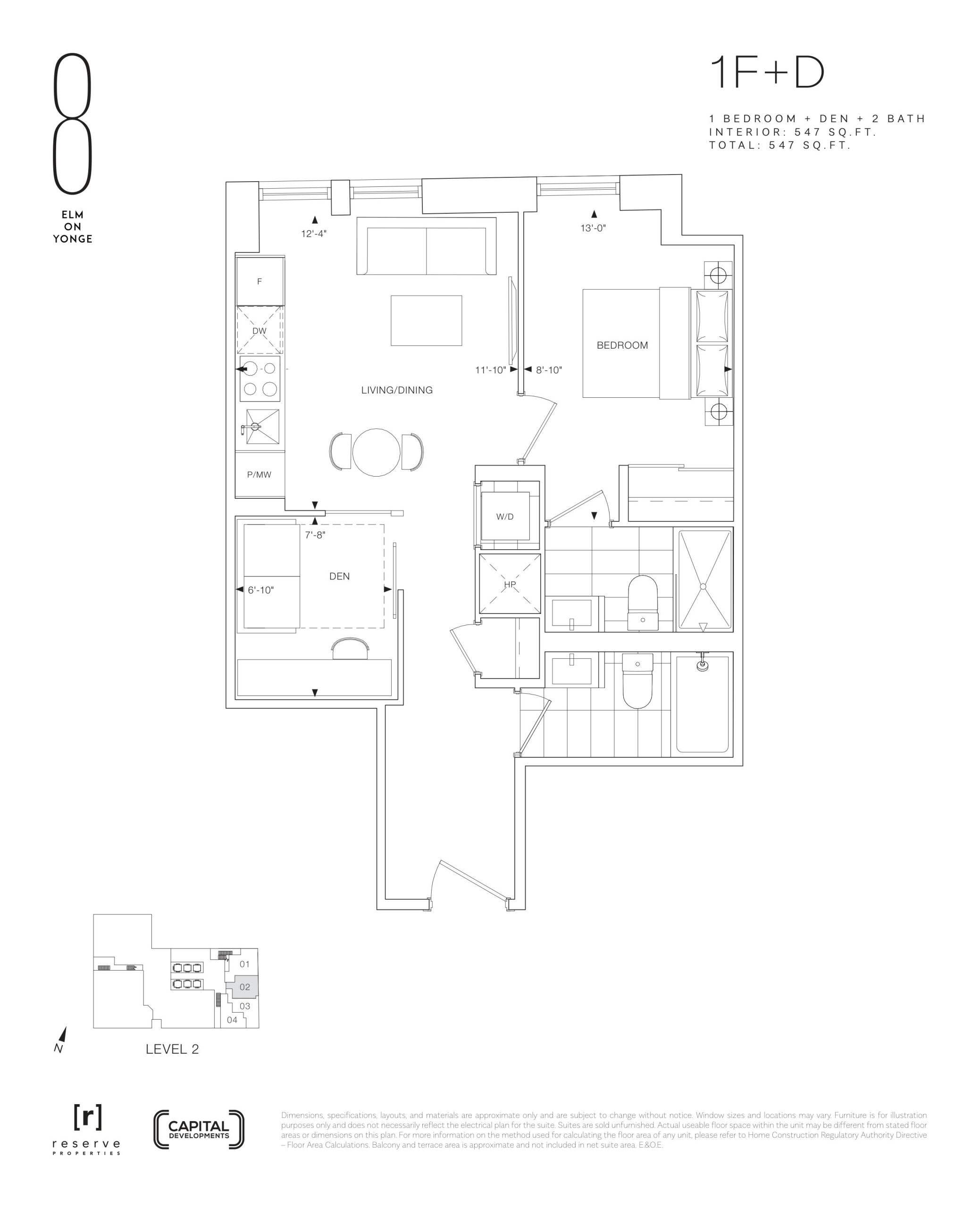 - 1 Bed + Den Change from Launch